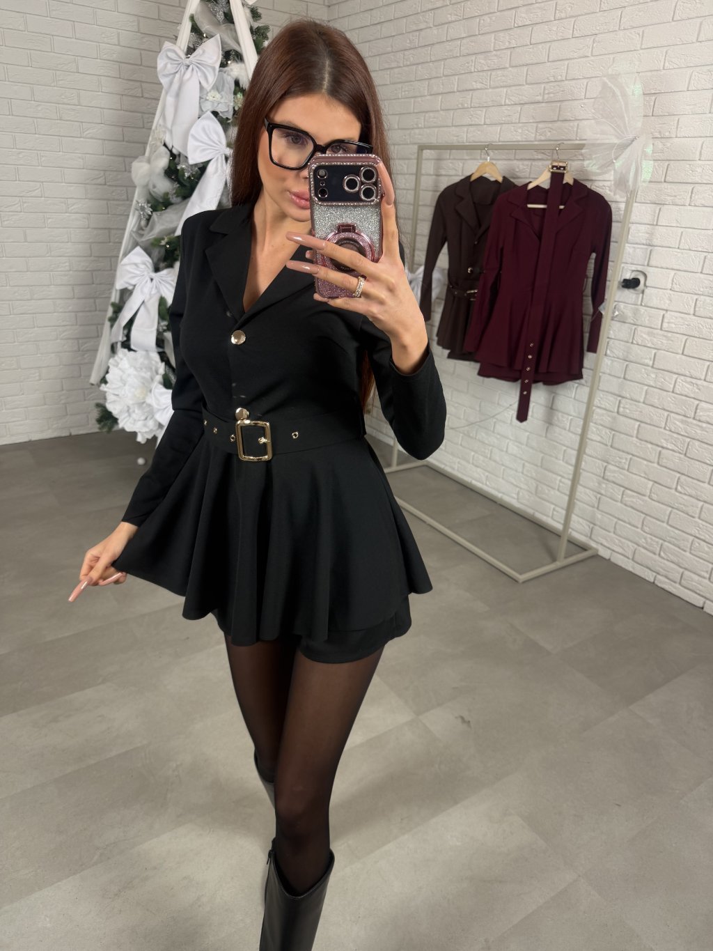 Overal FIDO sedí na kočky do výšky 175 cm a na konfekční velikost od XS po M, vypadá jako minišaty, ale pod sukýnkou se skrývají praktické kraťasy, elastický materiál, opasek je součástí overalu a jsou na něm elementy zlaté barvy.