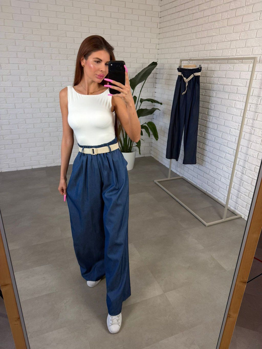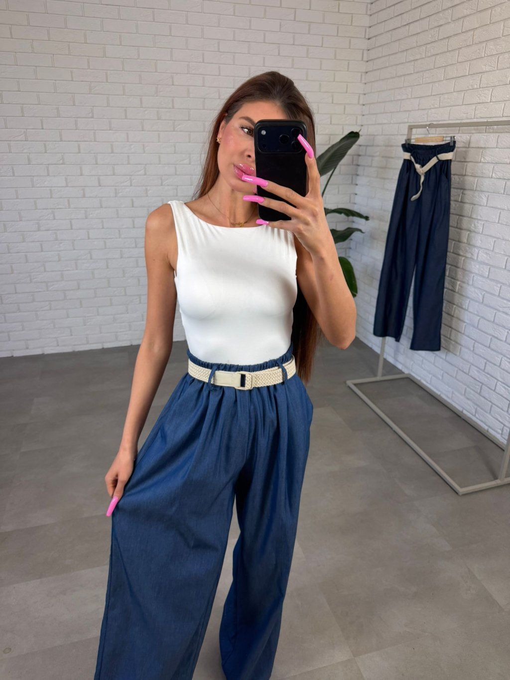 Strih je prispôsobený najmä pre postavy s výraznejšími bokmi, pásom či bruškom. Vysoký elastický pás sa prispôsobí každej postave bez tlaku a spolu s lanovým opaskom vytvára peknú líniu v páse.