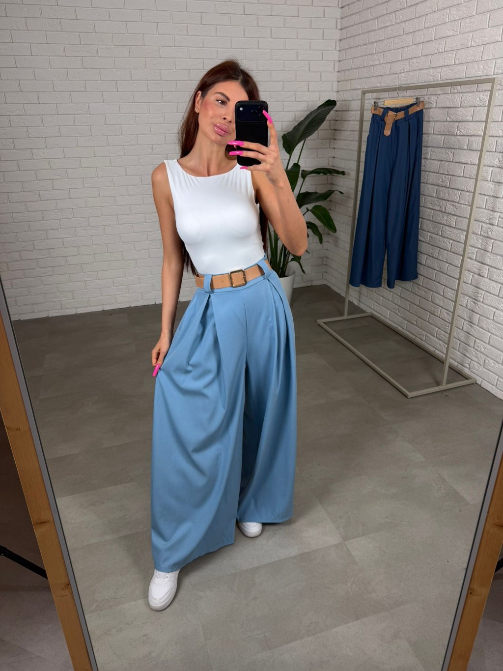 Vysoký pás s elastickou gumou sa krásne prispôsobí postave, netlačí a pohodlne sa prispôsobí aj v oblasti bruška. Súčasťou nohavíc je opasok, ktorý zvýrazní pás a dotvorí peknú ženskú siluetu.