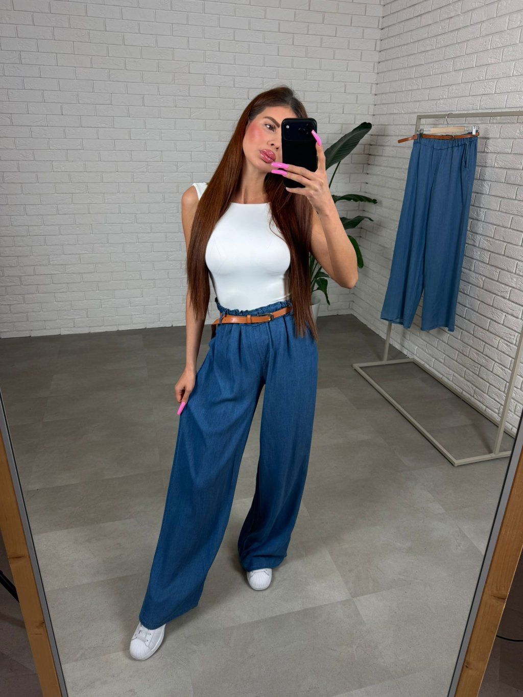 Strih je pohodlný a ležérny, poskytuje dostatok miesta v oblasti bruška, bokov aj zadočku, takže sa v nich cítiš prirodzene a komfortne. Opasok je súčasťou nohavíc a spolu s detailom falošného zipsu dotvára upravený, športovo-elegantný vzhľad.