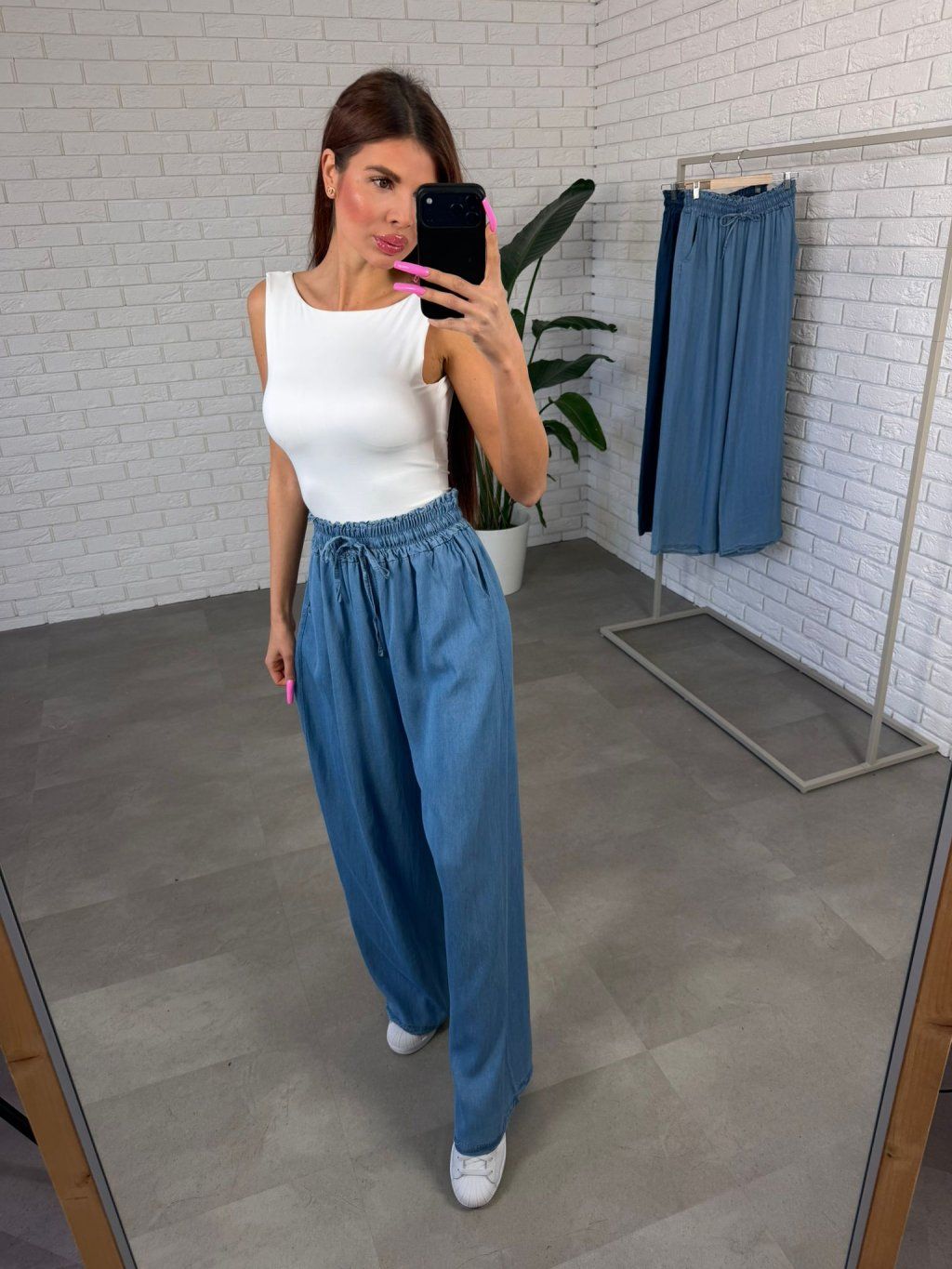 Polorifľový materiál pôsobí ako rifľovina, no je výrazne mäkší, poddajnejší a vzdušnejší, takže sa v nich cítiš pohodlne počas celého dňa. Vysoký gumový pás sa prispôsobí každej postave a poskytne komfort v oblasti bruška, pásu, bokov aj zadočku.