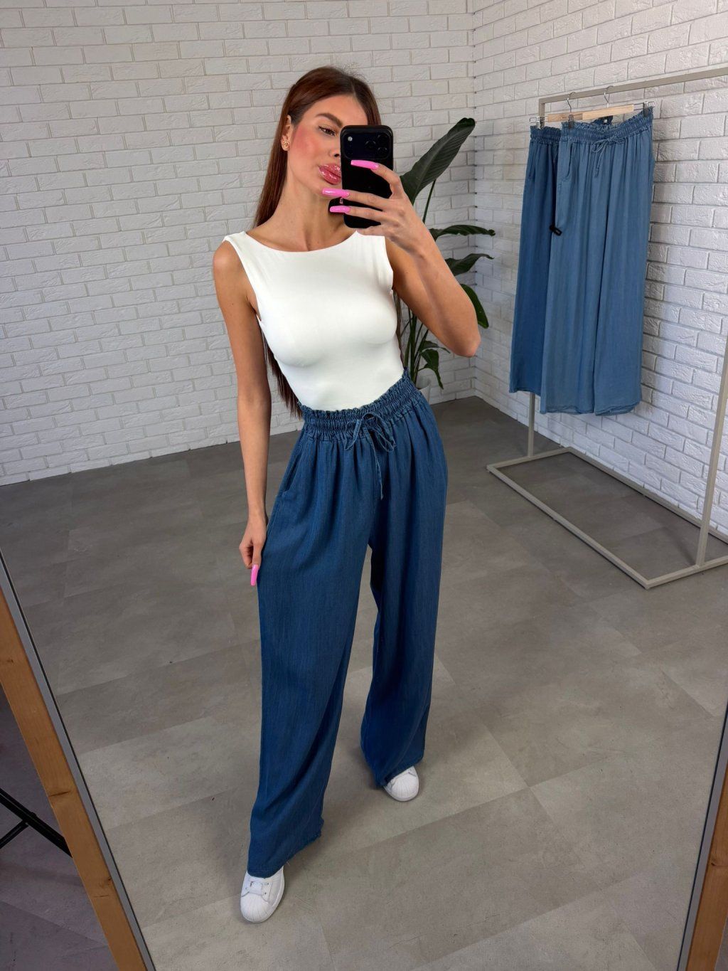 Polorifľový materiál pôsobí ako rifľovina, no je výrazne mäkší, poddajnejší a vzdušnejší, takže sa v nich cítiš pohodlne počas celého dňa. Vysoký gumový pás sa prispôsobí každej postave a poskytne komfort v oblasti bruška, pásu, bokov aj zadočku.
