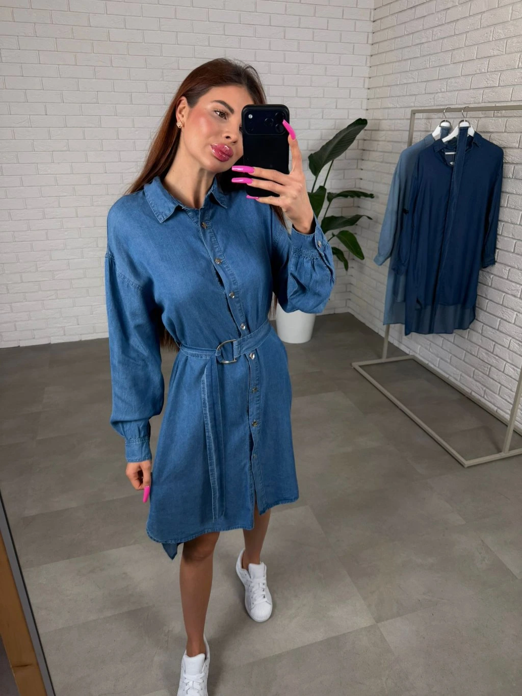 Šaty AIDA sú výrazný, no veľmi praktický kúsok, ktorý si obľúbiš pre jeho pohodlie aj univerzálnosť. Polo-rifľový materiál je oproti klasickej rifľovine mäkší, pružnejší a príjemnejší na nosenie, takže sa krásne prispôsobí postave a neobmedzuje v pohybe. Košeľový strih so zapínaním po celej dĺžke pôsobí upravene a zároveň ti dáva možnosť nosiť šaty rôznymi spôsobmi zapnuté ako šaty alebo voľnejšie rozopnuté ako vrstvu. Opasok v páse zvýrazní siluetu a pomôže vytvoriť peknú ženskú líniu. Rukávy sú rozšírené a dostatočne dlhé, takže sa pohodlne prispôsobia každému obvodu ruky. Zadná časť je mierne predĺžená, čo opticky vyváži postavu a dodá šatám moderný vzhľad. Šaty AIDA veľkostne sadnú od S po L a sú ideálnym kúskom na každý deň, keď chceš pohodlie, ale stále pôsobiť upravene.