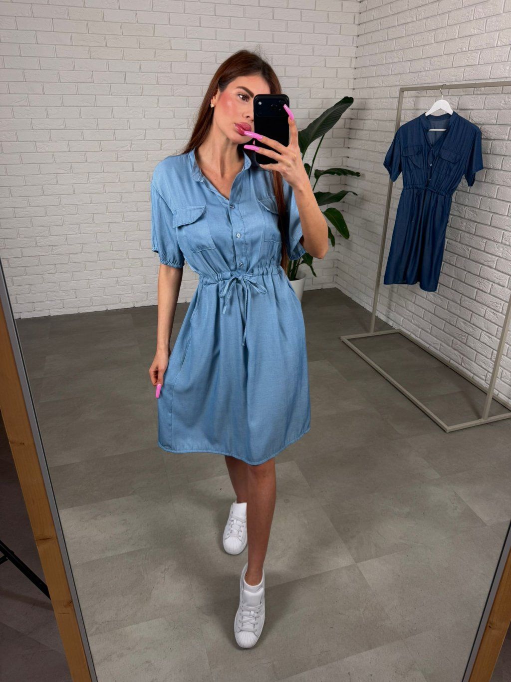 Polorifľové šaty AZARIA sú navrhnuté tak, aby sadli rôznym typom postavy a poskytli maximálne pohodlie počas celého dňa. Materiál pôsobí ako rifľovina, no je výrazne mäkší a príjemný na nosenie. Strih je voľný v oblasti bruška, bokov aj zadočku, takže šaty prirodzene splývajú na postave a sú vhodné aj na tehotenské bruško. Vďaka možnosti stiahnutia pod prsiami si vieš jednoducho upraviť siluetu podľa seba a zvýrazniť pás. Voľnejší rukáv poskytuje komfort pre každú ručičku a dodáva šatám uvoľnený, ležérny vzhľad. Dĺžka nad kolená pôsobí žensky a zároveň prakticky na každodenné nosenie. Šaty AZARIA sú ideálne pre kočky do výšky približne 170 cm a sadnú od XS po L.