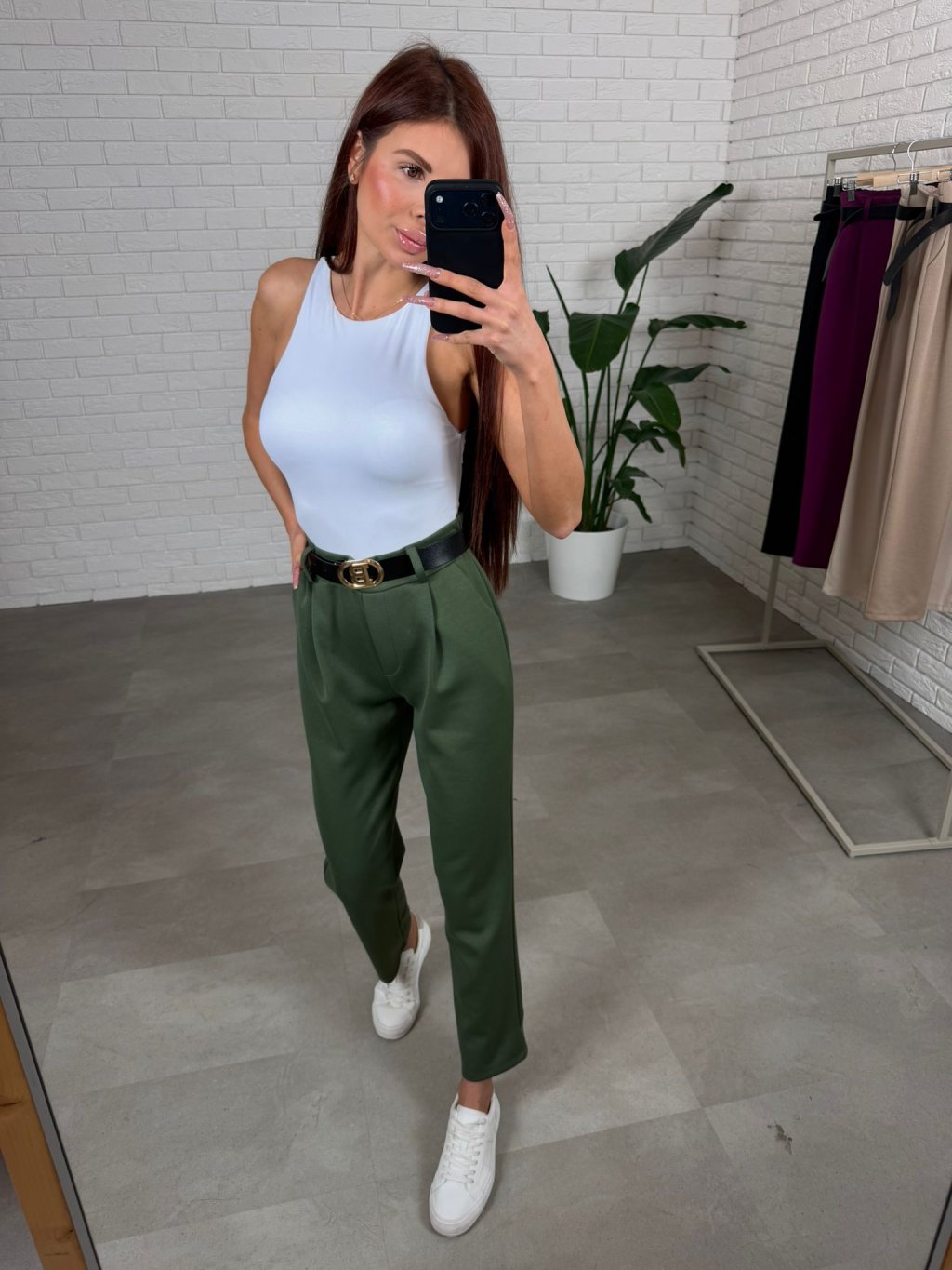 Poloteplákové nohavice BALER sú ušité z kvalitného poloteplákového materiálu, ktorý je mäkký, príjemný na dotyk a zároveň si krásne drží svoj tvar počas celého dňa. Materiál je nekrčivý, takže nohavice pôsobia stále upravene a elegantne. Vysoký pás spolu s opaskom zvýrazní tvoju siluetu, opticky zúži pás a vytvorí harmonický ženský vzhľad. Ležérne elegantný strih so skladaním v prednej časti dodáva nohaviciam moderný charakter a zároveň poskytuje dostatok priestoru v oblasti bokov a stehien, vďaka čomu sú mimoriadne pohodlné. Praktické bočné vrecká sú nenápadným, no užitočným detailom, ktorý oceníš pri každodennom nosení. BALER sú ideálnou voľbou do práce, na stretnutia aj na bežné dni, keď chceš vyzerať upravene, no zároveň sa cítiť maximálne komfortne. Skvelo sa kombinujú s priliehavým topom, body alebo košeľou a vďaka univerzálnemu strihu sedia na konfekčné veľkosti od S po L.