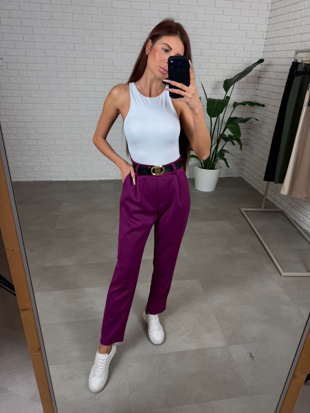 Poloteplákové nohavice BALER sú ušité z kvalitného poloteplákového materiálu, ktorý je mäkký, príjemný na dotyk a zároveň si krásne drží svoj tvar počas celého dňa. Materiál je nekrčivý, takže nohavice pôsobia stále upravene a elegantne. Vysoký pás spolu s opaskom zvýrazní tvoju siluetu, opticky zúži pás a vytvorí harmonický ženský vzhľad. Ležérne elegantný strih so skladaním v prednej časti dodáva nohaviciam moderný charakter a zároveň poskytuje dostatok priestoru v oblasti bokov a stehien, vďaka čomu sú mimoriadne pohodlné. Praktické bočné vrecká sú nenápadným, no užitočným detailom, ktorý oceníš pri každodennom nosení. BALER sú ideálnou voľbou do práce, na stretnutia aj na bežné dni, keď chceš vyzerať upravene, no zároveň sa cítiť maximálne komfortne. Skvelo sa kombinujú s priliehavým topom, body alebo košeľou a vďaka univerzálnemu strihu sedia na konfekčné veľkosti od S po L.