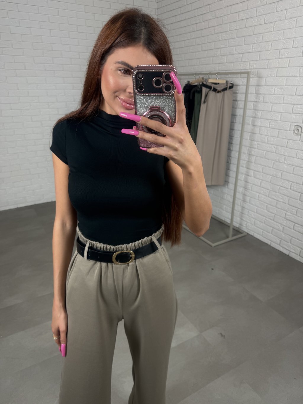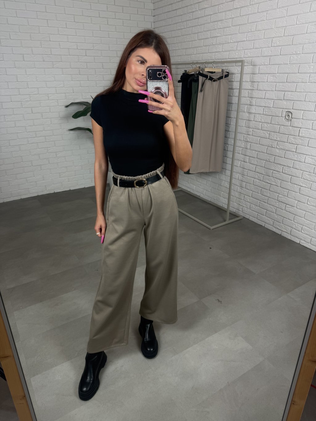 Poloteplákové nohavice BOREN sú skvelou voľbou na športový aj elegantný štýl. Súčasťou nohavíc je opasok so zlatou sponou. Majú vysoký, elastický pás a praktické vrecká po bokoch. Vyrobené sú z príjemného poloteplákového materiálu. Dĺžka je vhodná pre postavu do výšky 175 cm. Modelka na fotografii má 170 cm. Veľkostne sedia od S po XL.