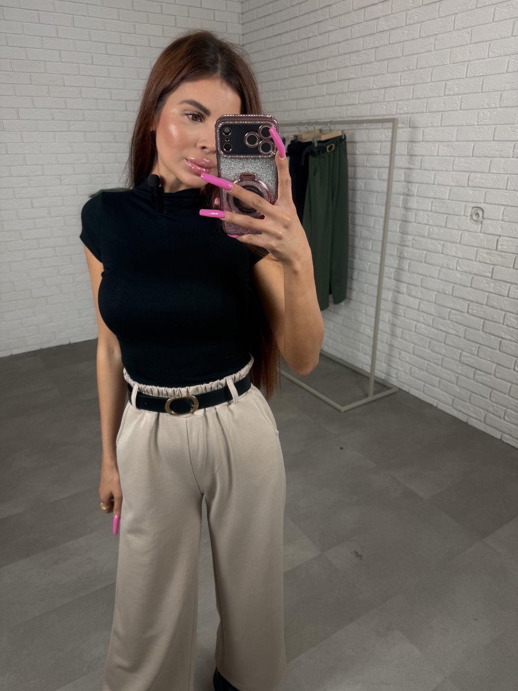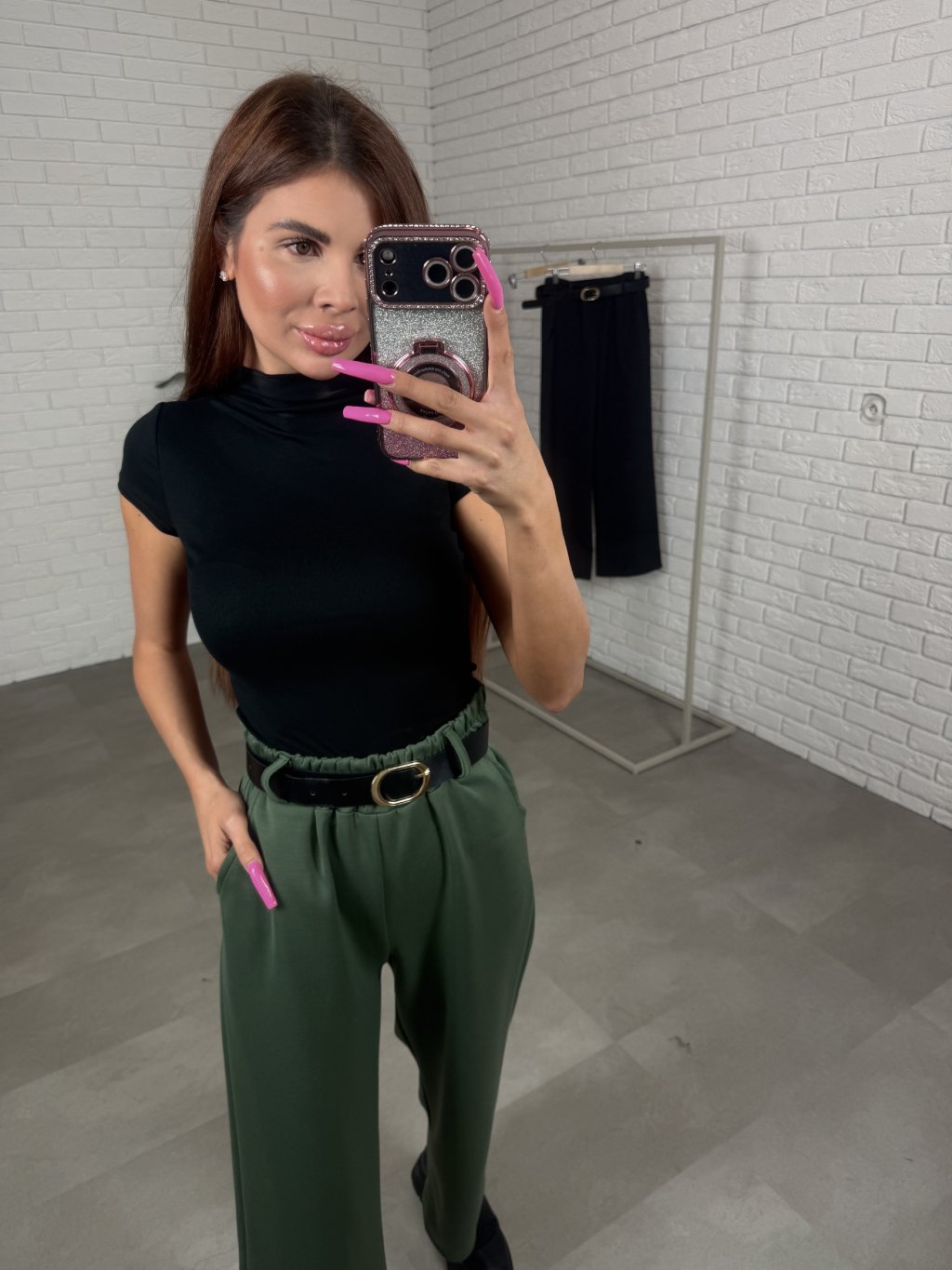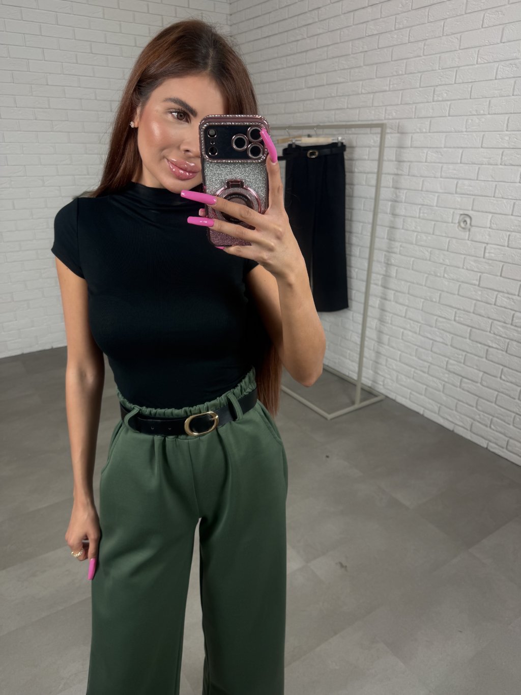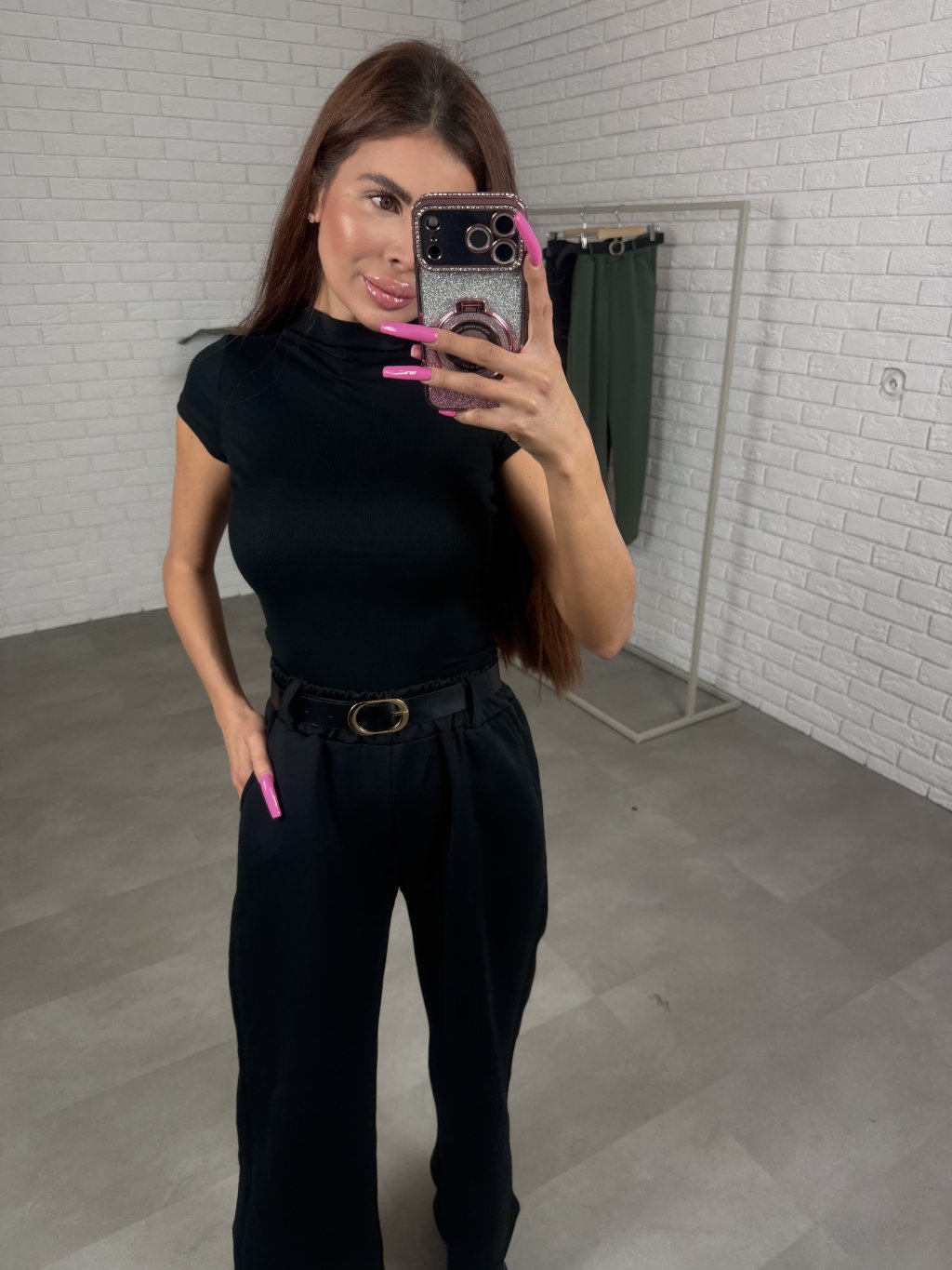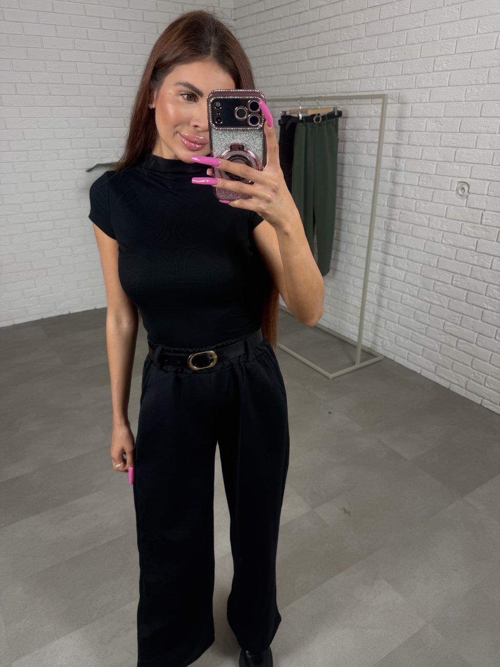 Poloteplákové nohavice BOREN sú skvelou voľbou na športový aj elegantný štýl. Súčasťou nohavíc je opasok so zlatou sponou. Majú vysoký, elastický pás a praktické vrecká po bokoch. Vyrobené sú z príjemného poloteplákového materiálu. Dĺžka je vhodná pre postavu do výšky 175 cm. Modelka na fotografii má 170 cm. Veľkostne sedia od XS po XL.