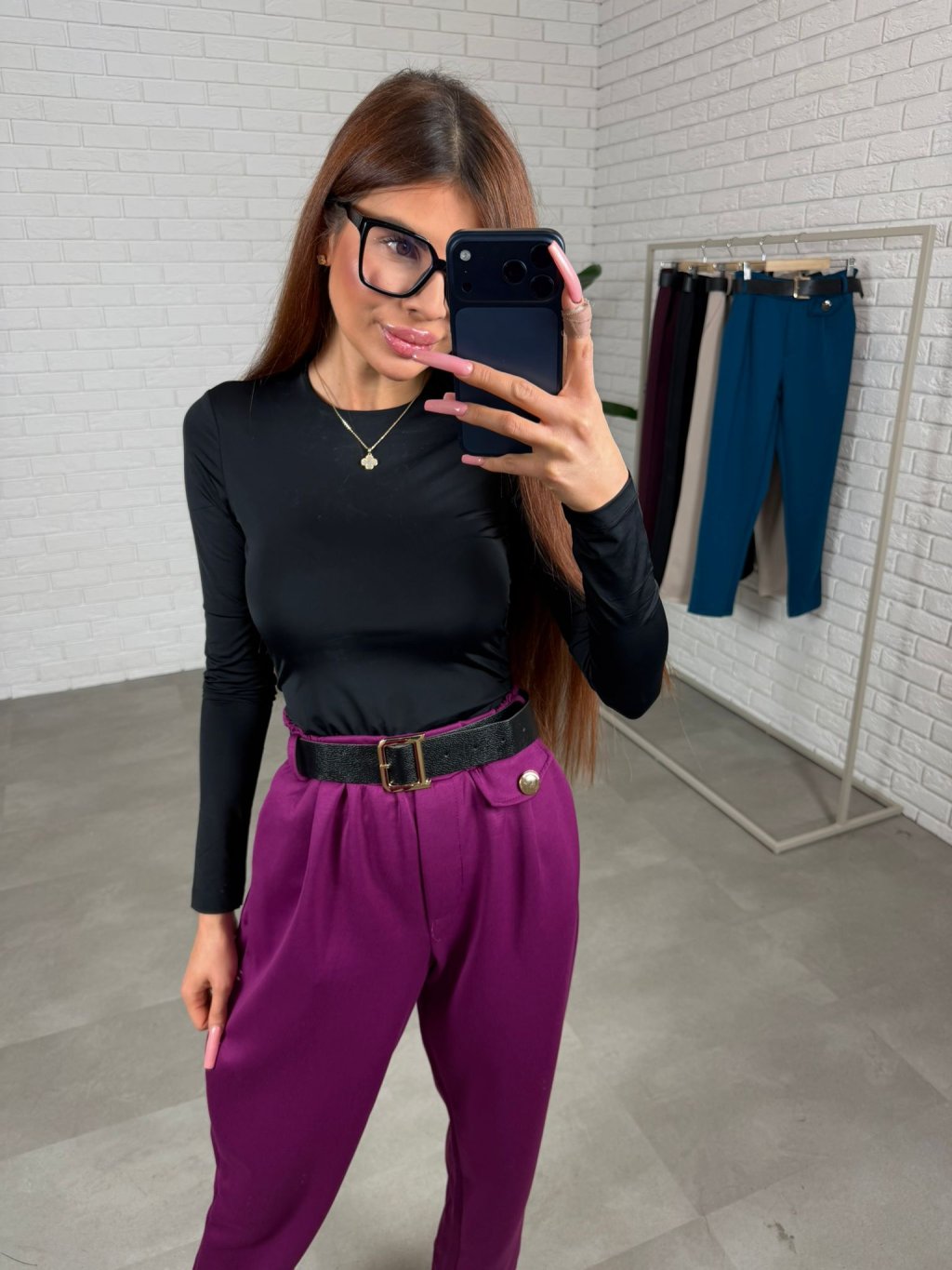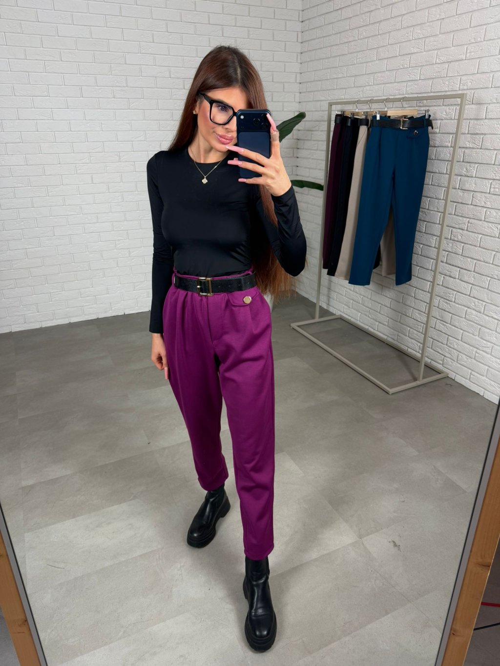Nohavice DELISA s vysokým pásom krásne tvarujú postavu, hlavne ak máš proporčne väčšie boky či zadok. Zúžený strih nohavíc ti zvýrazní siluetu, prípadne zamaskuje nedostatky. Nohavice majú praktické hlboké vrecká, sú ideálne na každodenné nosenie a skvelo sa kombinujú s čižmami. Sú vyrobené z najobľúbenejšieho poloteplákového materiálu. Sadnú na kočky vysoké do 170 cm, vhodné sú na konfekčné veľkosti od S po L.
