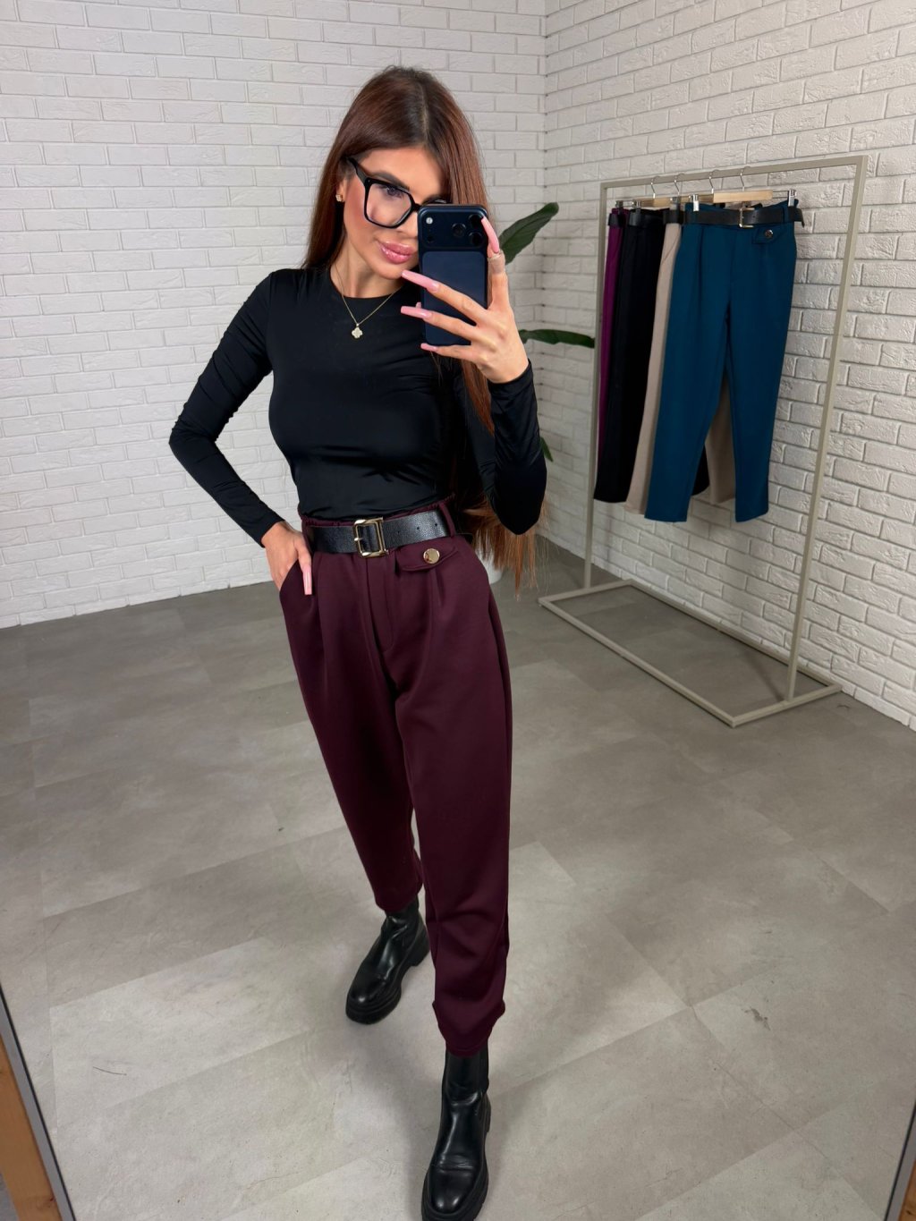 Nohavice DELISA s vysokým pásom krásne tvarujú postavu, hlavne ak máš proporčne väčšie boky či zadok. Zúžený strih nohavíc ti zvýrazní siluetu, prípadne zamaskuje nedostatky. Nohavice majú praktické hlboké vrecká, sú ideálne na každodenné nosenie a skvelo sa kombinujú s čižmami. Sú vyrobené z najobľúbenejšieho poloteplákového materiálu. Sadnú na kočky vysoké do 170 cm, vhodné sú na konfekčné veľkosti od S po L.
