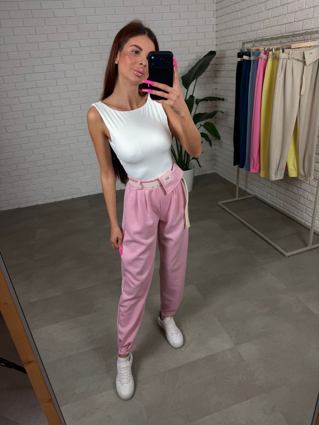 Materiál je príjemný, mäkký a poddajný, takže sa krásne prispôsobí postave bez nepríjemného obmedzenia. Vysoký pás poskytuje dostatok priestoru a komfortu aj pre väčšie bruško, pričom opasok pomáha doladiť pás a celkový vzhľad nohavíc.