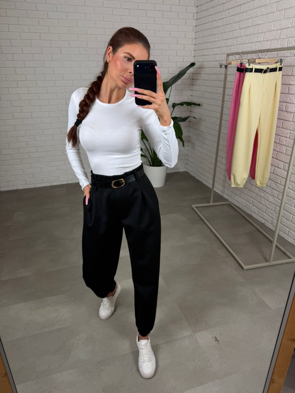 Nohavice LUNA sú navrhnuté pre ženy, ktoré majú výraznejšie boky, zadoček alebo bruško a chcú sa cítiť pohodlne bez toho, aby museli robiť kompromis v štýle. Skvele sedia postave typu hruška aj jabĺčko, pretože poskytujú dostatok priestoru v oblasti bruška, bokov aj zadočku a zároveň krásne držia tvar. Vyrobené sú z kvalitného poloteplákového materiálu, ktorý je mäkký, príjemný a pružný - pohodlný ako tepláky, no vzhľadom pôsobí športovo elegantne. Bez problémov ich môžeš nosiť do práce, do mesta aj na bežný deň. Strih je voľný a ležérny v hornej časti, zatiaľ čo spodok nohavíc je zúžený elastickým patentom, ktorý vyzerá skvelo aj v kombinácii s teniskami. Vysoký pás pekne drží bruško, opasok je súčasťou a dopĺňa ho ozdobný gombík, ktorý dodáva nohaviciam upravený vzhľad. Vďaka pružnosti a voľnému strihu sadnú od XS po XL a prispôsobia sa rôznym typom postavy.