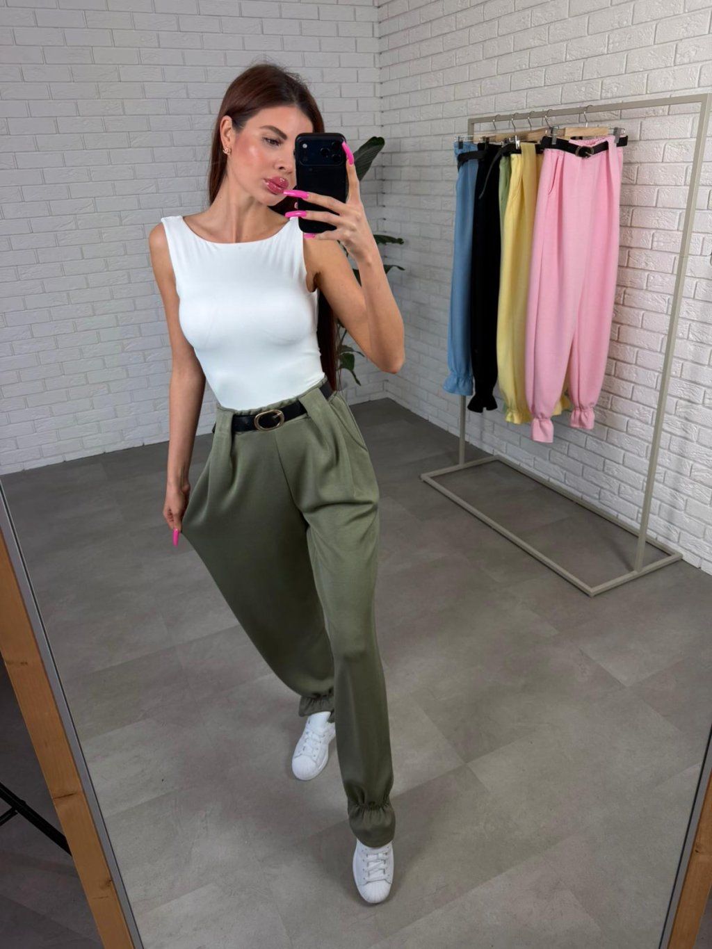 Poloteplákový materiál je mäkký, príjemný na dotyk a drží si tvar, takže nohavice pôsobia upravene aj pri bežnom nosení. Vysoký pás spolu s opaskom zvýrazní siluetu a vytvorí peknú líniu v páse.