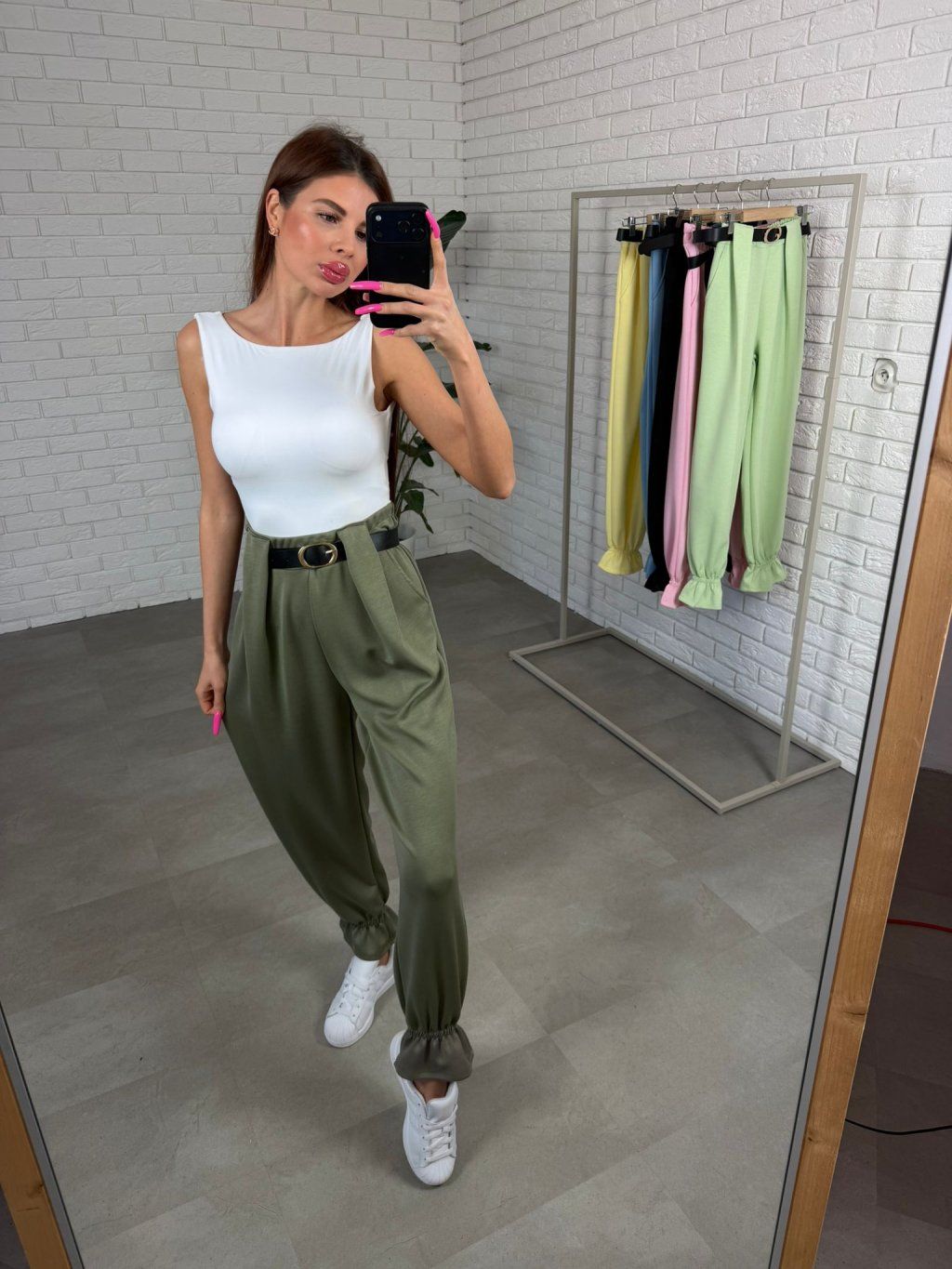 Poloteplákový materiál je mäkký, príjemný na dotyk a drží si tvar, takže nohavice pôsobia upravene aj pri bežnom nosení. Vysoký pás spolu s opaskom zvýrazní siluetu a vytvorí peknú líniu v páse.