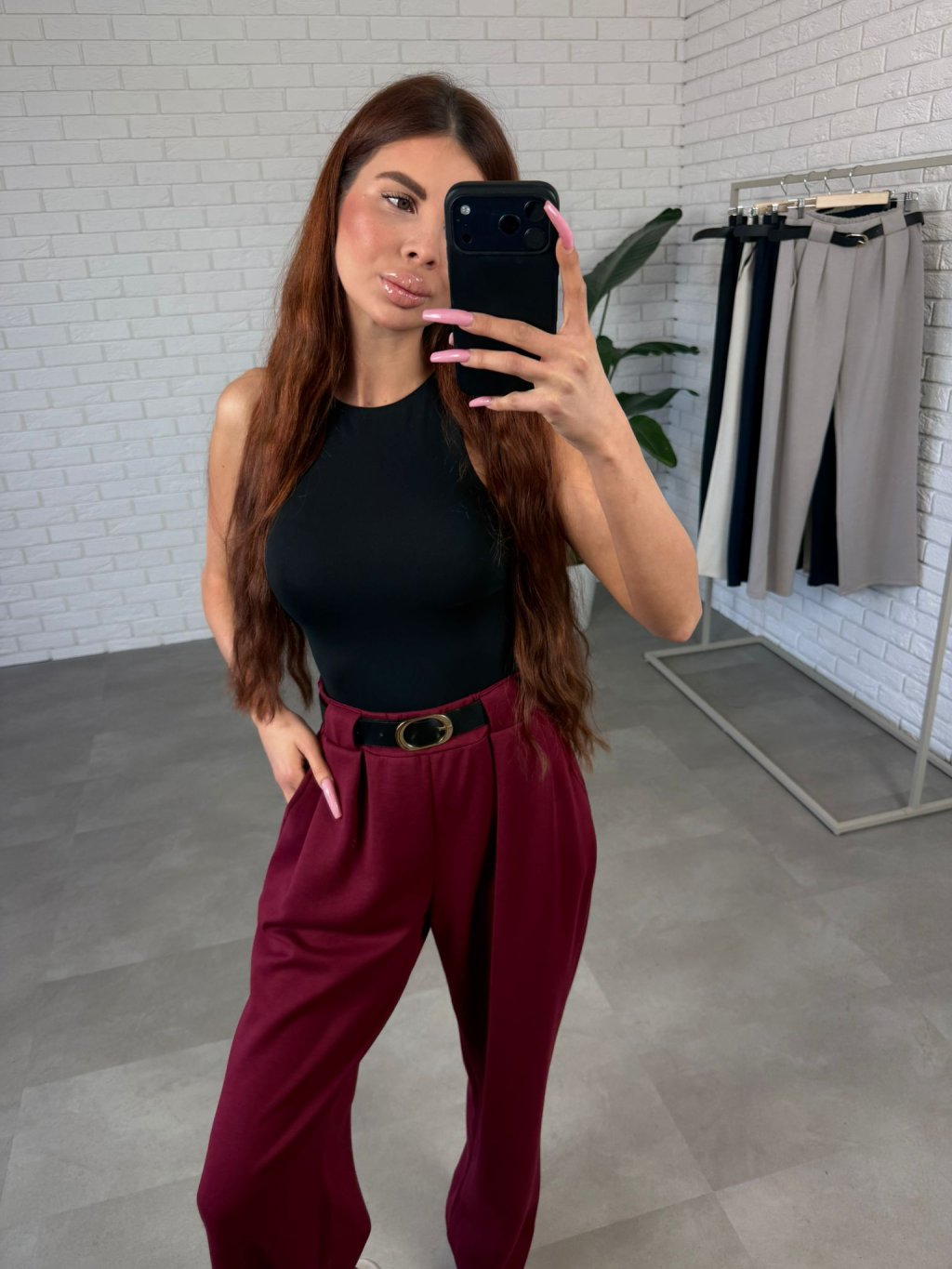 Poloteplákové nohavice VIOLA dlhé bordové