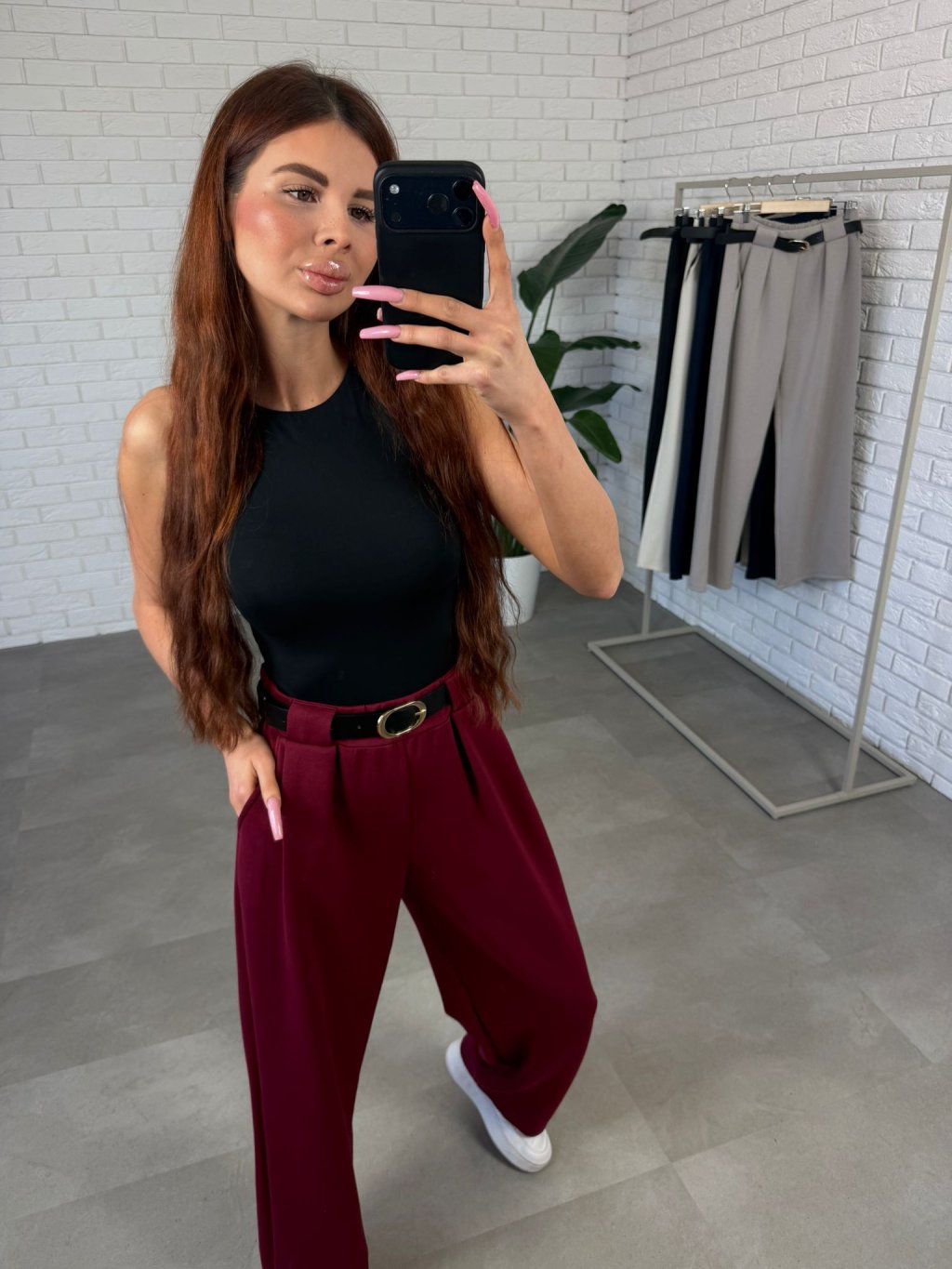 Poloteplákové nohavice VIOLA sú veľmi pohodlný a zároveň elegantne pôsobiaci kúsok, ktorý si obľúbiš najmä počas bežných dní. Vyrobené sú z kvalitného poloteplákového materiálu, ktorý je príjemný na dotyk, pekne drží tvar a zároveň sa nekrčí. Strih je voľný a ležérny, vďaka čomu krásne sadne postavám, ktoré majú proporčne výraznejšiu oblasť bruška, bokov, pásu alebo zadočku. Nohavice prirodzene splývajú na postave a pomáhajú zakryť drobné nedokonalosti. Vysoký pás s opaskom krásne zvýrazní pás a dodáva nohaviciam elegantnejší vzhľad. Praktickým detailom sú aj vrecká po bokoch. Nohavice VIOLA sú vhodné pre kočky približne do výšky 180 cm a veľkostne sedia na konfekčné veľkosti od S po L. Sú ideálnou voľbou, keď chceš kombináciu komfortu, ženského strihu a nadčasového vzhľadu.