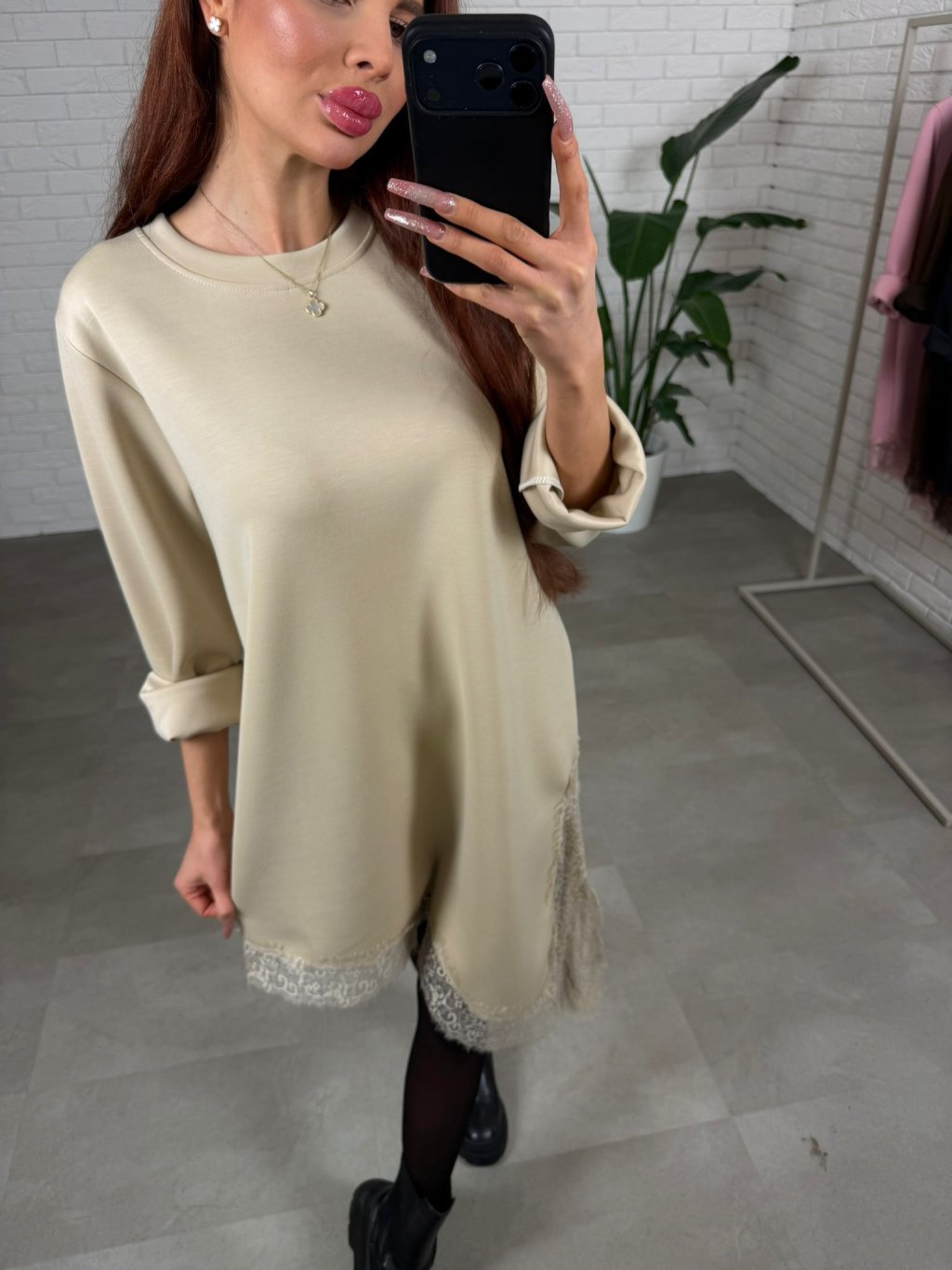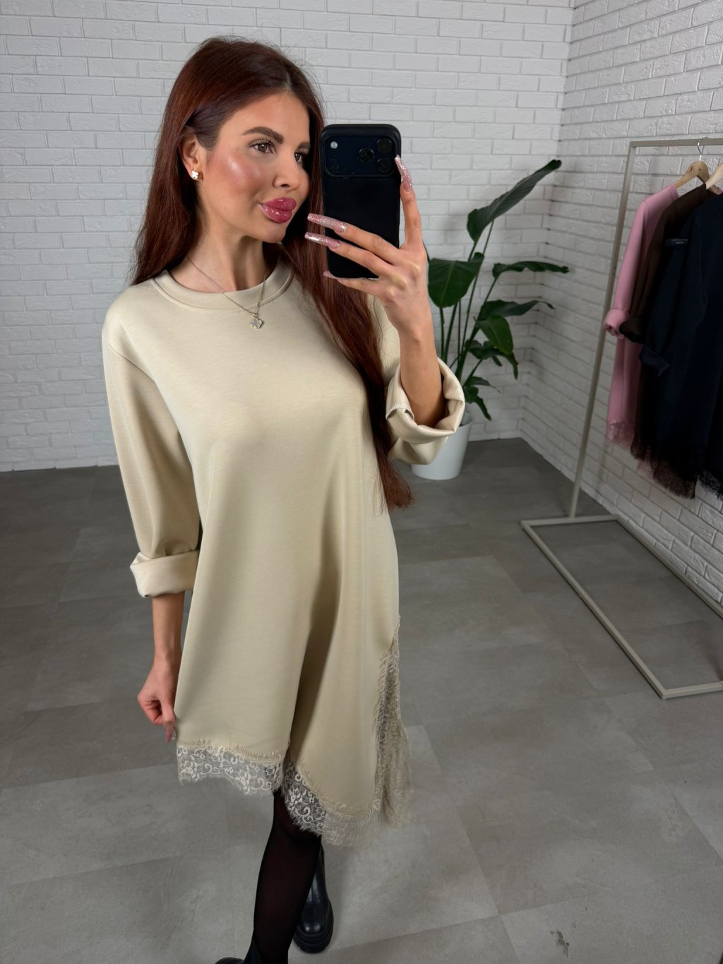 Poloteplákové šaty ALEXIA sú ušité z prémiového materiálu, ktorý je mäkký, príjemný na dotyk a krásne sa nosí počas celého dňa. Ich voľný, padavý ležérny strih je navrhnutý tak, aby nebol obtiahnutý na žiadnej postave a dá telu priestor, jemne splýva a zároveň pôsobí upravene. Trendy asymetrický strih dopĺňa čipkovaný volánik, ktorý robí z tohto kúsku niečo výnimočné a dodá outfitu ženský detail aj bez zbytočného šperkovania. Dlhý rukáv je praktický a pohodlný, navyše je strih navrhnutý tak, aby sadol aj vyšším kočkám, takže sa nemusíš báť krátkej dĺžky. ALEXIA vieš nosiť ako šaty aj ako tuniku – stačí pridať pančuchy či legíny a máš hotový look do práce, na stretnutie aj na bežné dni. Vďaka voľnosti v oblasti bruška sú vhodné aj pre tehotenské bruško. Veľkostne sedia na konfekčné veľkosti M až XL a výškovo sú ideálne pre kočky do 180 cm.