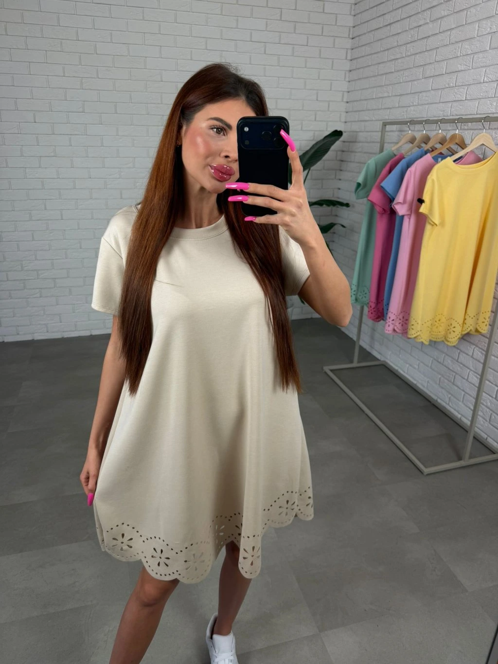 Spodnú časť dopĺňa krásny čipkovaný volánik, ktorý dodáva šatám jemný romantický nádych. Kratší širší rukáv sa pohodlne prispôsobí každému obvodu ruky a je ideálny na teplejšie dni.