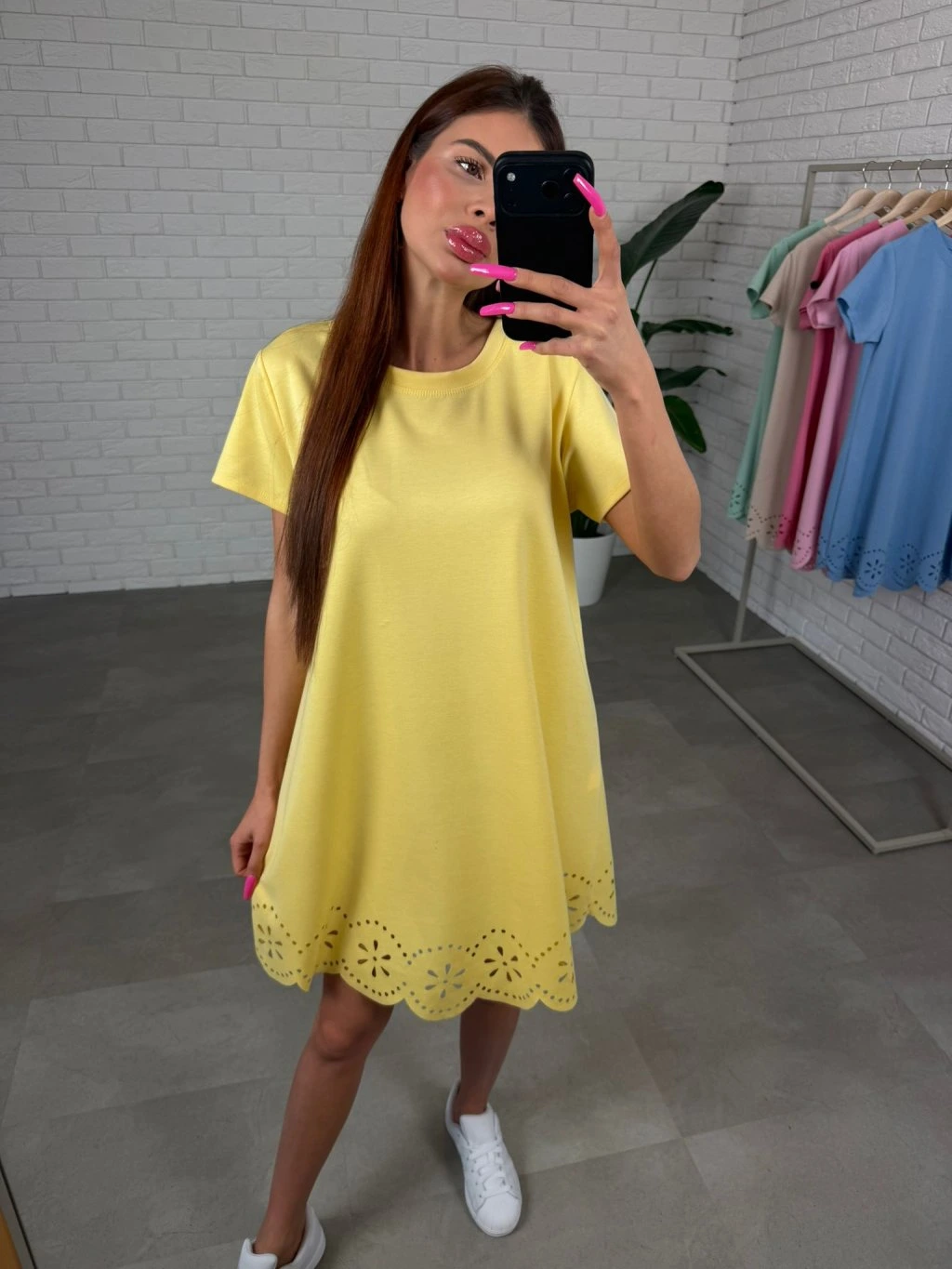Spodnú časť dopĺňa krásny čipkovaný volánik, ktorý dodáva šatám jemný romantický nádych. Kratší širší rukáv sa pohodlne prispôsobí každému obvodu ruky a je ideálny na teplejšie dni.