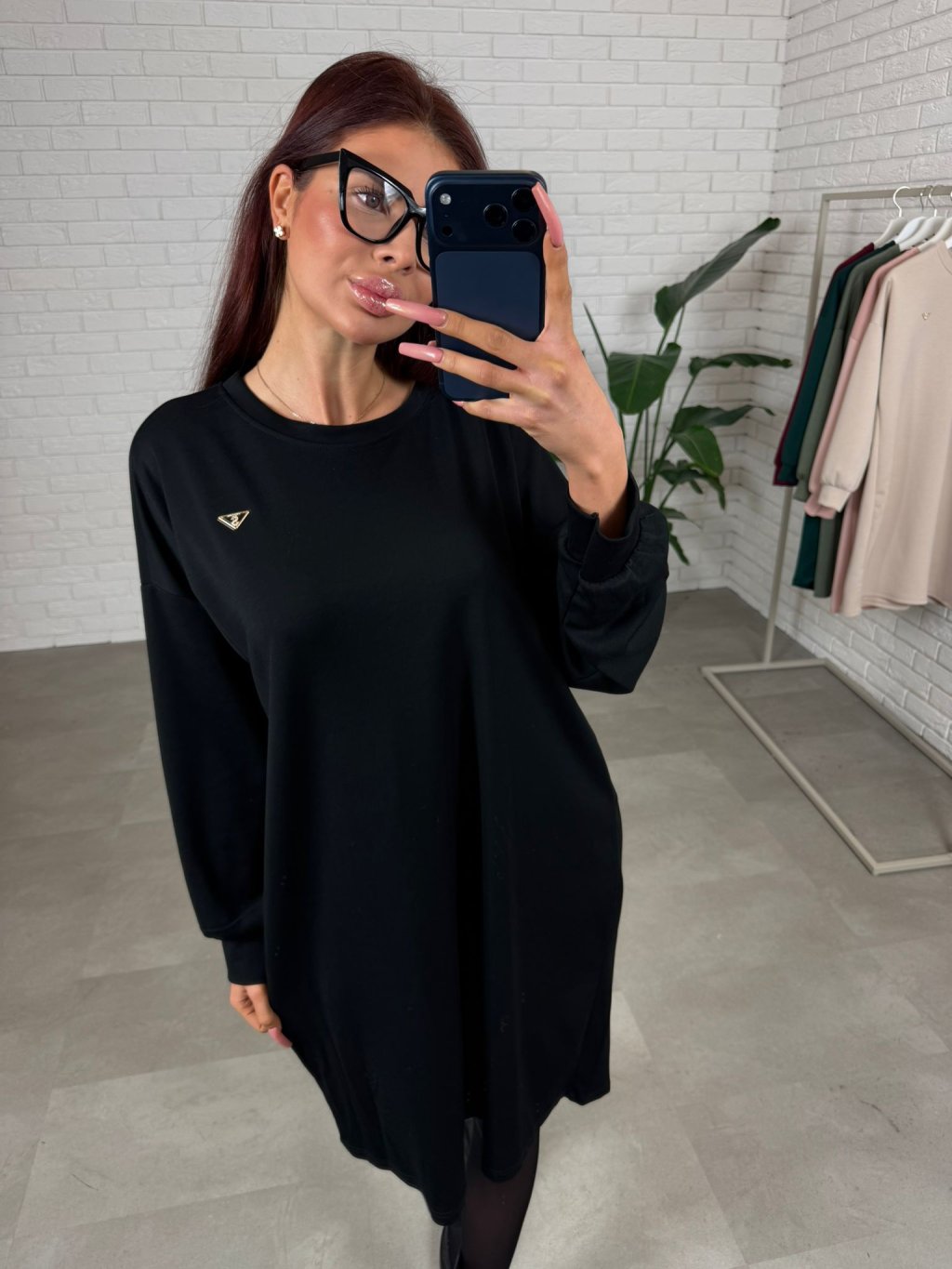 Poloteplákové šaty LOGER sú jednoduchého a voľného strihu, ktoré sú zdobené malým zlatým detailom. Sadnú na konfekčnú veľkosť od M po XL. Sú vhodné aj na vysoké kočky do 185 cm.