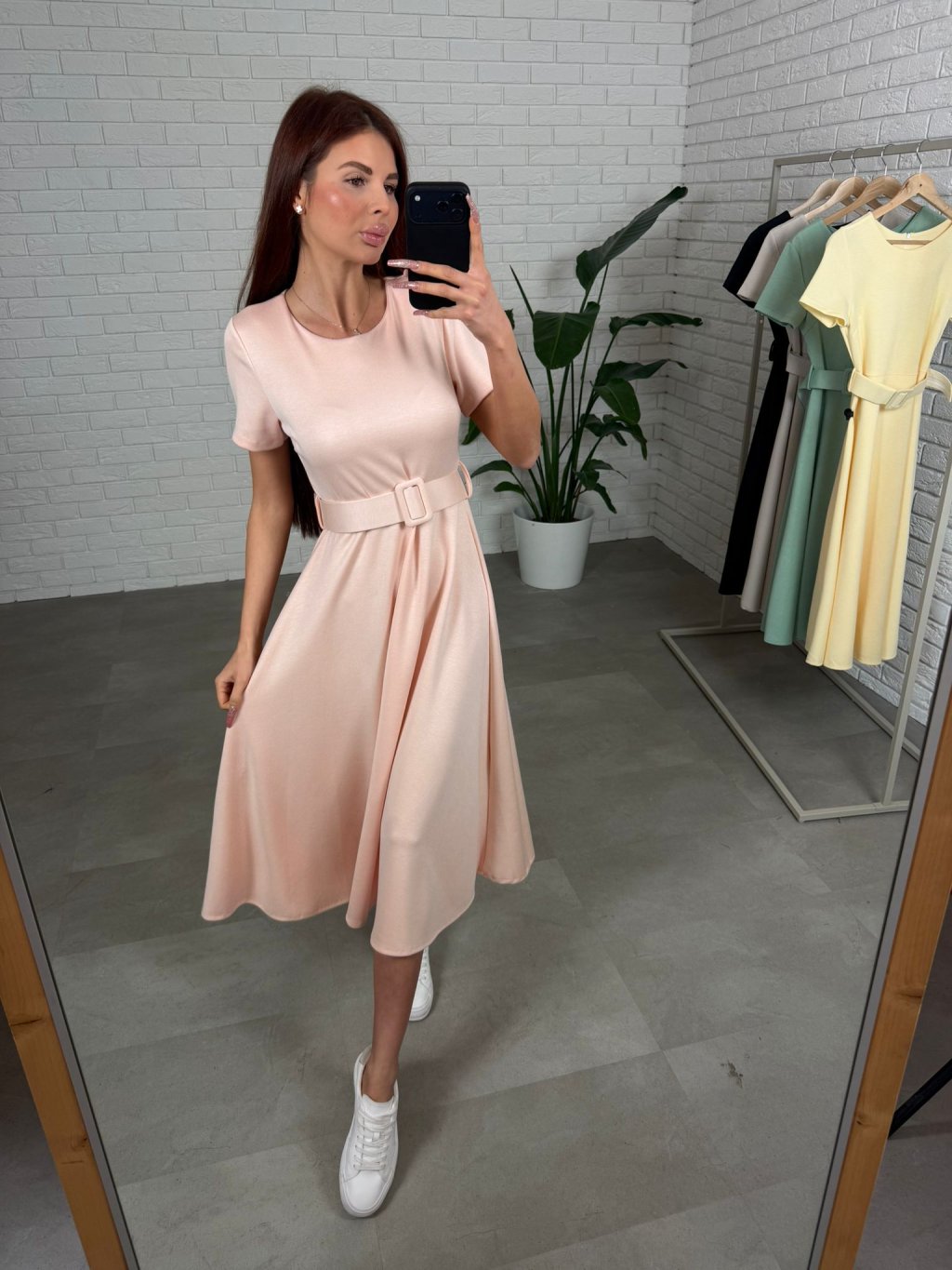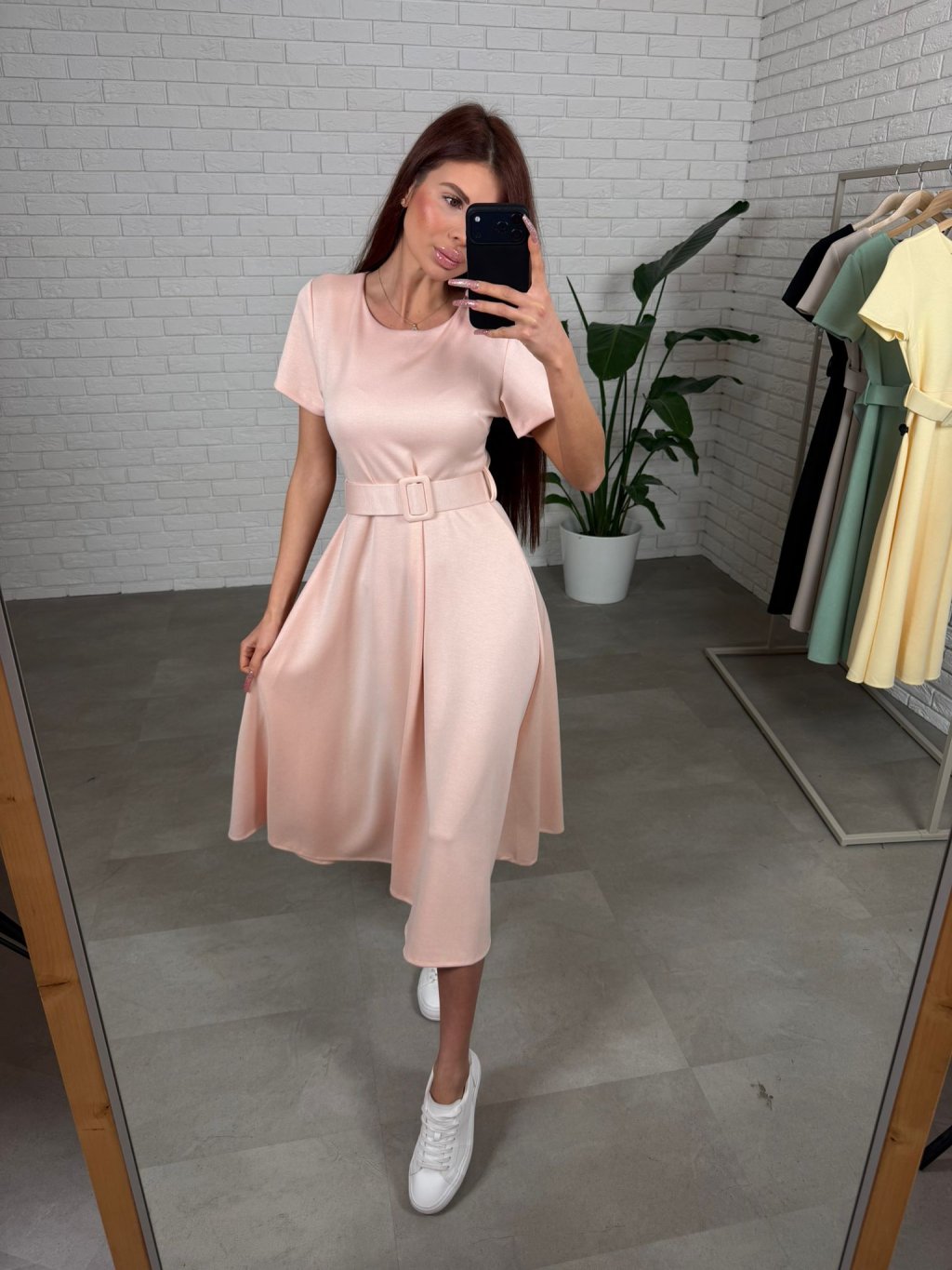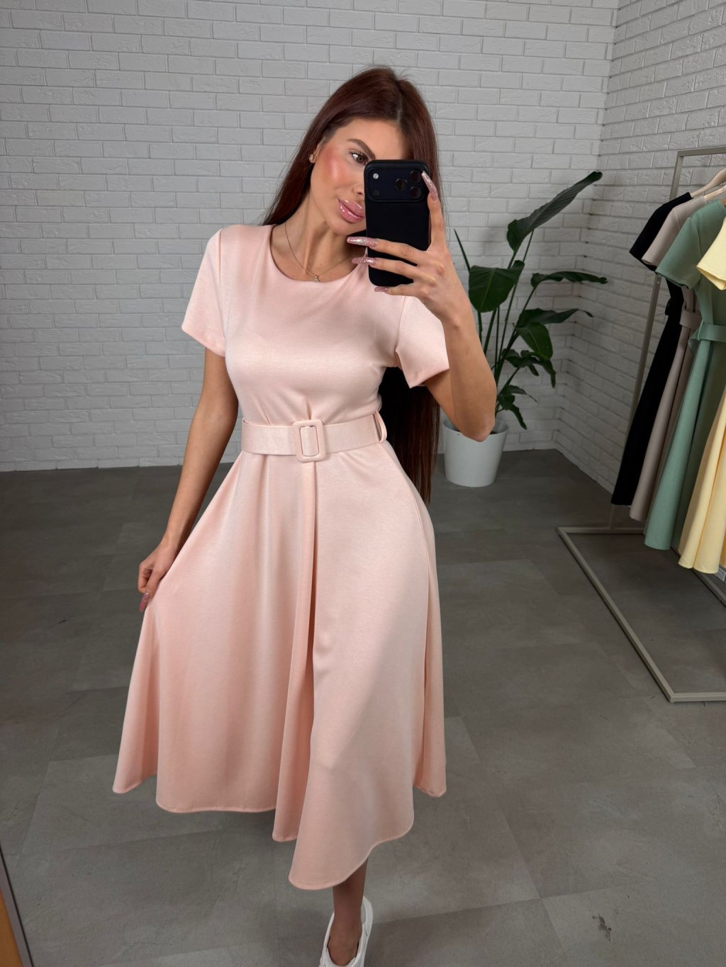 Šaty RAMONA sú ušité z kvalitného elastického nekrčivého materiálu, ktorý je príjemný na dotyk, krásne sa prispôsobí postave a celý deň si drží upravený vzhľad. Minimalistický vrch s krátkym rukávom pôsobí nadčasovo a žensky, zatiaľ čo bohatá áčková sukňa pri pohybe jemne splýva a lichotí siluete aj tým, že zakryje drobné nedokonalosti v oblasti bruška, bokov či zadku. Súčasťou je širší opasok, ktorý zvýrazní pás. RAMONA sa hodia na bežné dni, do práce aj na stretnutia, ľahko ich zladíš s teniskami aj elegantnejšou obuvou. Veľkostne sedia na konfekčné veľkosti XS až L a sú vhodné približne do 180 cm.