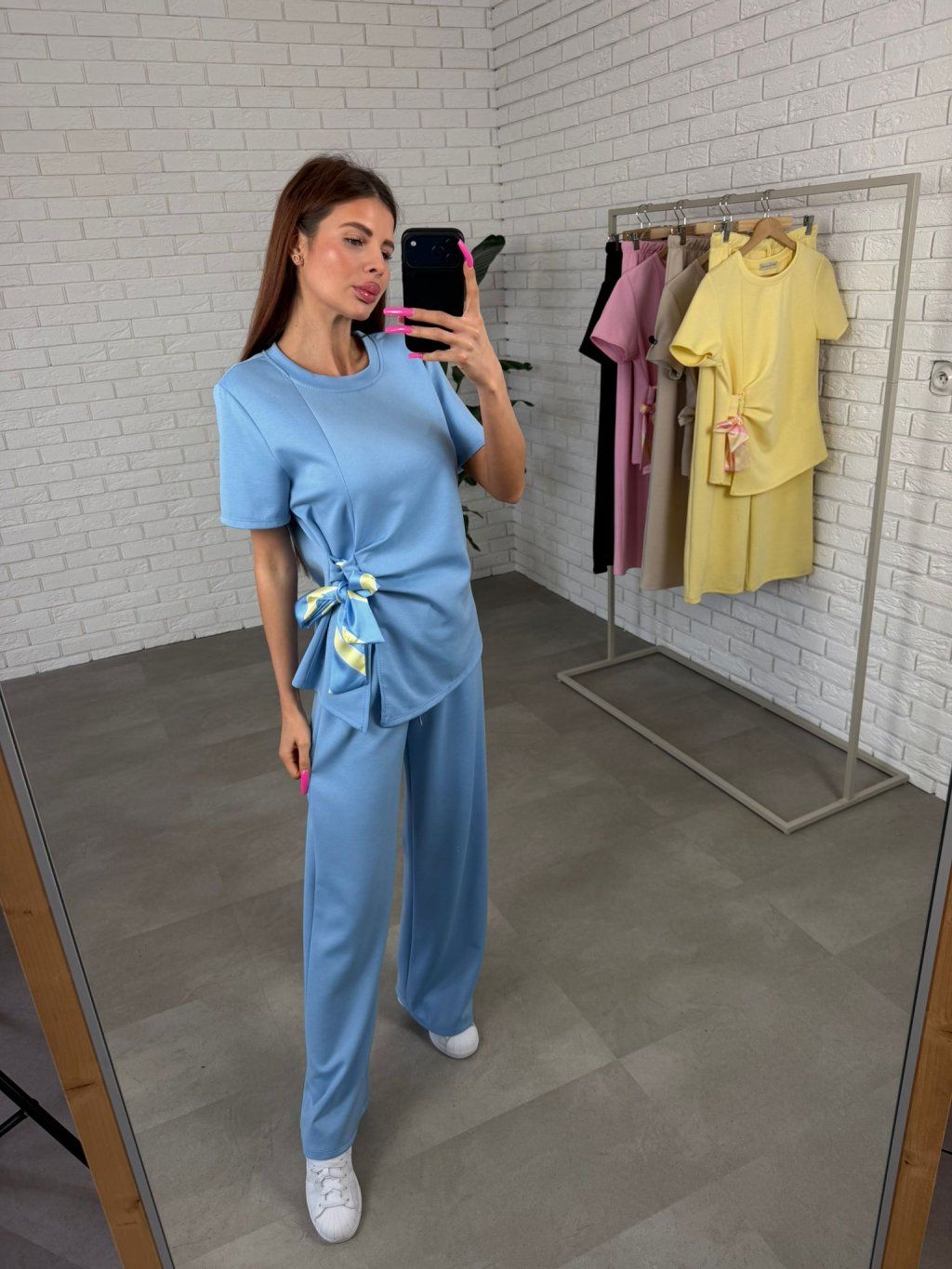 Top je doplnený o mašličku s ozdobnou stuhou, ktorú si vieš zaviazať podľa seba. Jemné riasenie v oblasti pása pomáha opticky zjemniť bruško a vytvára peknú siluetu bez obopínania. Rukávy sú voľné, takže sa pohodlne prispôsobia každej ručičke.