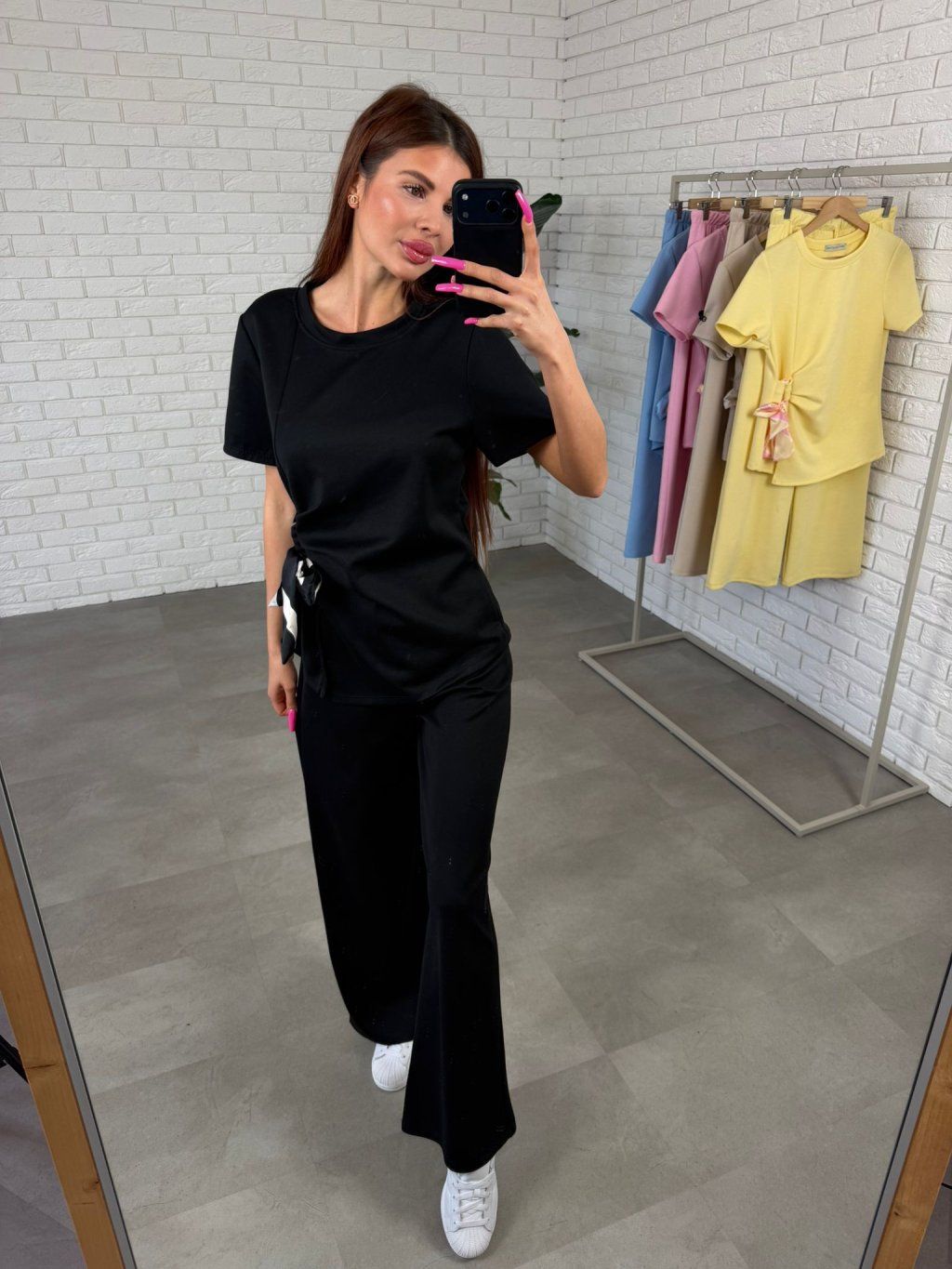 Top je doplnený o mašličku s ozdobnou stuhou, ktorú si vieš zaviazať podľa seba. Jemné riasenie v oblasti pása pomáha opticky zjemniť bruško a vytvára peknú siluetu bez obopínania. Rukávy sú voľné, takže sa pohodlne prispôsobia každej ručičke.