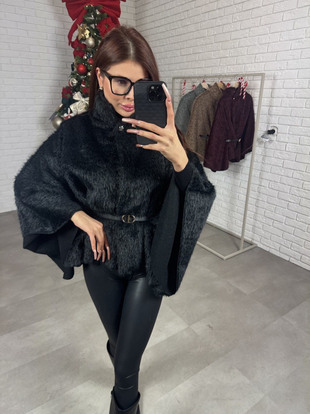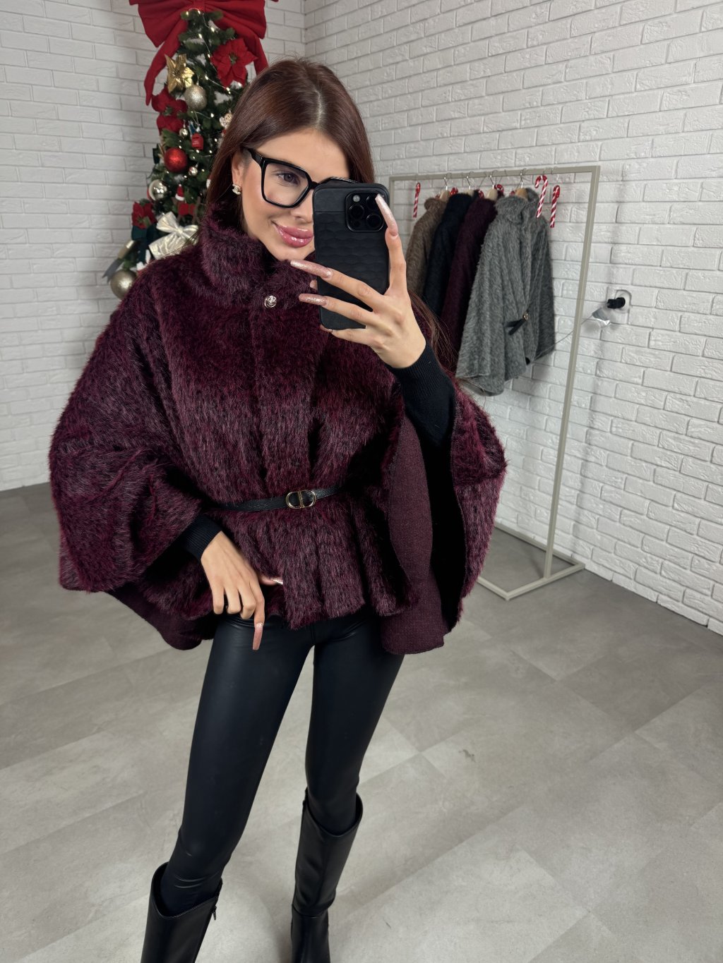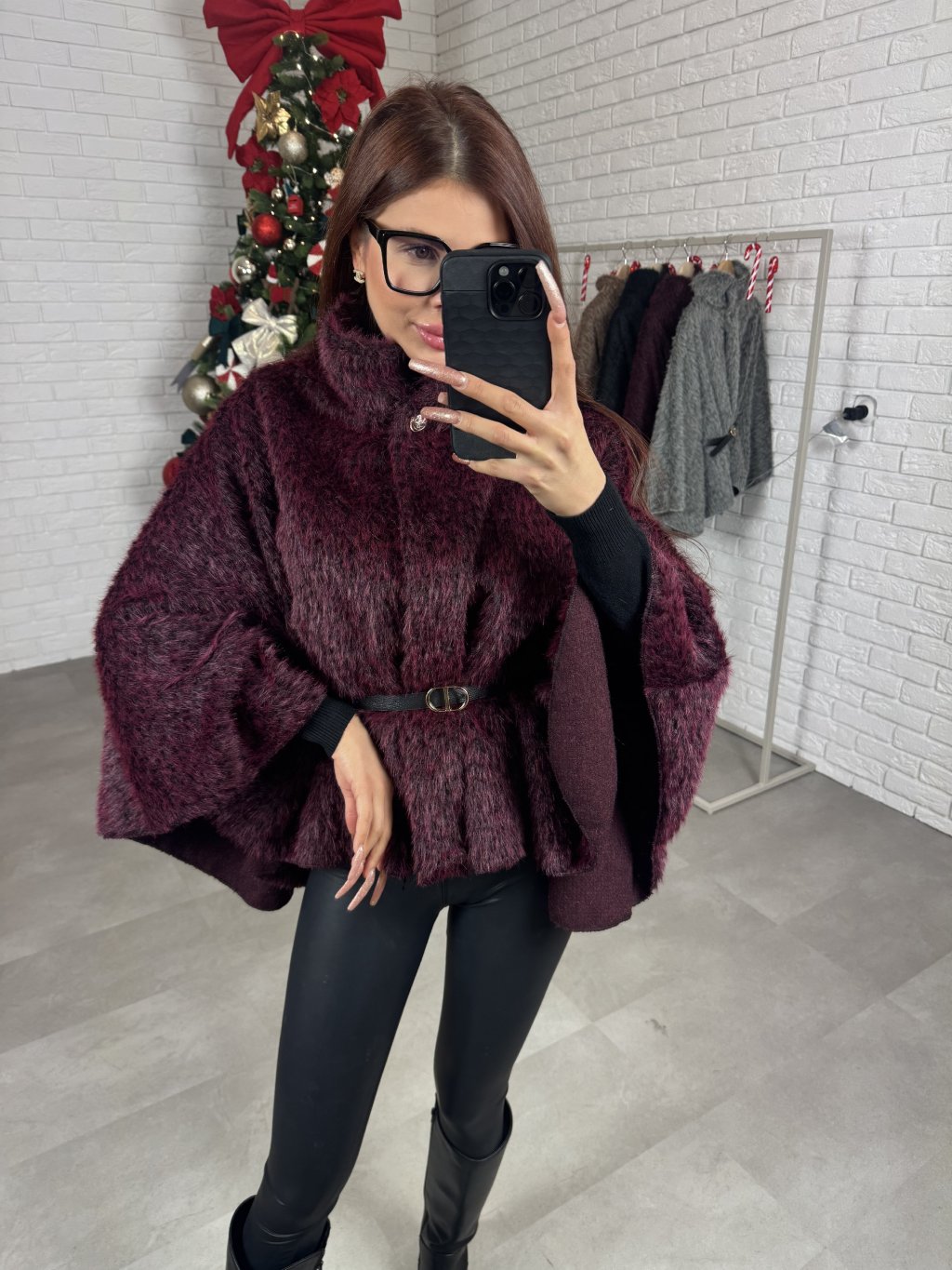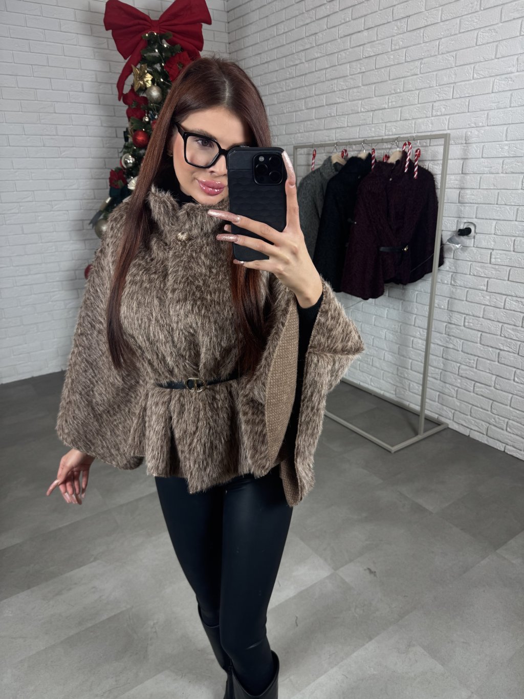 Pončo OLINKA vás počas zimy spoľahlivo zahreje a pohodlne nahradí aj kožúšok. Je vyrobené z príjemného, „chlpatého“ materiálu, ktorý pôsobí luxusne a hrejivo. Vďaka otvorenému strihu a možnosti stiahnutia opaskom perfektne sadne na postavu od XS až po XL. Súčasťou je opasok so zlatou sponou, ktorý dotvára elegantný vzhľad. Pončo je vhodné aj pre tehotenské bruško, krásne sa prispôsobí a poskytne dostatok priestoru. Pri krku je doplnené zlatým gombíkom, ktorý mu dodáva šmrnc a štýlový detail.