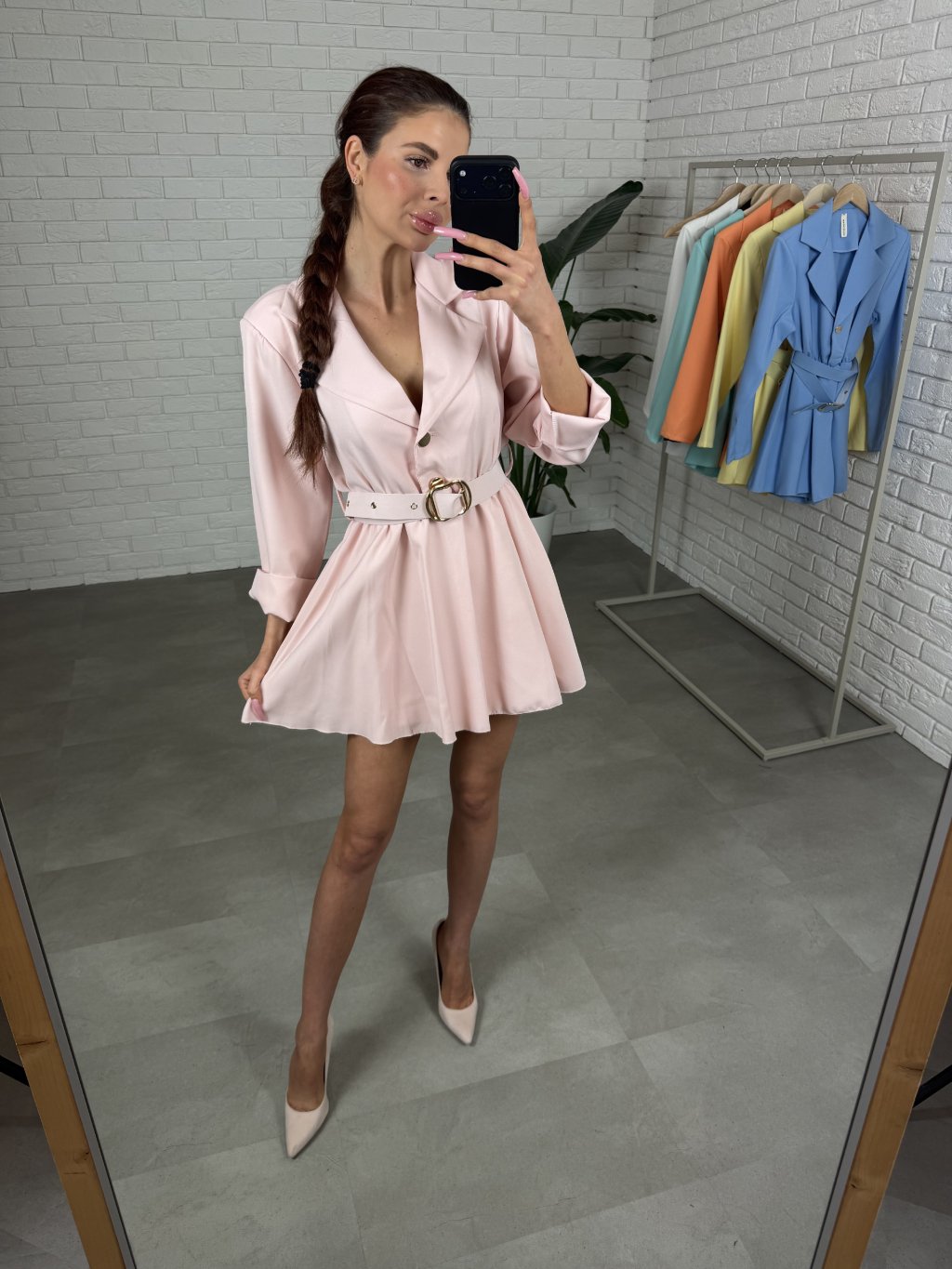 Šatový overal TULIP je ušitý zo športovo-elegantného materiálu, ktorý krásne drží tvar a celý deň pôsobí upravene bez toho, aby si sa musela akokoľvek obmedzovať. Na prvý pohľad vyzerá ako šaty s jemne nadýchanou sukničkou, no pod ňou sa skrývajú voľnejšie šortky, vďaka čomu sa v ňom cítiš istejšie a komfortnejšie aj vtedy, keď máš výraznejšie boky, bruško či zadoček. Pás zvýrazňuje opasok so zlatou prackou a pod ním sa schováva elastická gumka, takže sa pekne prispôsobí postave a vytvorí lichotivú siluetu. Prekladaný dekolt dopĺňajú dva zlaté gombíky, ktoré dodajú celému kúsku elegantný detail. Veľkostne sedí na konfekčné veľkosti od S po L a výškovo je ideálny pre kočky do 175 cm.