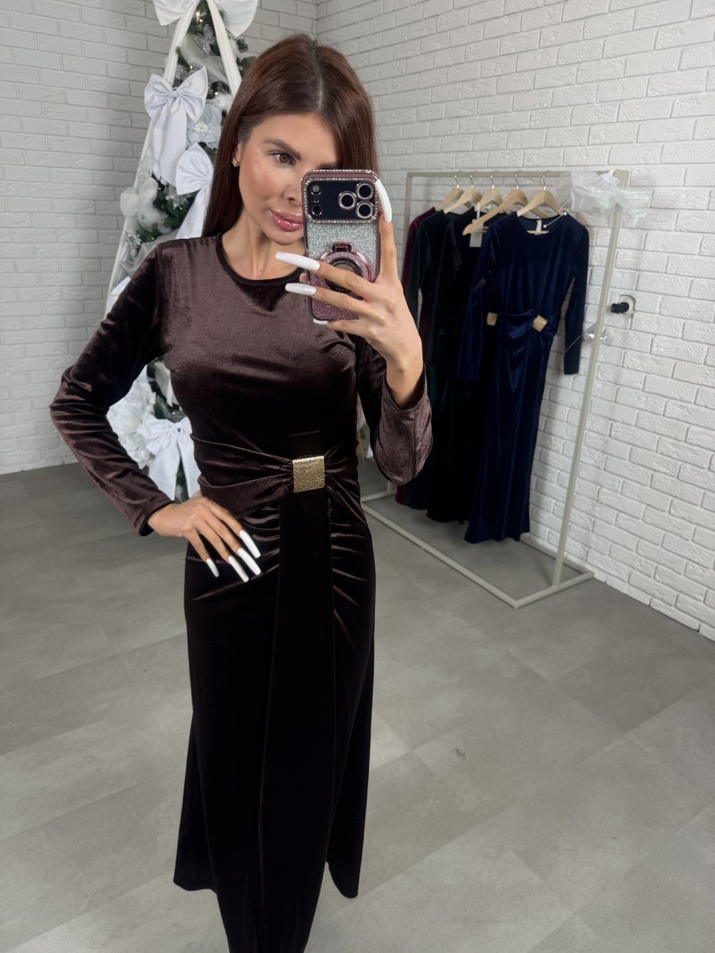 Šaty ANDREO sú vyrobené zo zamatového materiálu. Vhodné pre postavy vyššej postavy do 180cm. (Modelka má 170cm.) Na páse majú ozdobnú zlatú sponu a riasenie, ktoré zamaskujú nedokonalosti v oblasti bruška. Sú mierneho A-čkového strihu. Sadnú od veľkosti XS po L. Vhodné na každú spoločenskú udalosť.