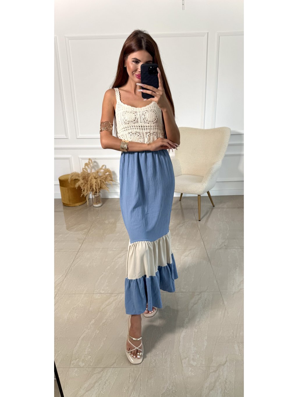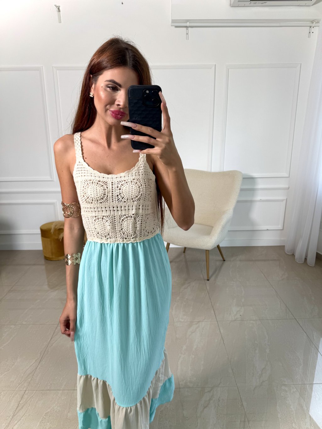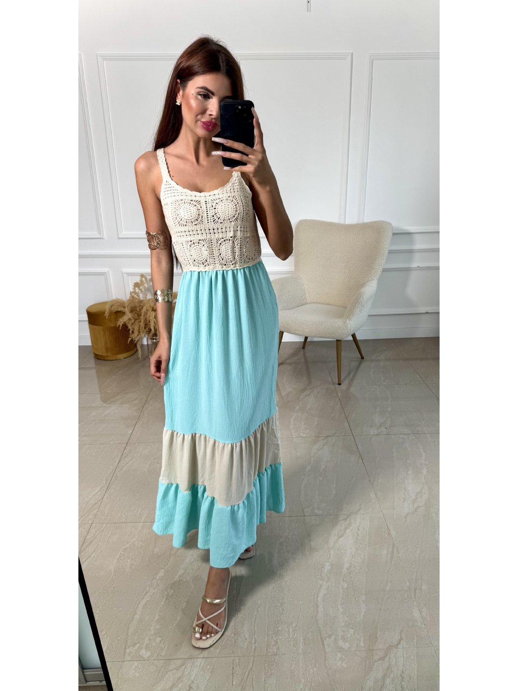 Šaty ARIEL pozostávajú z mäkkučkého háčkovaného topu, ktorý vďaka svojej elasticite sadne na menšie aj väčšie prsia. V páse majú elastickú gumku, preto sadnú aj na tehotenské bruško. Vhodné sú na veľkosti od XS až L. Šaty majú na spodku sukne volánik. Dĺžka šiat siaha po členky, preto sadnú na nižšie aj vyššie baby.