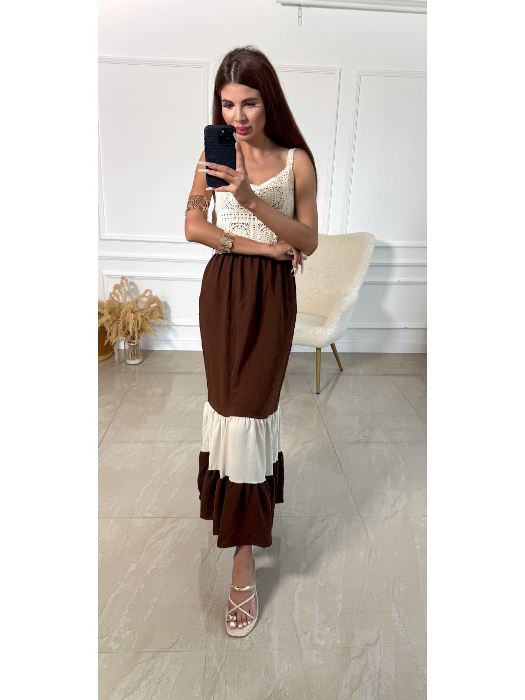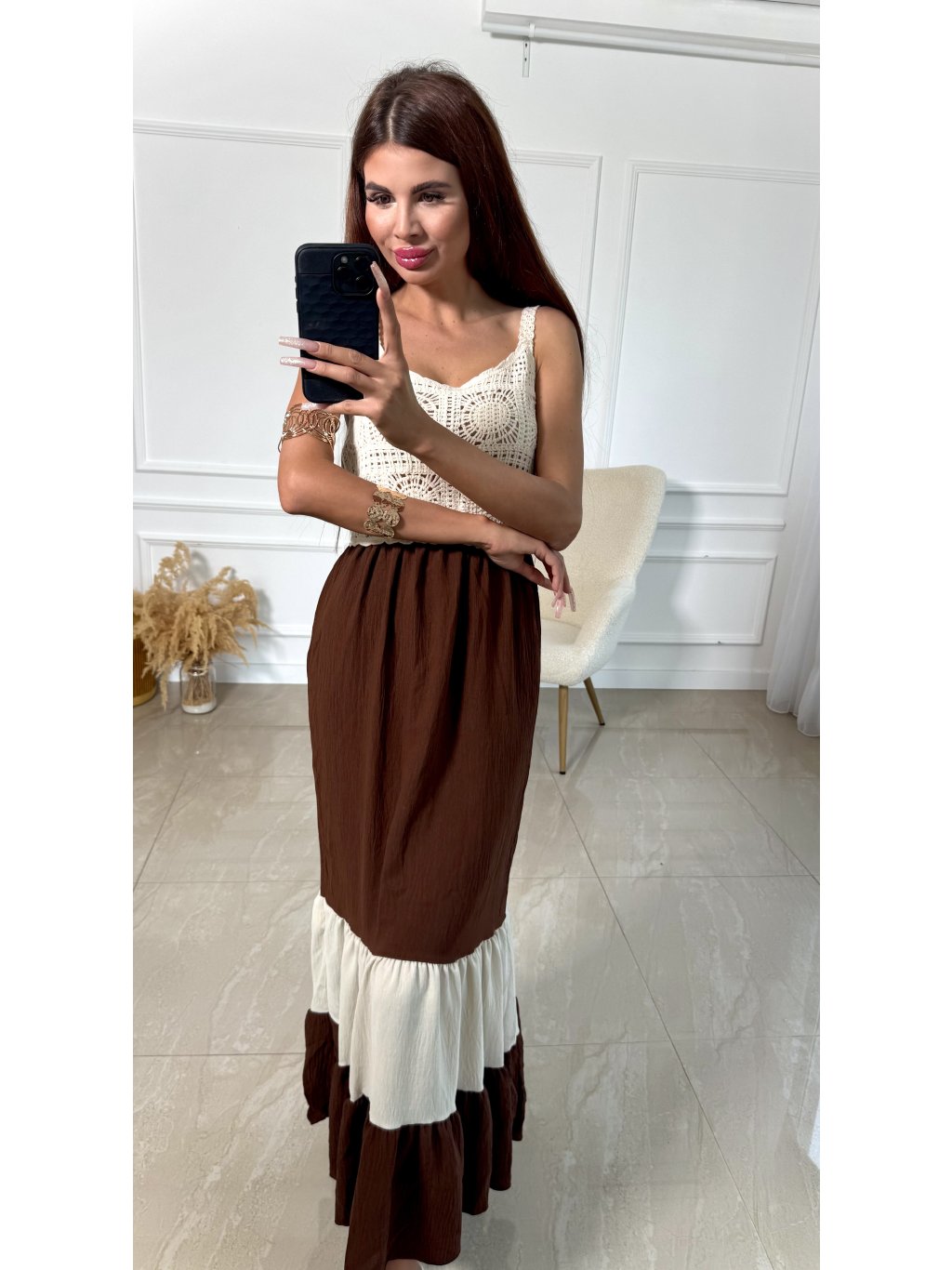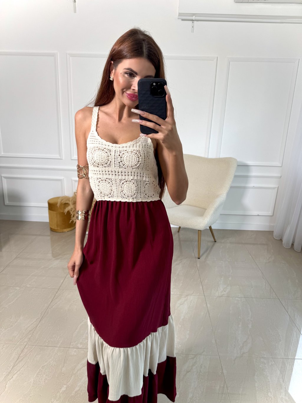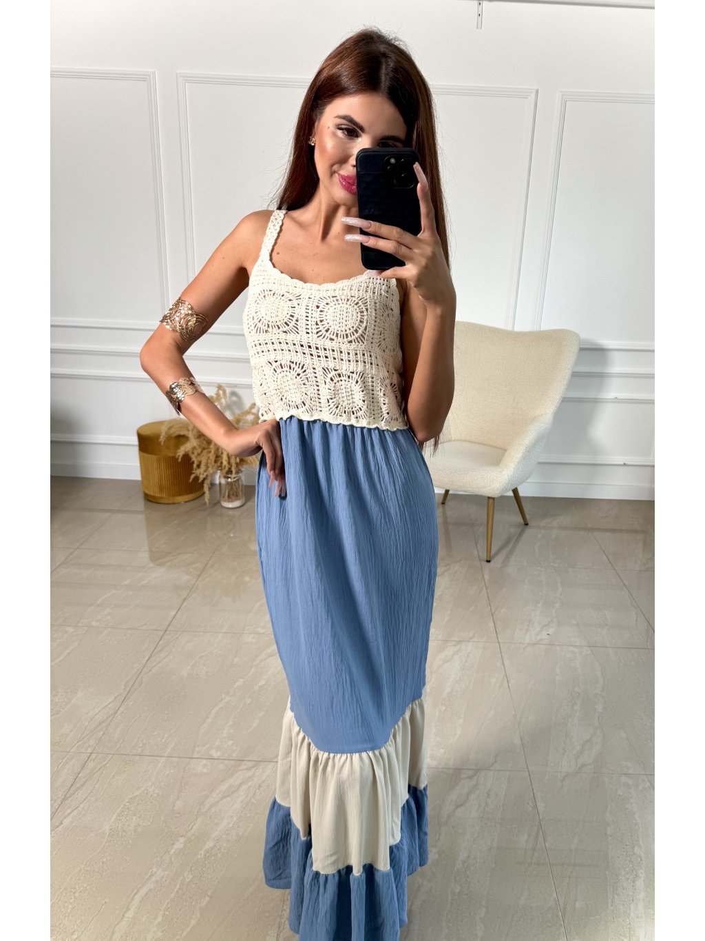 Šaty ARIEL pozostávajú z mäkkučkého háčkovaného topu, ktorý vďaka svojej elasticite sadne na menšie aj väčšie prsia. V páse majú elastickú gumku, preto sadnú aj na tehotenské bruško. Vhodné sú na veľkosti od XS až L. Šaty majú na spodku sukne volánik. Dĺžka šiat siaha po členky, preto sadnú na nižšie aj vyššie baby.