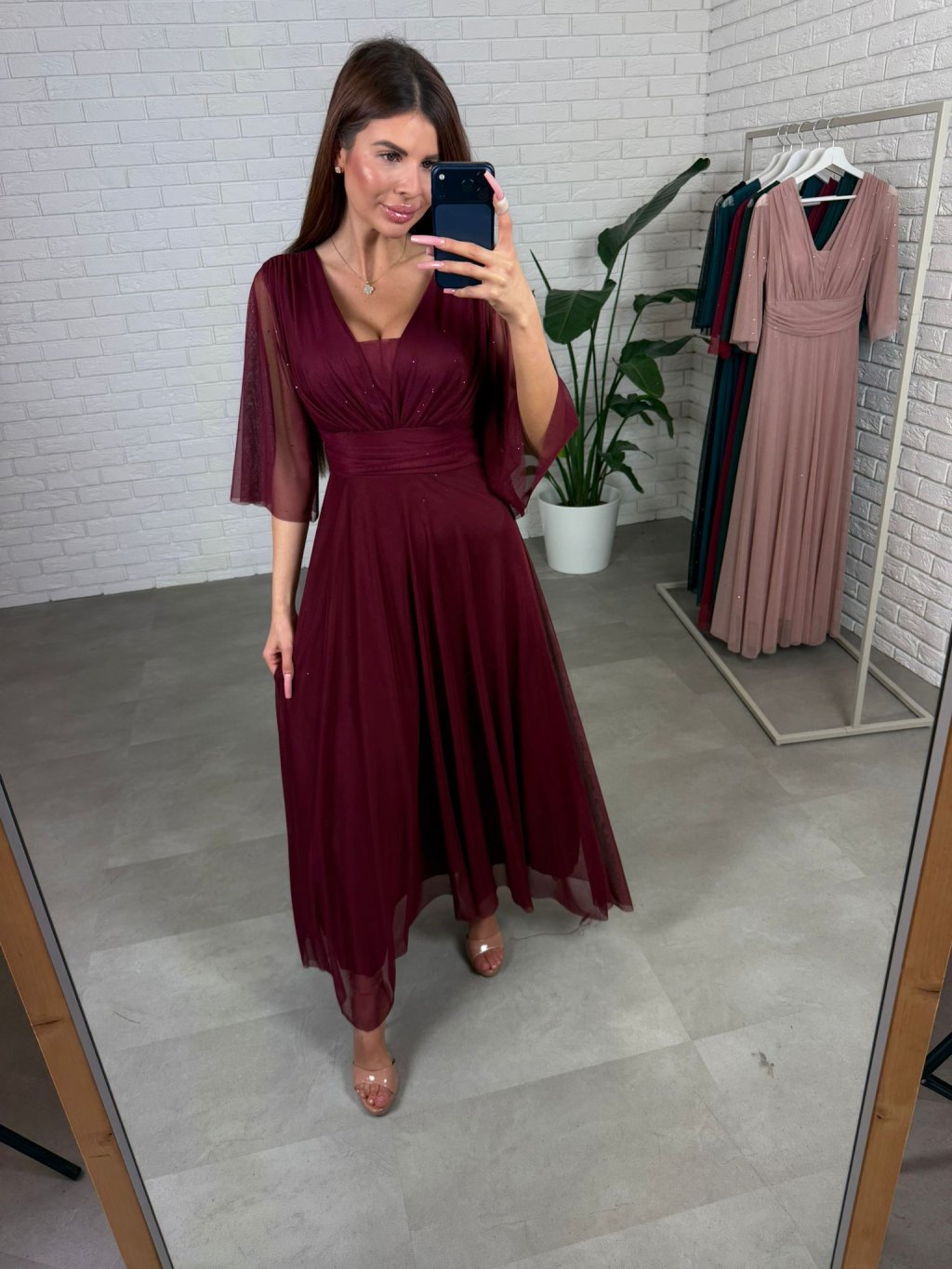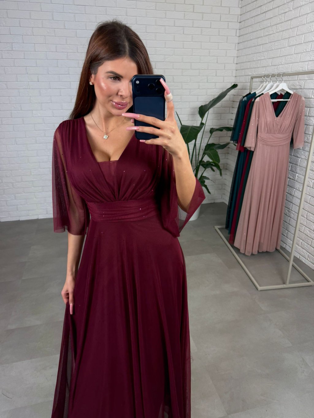 Šaty AUGUSTIN sú ušité z padavého, trblietavého materiálu. Sú veľmi bohaté na materiál. Majú voľný áčkový strih, ktorý sadne na každý typ postavy aj na tehotenské bruško. Vďaka tomuto strihu šaty výborne sedia na veľkosti od S po XL. Rukávy sú zakončené v strede pod lakťom aby komfortne sedeli a nikde netlačili. Dekolt je regulovateľný, takže si ho môžete prispôsobiť podľa potreby – sadne aj na menšie aj na väčšie prsia. Šaty majú vzadu viazanie, ktoré umožňuje ešte lepšie prispôsobenie postave. Sú ideálnou voľbou pre dievčatá, ktoré hľadajú pohodlie aj eleganciu v jednom.