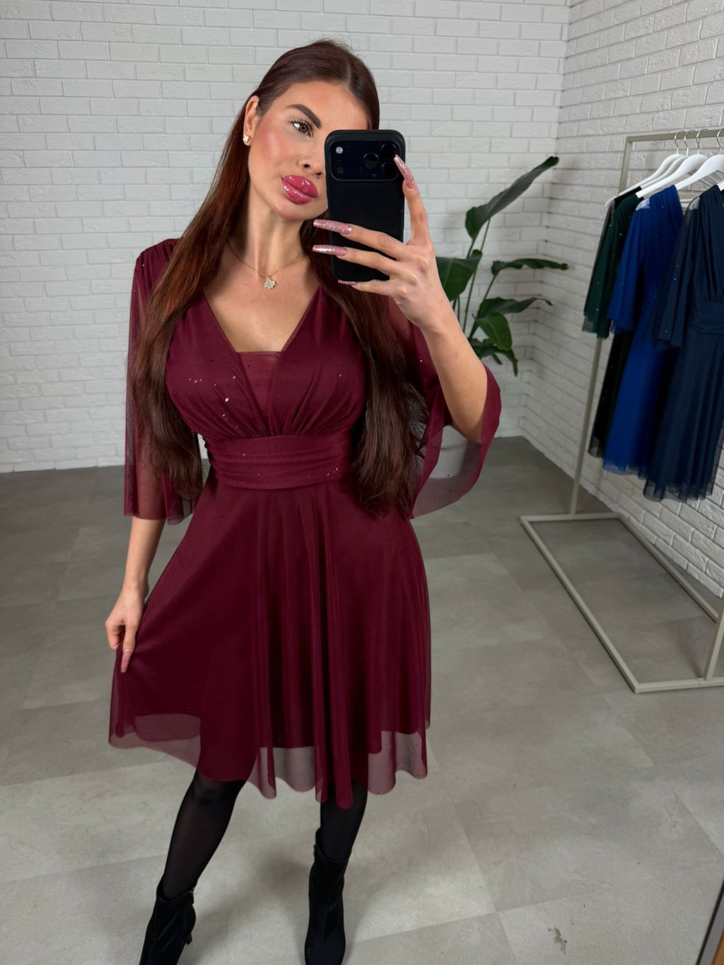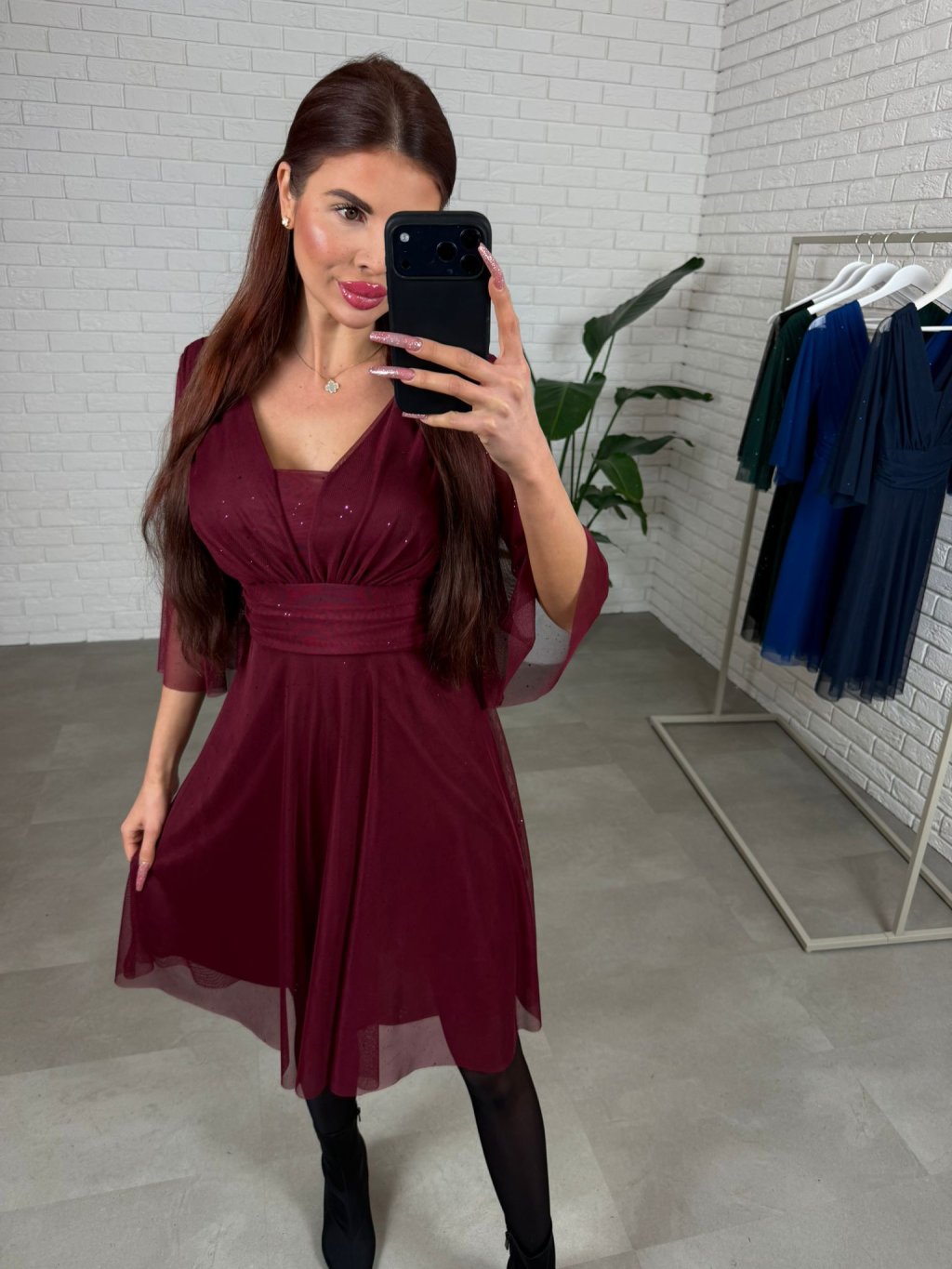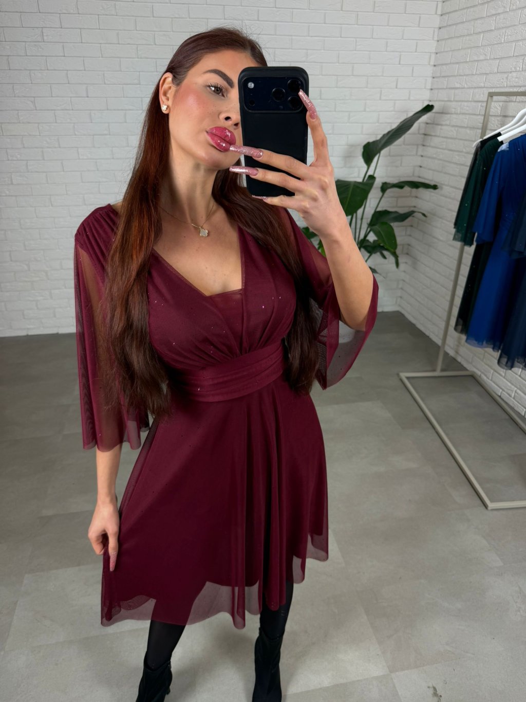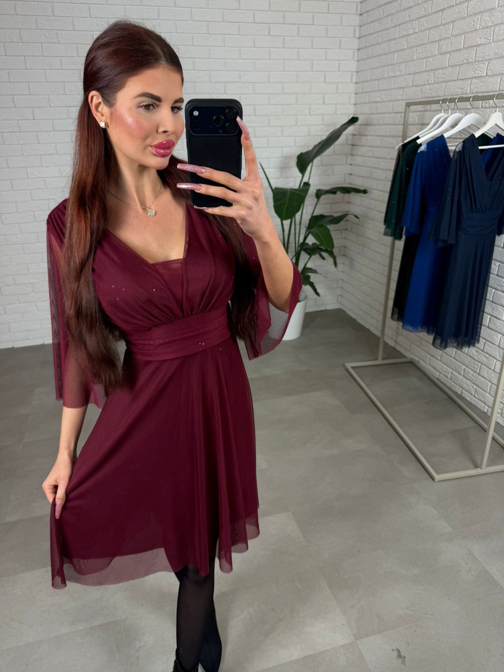 Krátke spoločenské šaty AUGUSTÍN sú elegantnou a univerzálnou voľbou na akúkoľvek spoločenskú udalosť, pričom strih je ideálny pre postavu do výšky približne 170 cm. Jemne vystužený dekolt krásne tvaruje siluetu a zabezpečuje pohodlie počas nosenia, zatiaľ čo decentne riešené transparentné rukávy dodávajú šatám jemnosť. Dĺžka tesne ku kolenám v lichotivom Áčkovom strihu pôsobí žensky a vzdušne a trblietavý materiál je príjemný na dotyk, nepichá a trblietky neopadávajú, vďaka čomu si šaty zachovávajú svoj luxusný vzhľad po celý večer. Vhodné do 170 cm pre od S po L.
