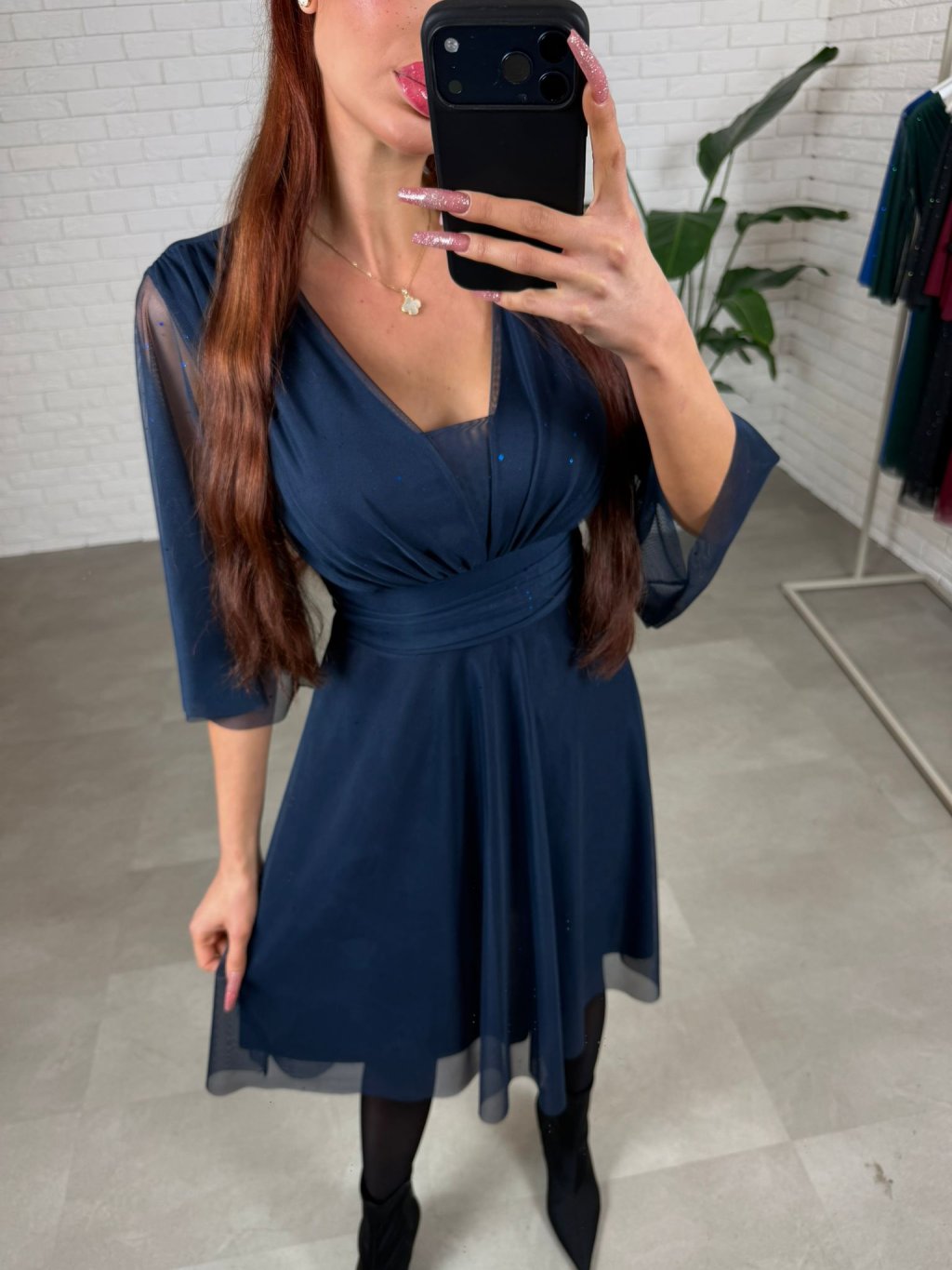 Krátke spoločenské šaty AUGUSTÍN sú elegantnou a univerzálnou voľbou na akúkoľvek spoločenskú udalosť, pričom strih je ideálny pre postavu do výšky približne 170 cm. Jemne vystužený dekolt krásne tvaruje siluetu a zabezpečuje pohodlie počas nosenia, zatiaľ čo decentne riešené transparentné rukávy dodávajú šatám jemnosť. Dĺžka tesne ku kolenám v lichotivom Áčkovom strihu pôsobí žensky a vzdušne a trblietavý materiál je príjemný na dotyk, nepichá a trblietky neopadávajú, vďaka čomu si šaty zachovávajú svoj luxusný vzhľad po celý večer. Vhodné do 170 cm pre od S po L.