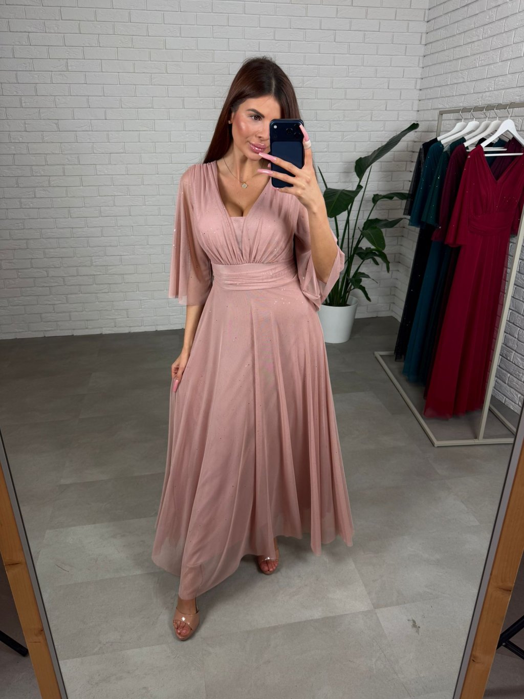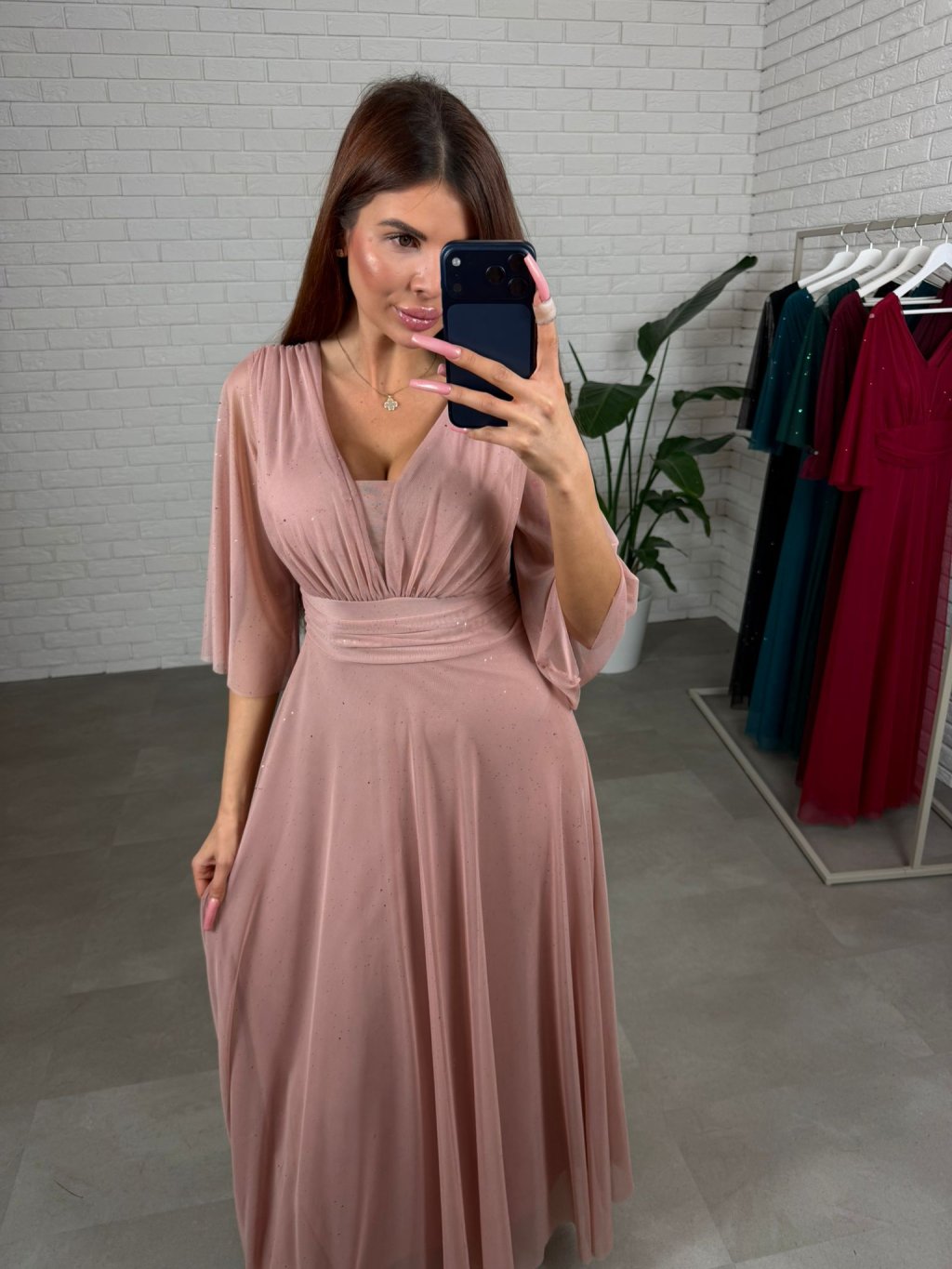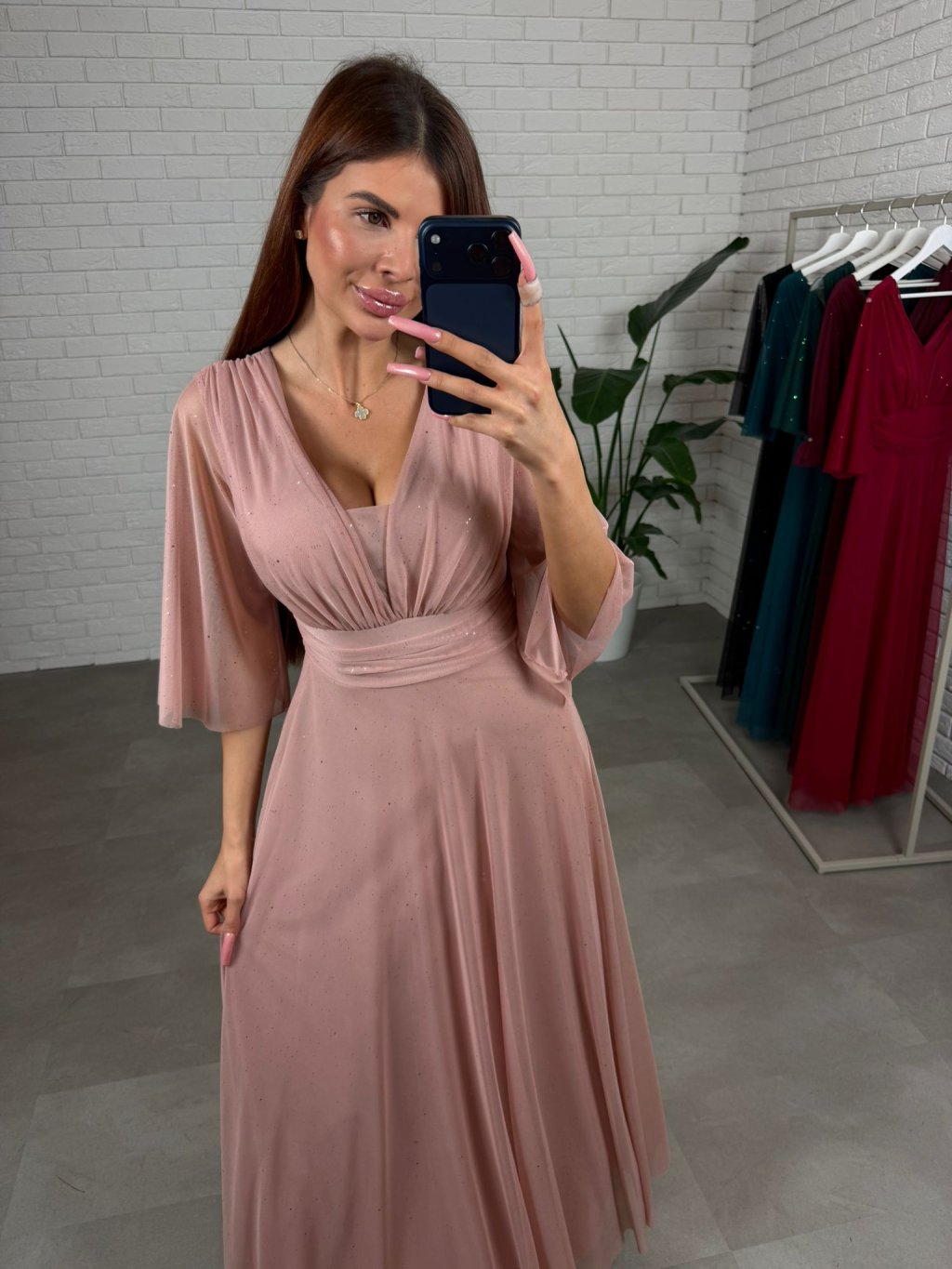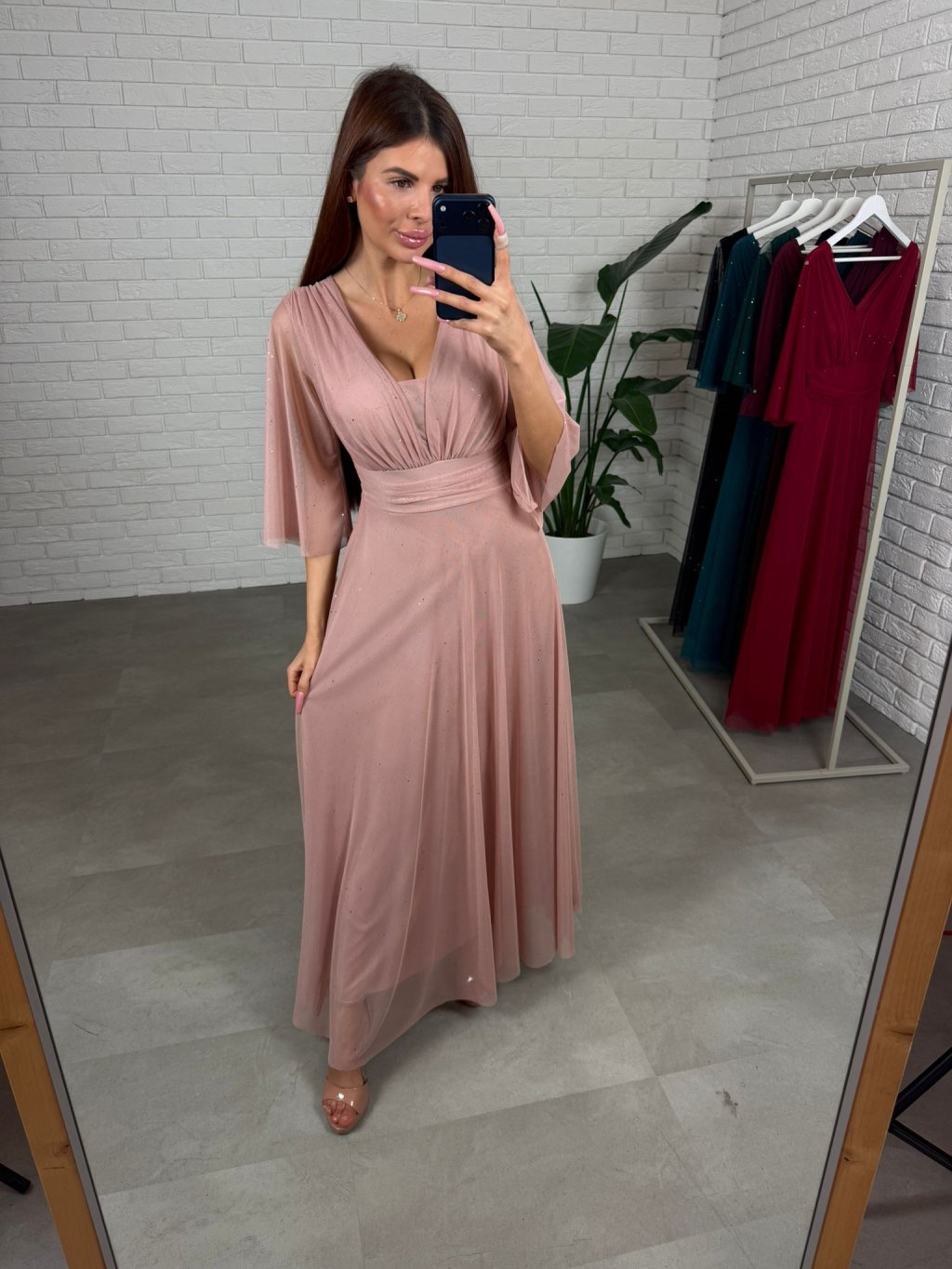 Šaty AUGUSTIN sú ušité z padavého, trblietavého materiálu. Sú veľmi bohaté na materiál. Majú voľný áčkový strih, ktorý sadne na každý typ postavy aj na tehotenské bruško. Vďaka tomuto strihu šaty výborne sedia na veľkosti od S po XL. Rukávy sú zakončené v strede pod lakťom aby komfortne sedeli a nikde netlačili. Dekolt je regulovateľný, takže si ho môžete prispôsobiť podľa potreby – sadne aj na menšie aj na väčšie prsia. Šaty majú vzadu viazanie, ktoré umožňuje ešte lepšie prispôsobenie postave. Sú ideálnou voľbou pre dievčatá, ktoré hľadajú pohodlie aj eleganciu v jednom.