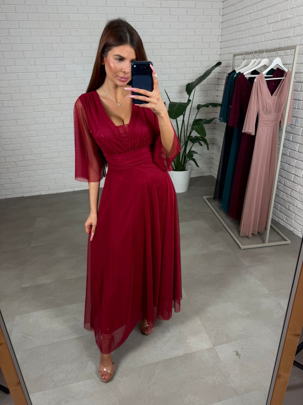 Šaty AUGUSTIN sú ušité z padavého, trblietavého materiálu. Sú veľmi bohaté na materiál. Majú voľný áčkový strih, ktorý sadne na každý typ postavy aj na tehotenské bruško. Vďaka tomuto strihu šaty výborne sedia na veľkosti od S po XL. Rukávy sú zakončené v strede pod lakťom aby komfortne sedeli a nikde netlačili. Dekolt je regulovateľný, takže si ho môžete prispôsobiť podľa potreby – sadne aj na menšie aj na väčšie prsia. Šaty majú vzadu viazanie, ktoré umožňuje ešte lepšie prispôsobenie postave. Sú ideálnou voľbou pre dievčatá, ktoré hľadajú pohodlie aj eleganciu v jednom.