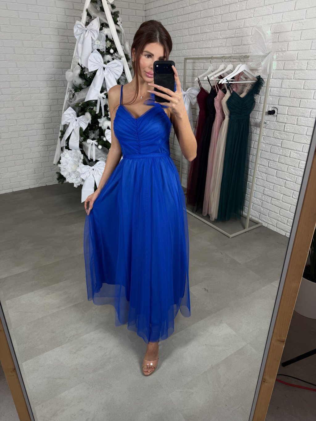 Šaty AURELA sú dokonalým kúskom na akúkoľvek spoločenskú udalosť, ples či oslavu Nového roka. Sadnú na konfekčnú veľkosť od XS po menšie L,, vhodné sú pre kočky do 175 cm. Majú regulovateľné ramienka, pričom jedno je zdobené. Košíky sadnú až po veľkosť D. Vzadu sa viažu na mašľu a majú elastickú gumku. Prekladaný tylový materiál im pridáva na elegantnosti, sukňa je krásna, pohyblivá, na hrudi majú riasenie a v páse sú zúžené.