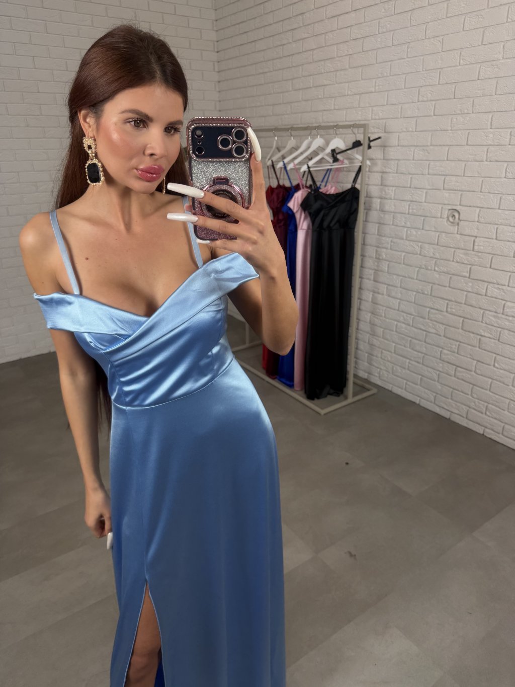 Šaty Aurora z exkluzívneho saténu sú správnou voľbou na každú spoločenskú udalosť. Satén je padavý, takže šaty vytvárajú veľmi elegantný dojem. Na sukničke je jemný decentný rozparok. Vrchný strih je vhodný pre väčšie aj menšie prsia. Majú klasické tenké ramienka ale aj padavý detail. Dajú sa nosiť aj bez ramienok. Sadnú od XS po menšie L.
