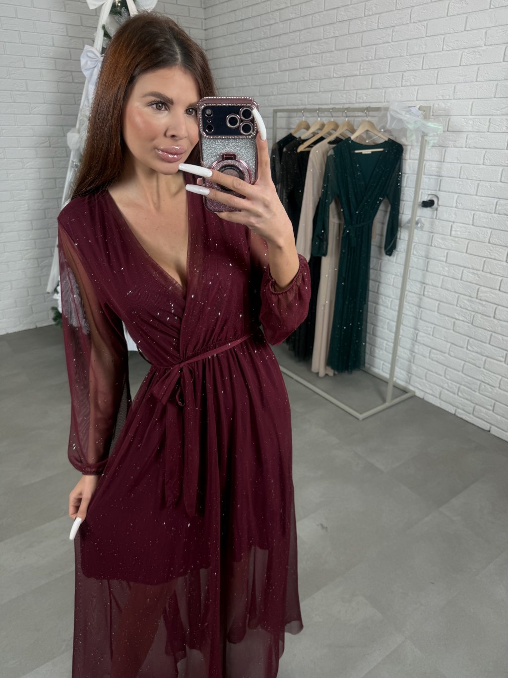 Šaty AVARA dlhé majú voľný trblietavý materiál. Sadnú aj na tehotenské bruško. Sadnú aj na väčšie aj menšie prsia. Vhodné od veľkosti XS po L. Reguľovateľný pás. Šaty majú podsukničku. Reguľovateľný výstrih. Šaty majú áčkový strih a sú v dlhej dĺžke, preto sadnú na postavy do 180cm. Priesvitné, trblietavé rukávy nádherne dotvárajú celkový dojem zo šiat ✨ Ideálne pre vás, ak milujete eleganciu a jemný lesk 💖👗