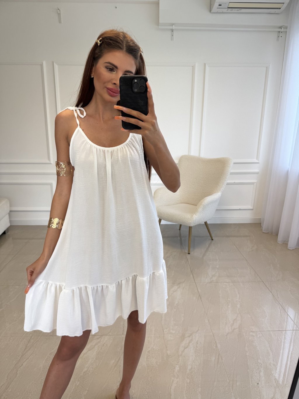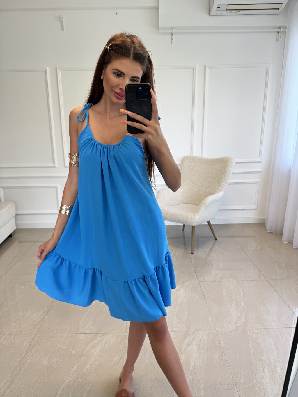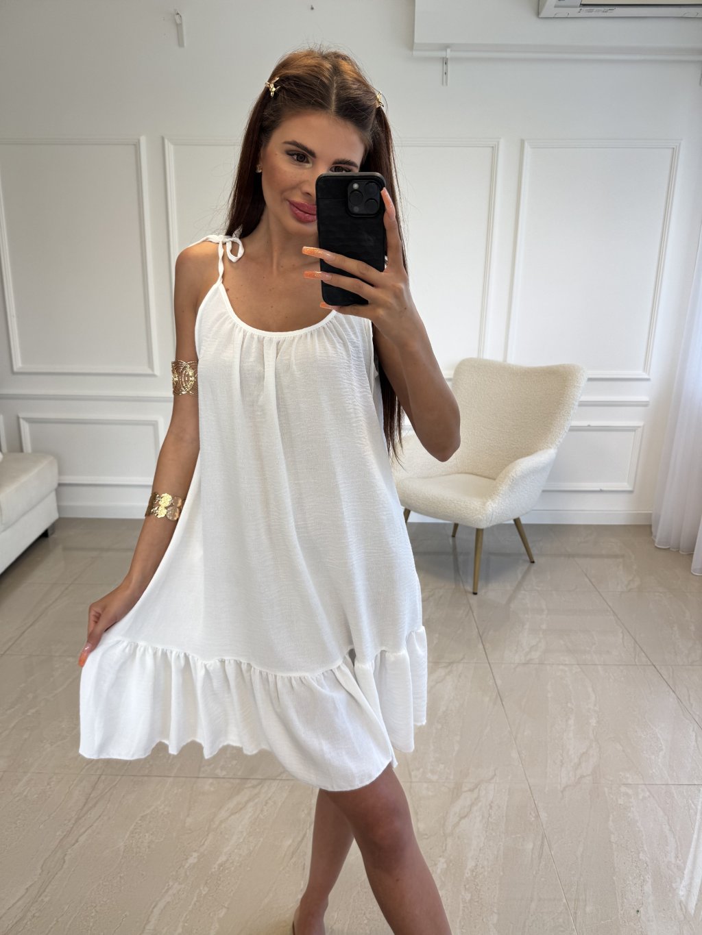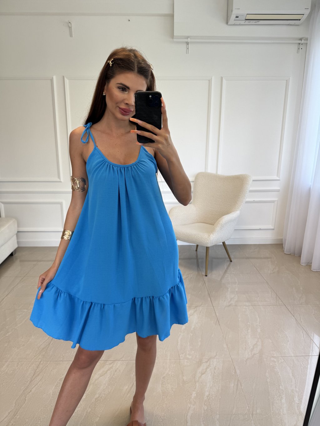 Šaty AVRILA z ľahkého vzdušného materiálu. Ideálne na leto a dovolenku. Ramienka sú tenké a regulovateľné s viazaním. Dĺžka nad kolená , takže sú ideálne na vyššie aj nižšie baby. Na spodu majú šaty volánik. Sadnú od XS po L. Vhodné na tehotenské bruško.
