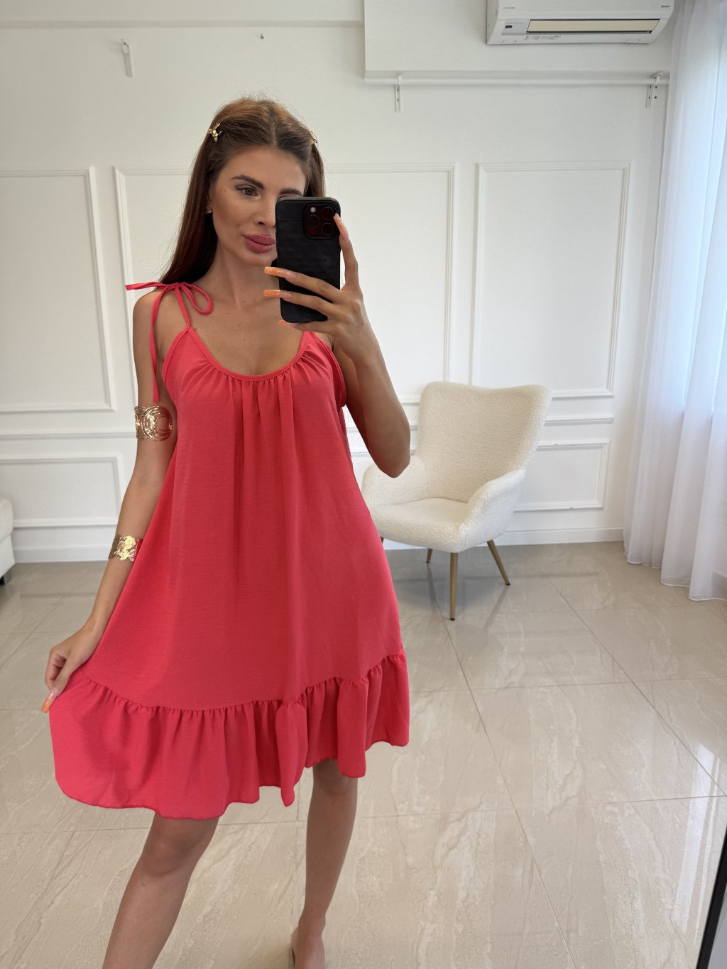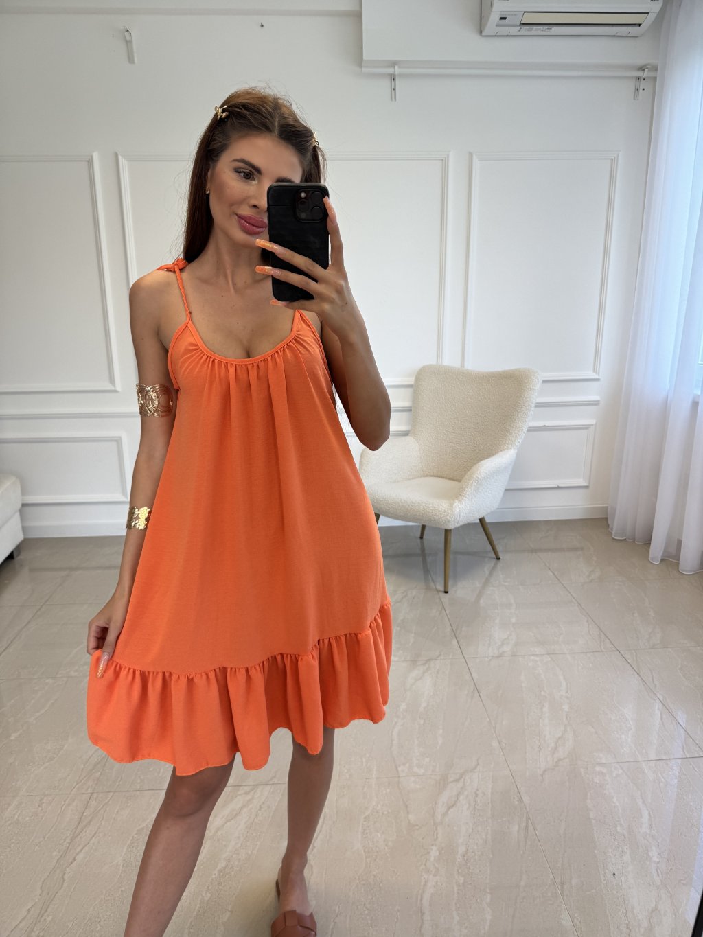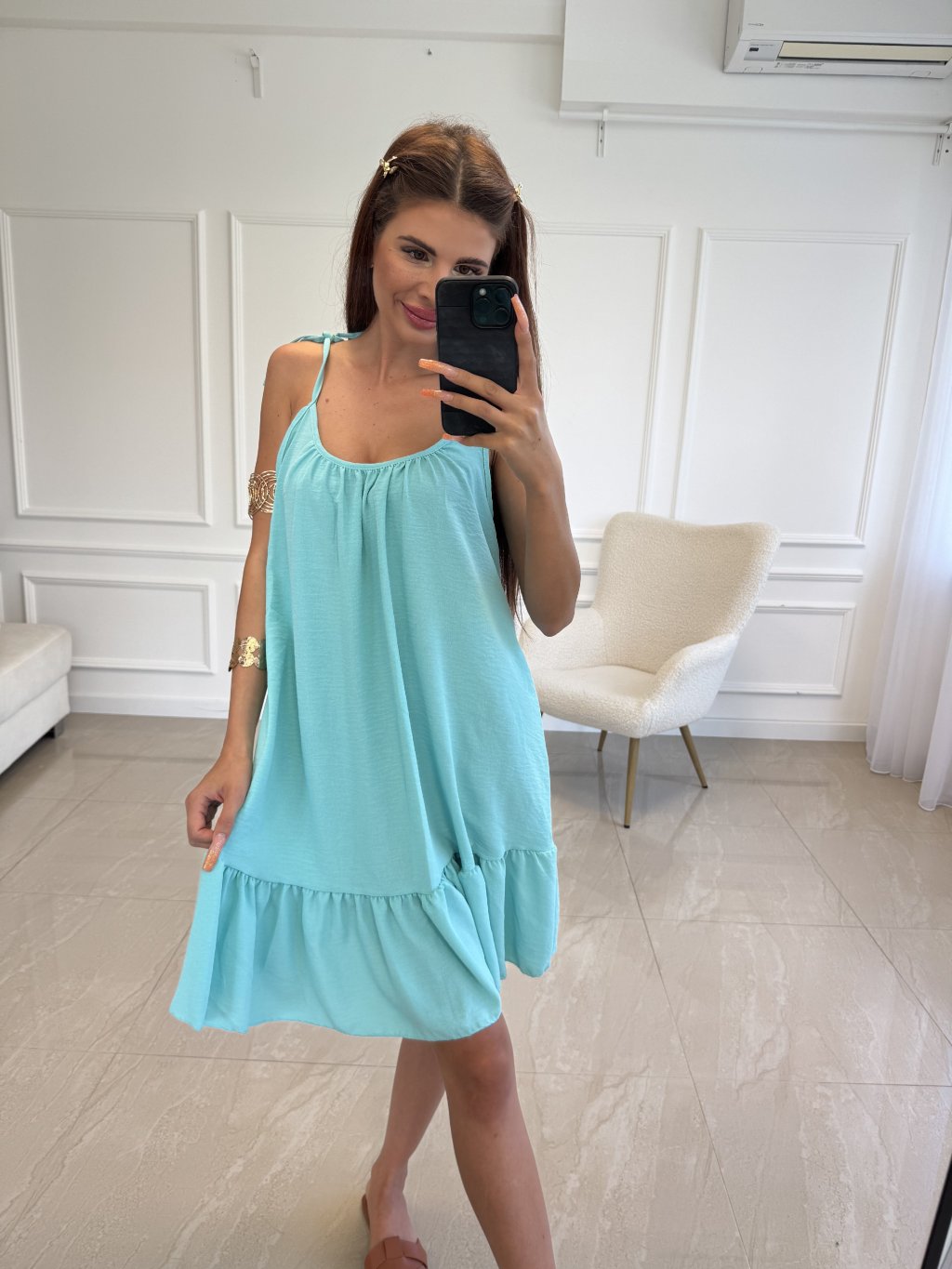 Šaty AVRILA z ľahkého vzdušného materiálu. Ideálne na leto a dovolenku. Ramienka sú tenké a regulovateľné s viazaním. Dĺžka nad kolená , takže sú ideálne na vyššie aj nižšie baby. Na spodu majú šaty volánik. Sadnú od XS po L. Vhodné na tehotenské bruško.