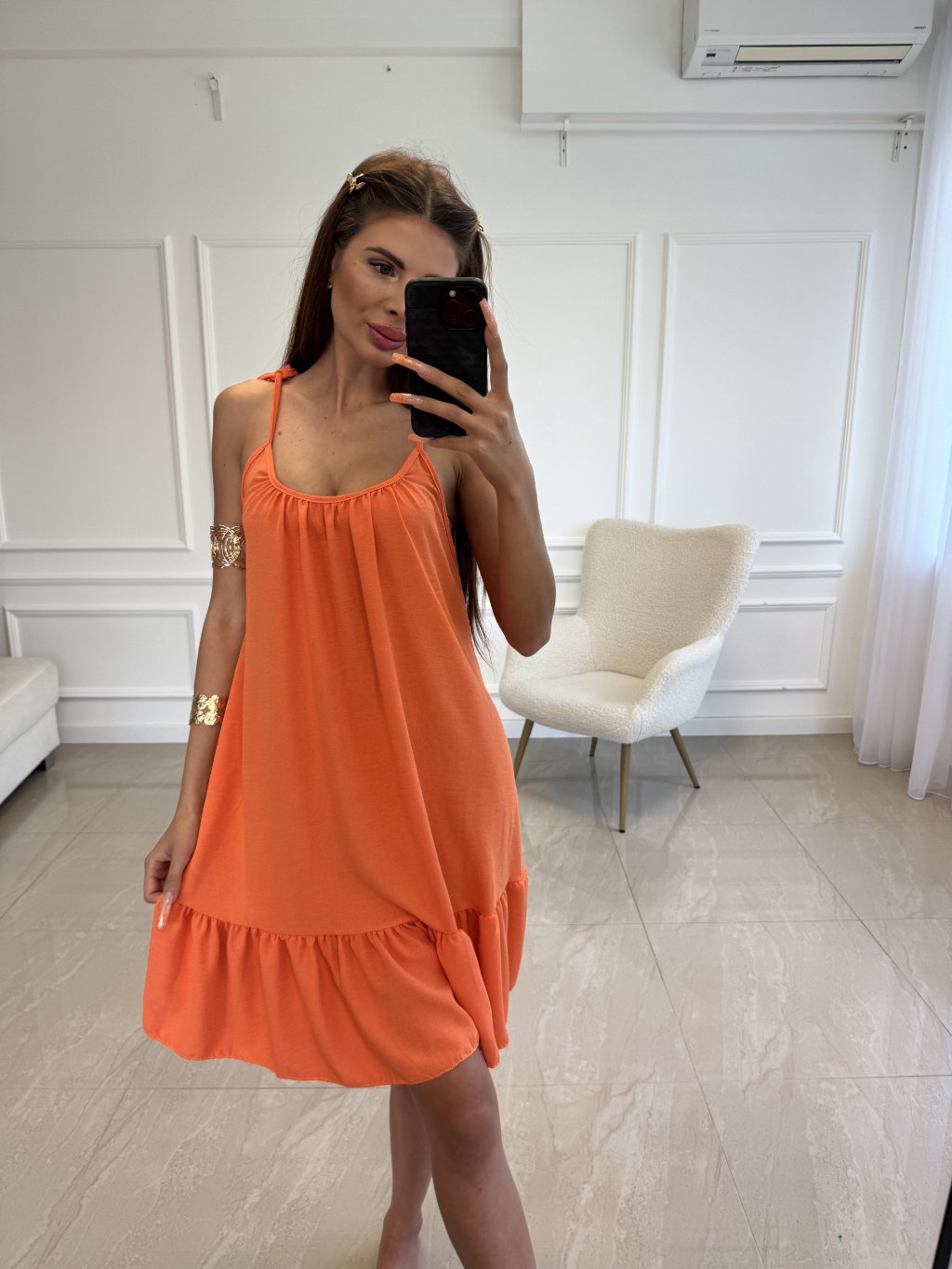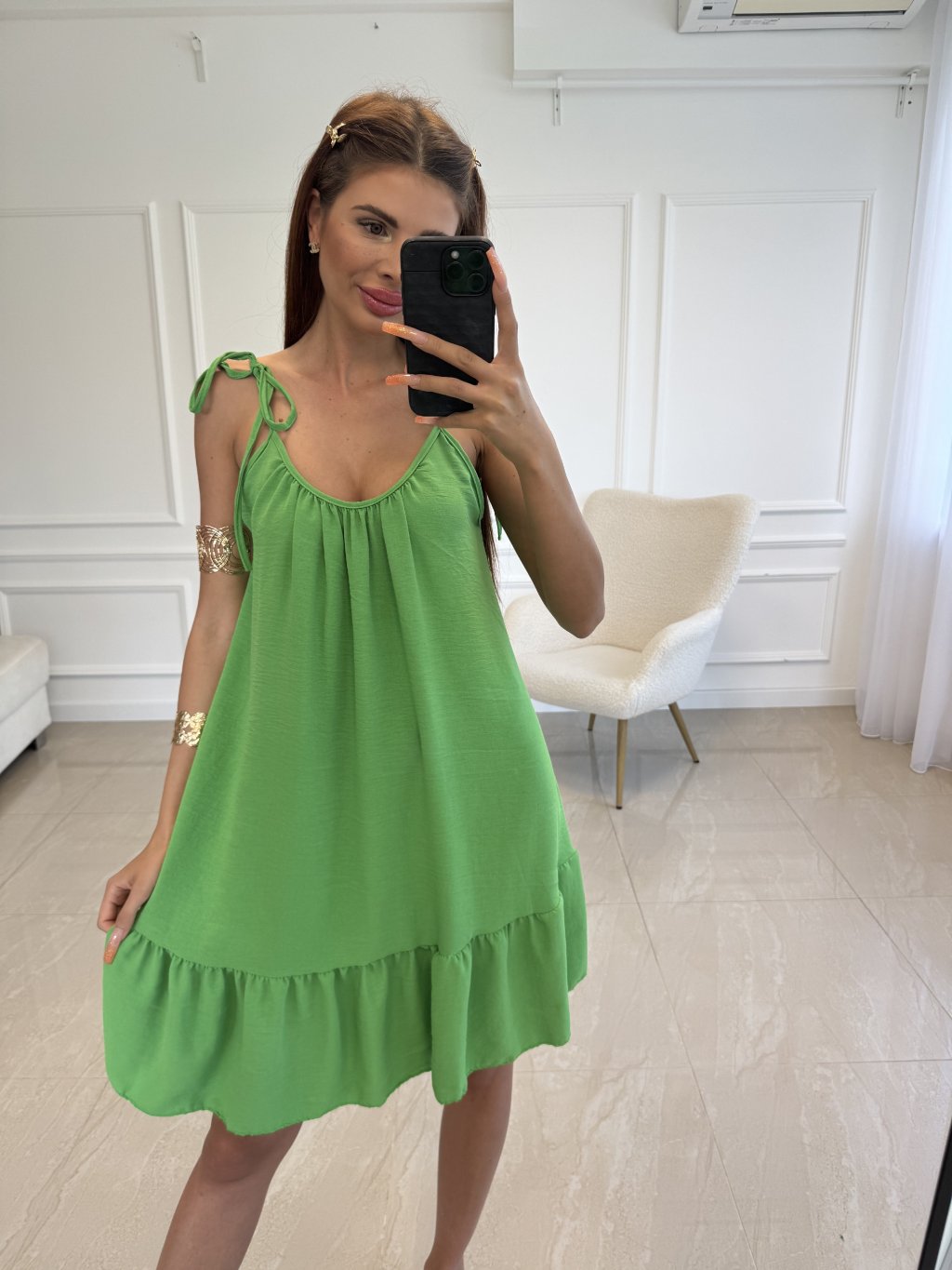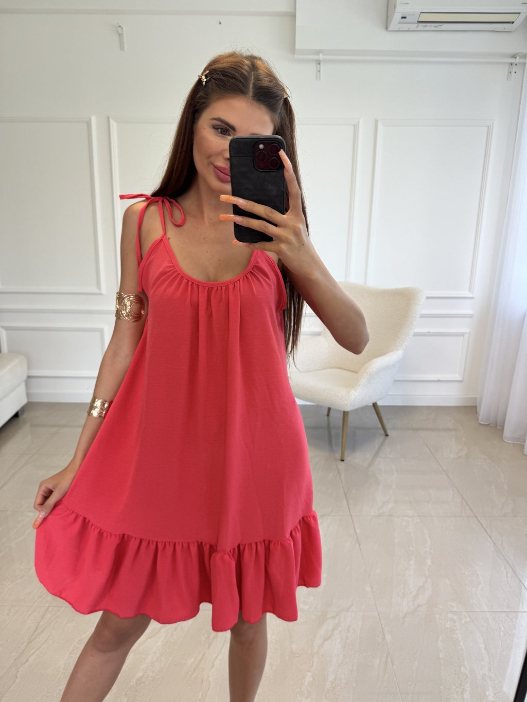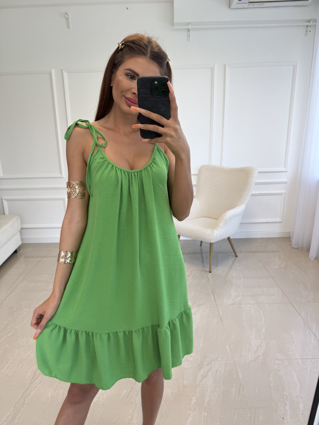 Šaty AVRILA z ľahkého vzdušného materiálu. Ideálne na leto a dovolenku. Ramienka sú tenké a regulovateľné s viazaním. Dĺžka nad kolená , takže sú ideálne na vyššie aj nižšie baby. Na spodu majú šaty volánik. Sadnú od XS po L. Vhodné na tehotenské bruško.