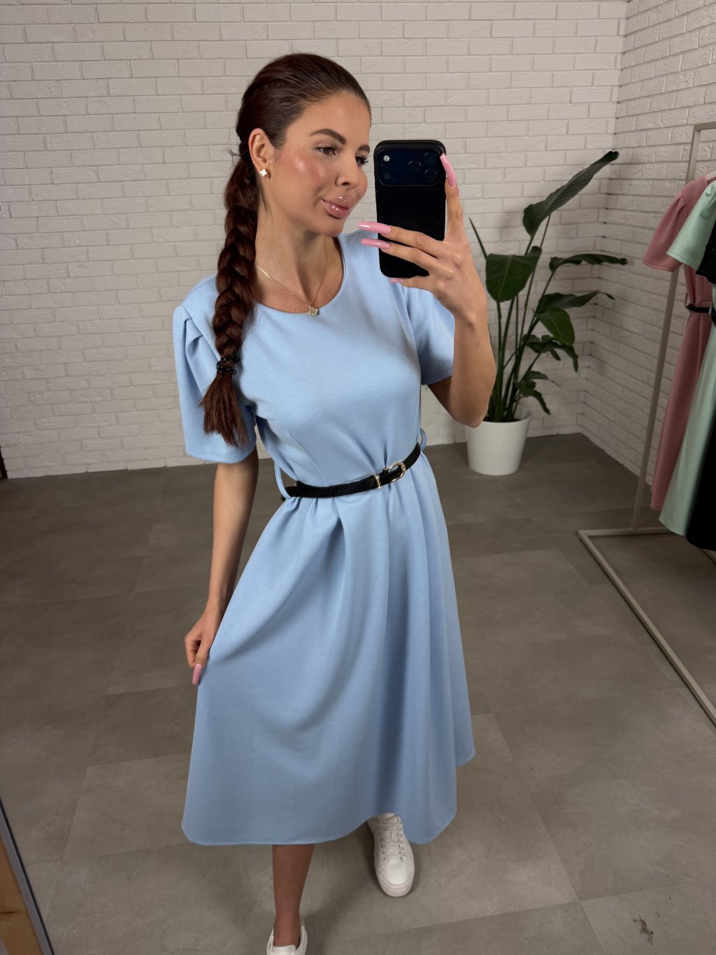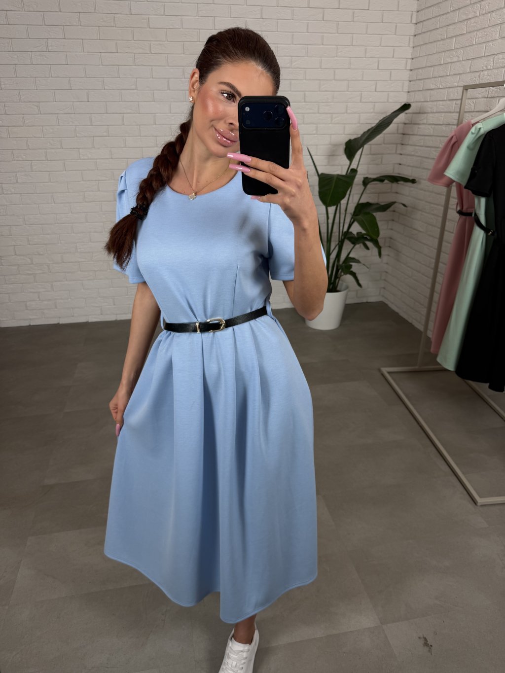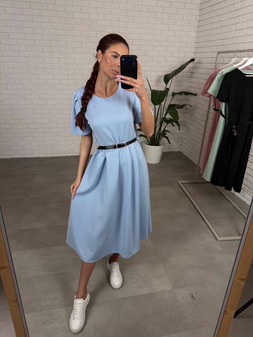 Šaty BERTA sú ušité z príjemného poloteplákového materiálu, ktorý je mäkký na dotyk a pohodlný na celodenné nosenie. Vďaka áčkovému strihu krásne lichotia postave typu hruška aj jablko, takže s prehľadom zakryjú väčšie boky aj bruško a vytvoria vyváženú ženskú siluetu bez zbytočného obopínania. Krátky voľný rukáv pôsobí ležérne a zároveň upravene a šaty sú ideálne aj pre vyššie kočky od 165 cm. Súčasťou je aj tenký opasok, ktorým si vieš jemne zvýrazniť pás a doladiť outfit presne podľa seba.