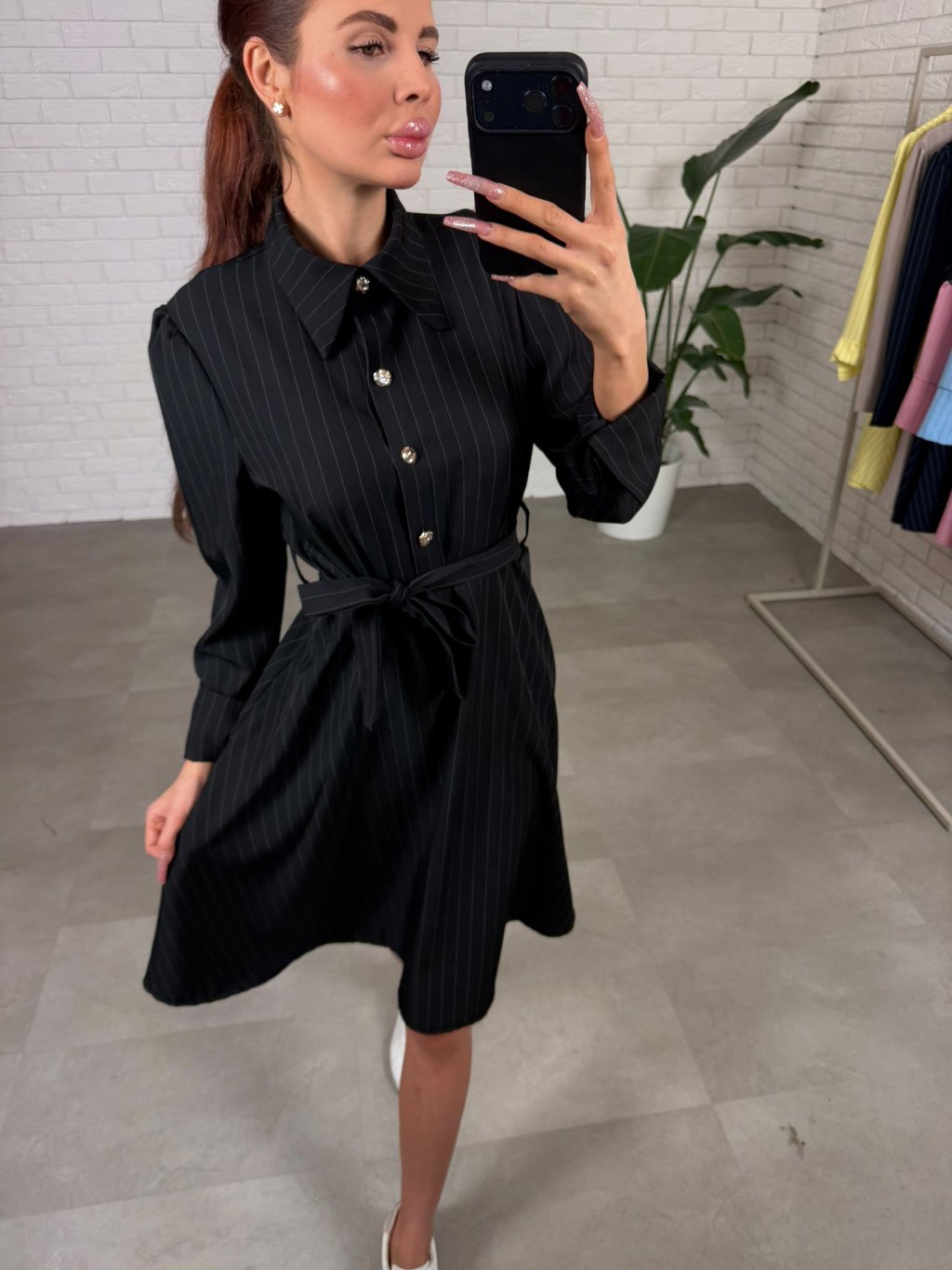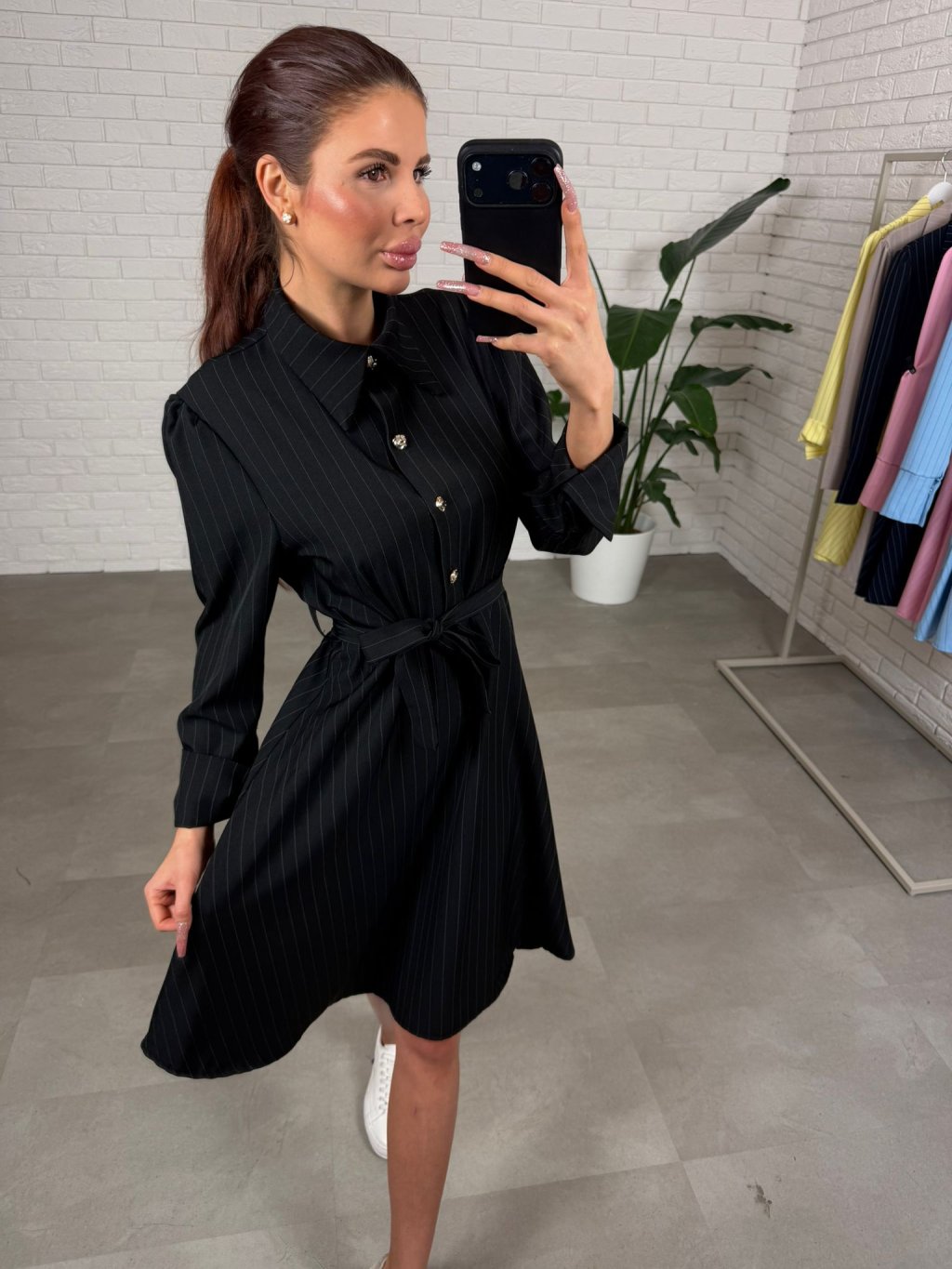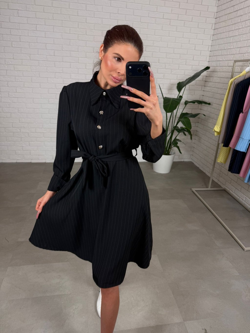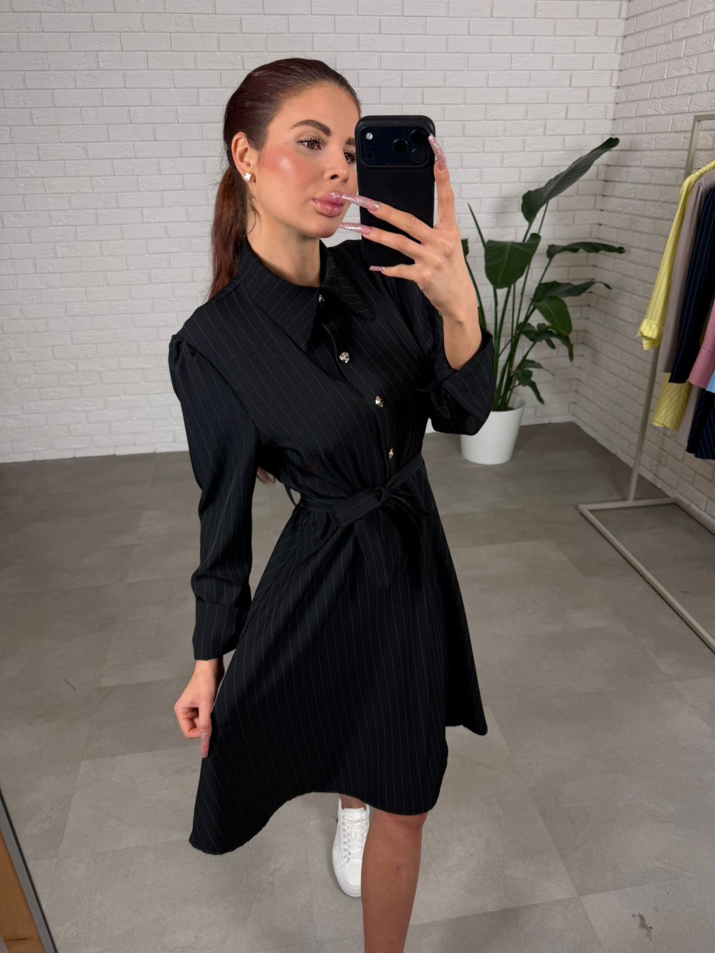Šaty BIBIEN sú ušité v nadčasovom košeľovom strihu, ktorý pôsobí elegantne a upravene, no zároveň je neskutočne pohodlný na bežné nosenie. Nekrčivý materiál si drží svoj tvar, takže aj po celom dni vyzeráš stále „ready“ bez zbytočného žehlenia. Áčková sukňa je krásne nadýchaná a bohatá na materiál, vďaka čomu sa do šiat zmestí každé bruško, boky aj stehná a silueta pôsobí ľahko a žensky. Opasok si uviažeš presne podľa seba, takže šaty sedia aj na štíhle postavy – pás pekne zvýrazní a vytvorí čistú líniu. Dĺžka jemne nad kolená je praktická aj ženská a šaty sú výškovo ideálne pre kočky až do 180 cm. Štyri ozdobné gombíky dodajú outfitu taliansky nádych elegancie a urobia z nich výrazný kúsok aj bez veľkých doplnkov. Skvelo ich vynosíš s teniskami, sandálkami aj lodičkami – podľa toho, či ideš do mesta, do práce alebo na udalosť. Veľkostne sedia od XS po L.