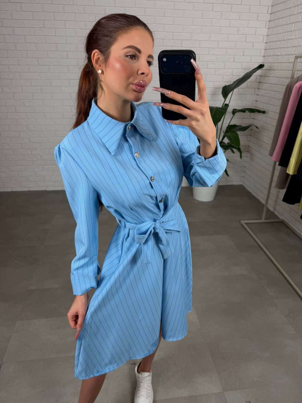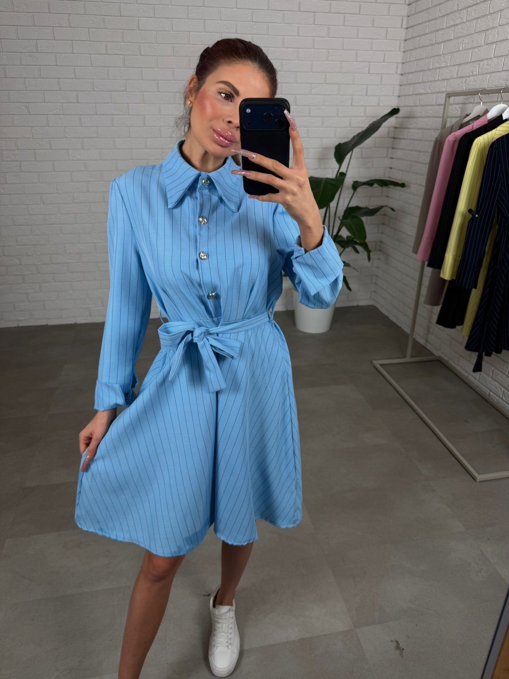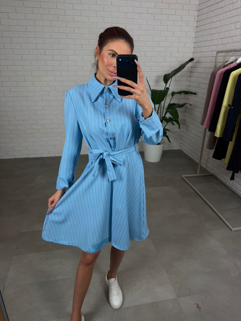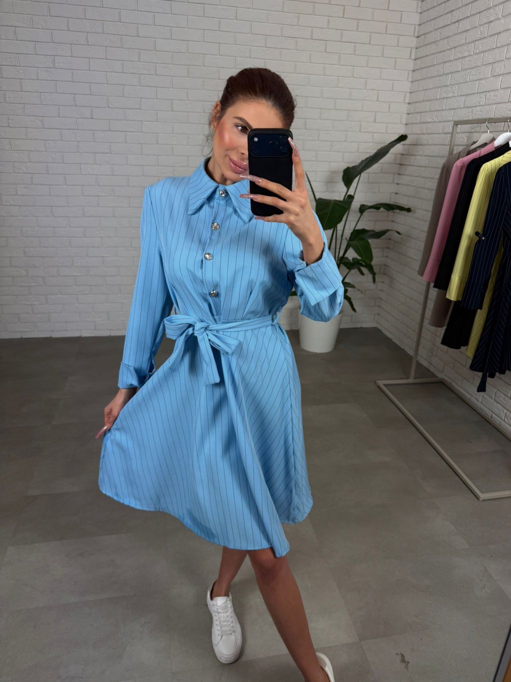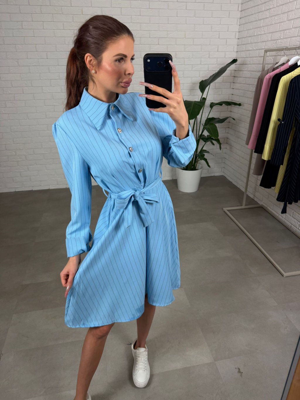Šaty BIBIEN sú ušité v nadčasovom košeľovom strihu, ktorý pôsobí elegantne a upravene, no zároveň je neskutočne pohodlný na bežné nosenie. Nekrčivý materiál si drží svoj tvar, takže aj po celom dni vyzeráš stále „ready“ bez zbytočného žehlenia. Áčková sukňa je krásne nadýchaná a bohatá na materiál, vďaka čomu sa do šiat zmestí každé bruško, boky aj stehná a silueta pôsobí ľahko a žensky. Opasok si uviažeš presne podľa seba, takže šaty sedia aj na štíhle postavy – pás pekne zvýrazní a vytvorí čistú líniu. Dĺžka jemne nad kolená je praktická aj ženská a šaty sú výškovo ideálne pre kočky až do 180 cm. Štyri ozdobné gombíky dodajú outfitu taliansky nádych elegancie a urobia z nich výrazný kúsok aj bez veľkých doplnkov. Skvelo ich vynosíš s teniskami, sandálkami aj lodičkami – podľa toho, či ideš do mesta, do práce alebo na udalosť. Veľkostne sedia od XS po L.