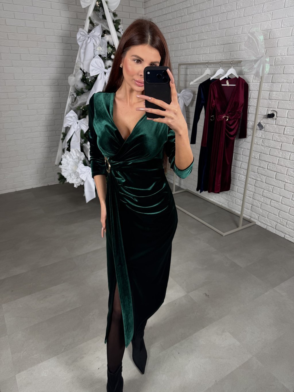 Šaty DAVIDO sú z luxusného zamatového materiálu a sú vhodné pre kočky s vyššou postavou. Na dekolte majú výstuž, vďaka čomu opticky zväčšia váš hrudník a dodajú mu takzvaný push-up efekt. Šaty pod prsiami zdobí aj zlatá spona s ozdobnou stuhou. Šaty sú v midi dĺžke a na jednej nohe majú elegantný rozparok. Vďaka riaseniu v oblasti bruška vytvoria skvelú postavu. Sadnú od XS po L.