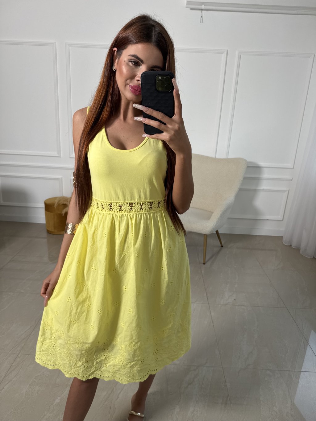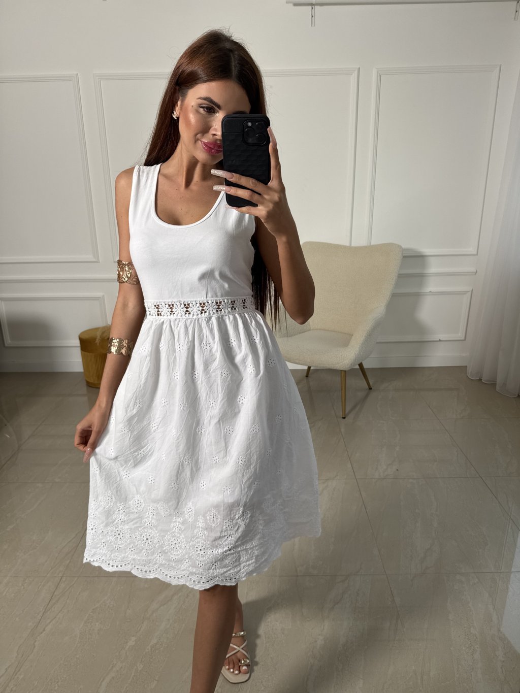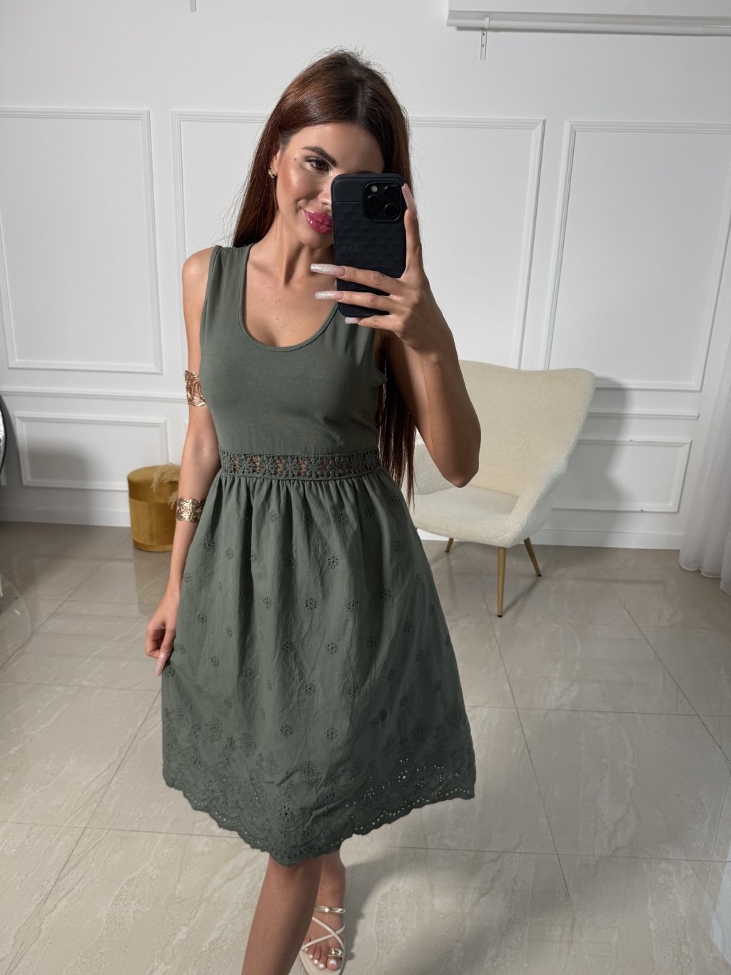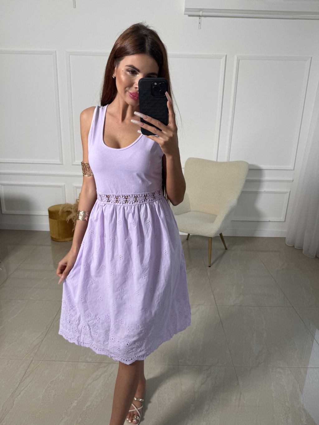 Šaty DENI s dvojdielnym efektom. Suknička má podšívku takže nepresvitá. Suknička je áčkového strihu a sú na nej detaily s kvietkami. Vrchná časť je na ramienka a pod prsiami majú šaty čipkovaný pás. Sú veľmi elastické a vzdušné. Dĺžka je nad kolená, takže sú vhodné na vyššie aj nižšie baby. Sadnú od XS po L.