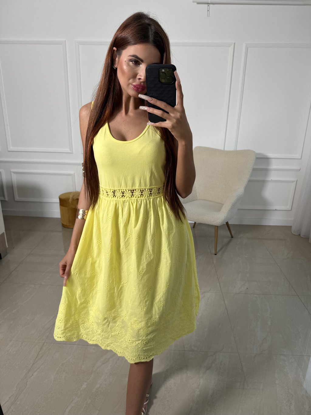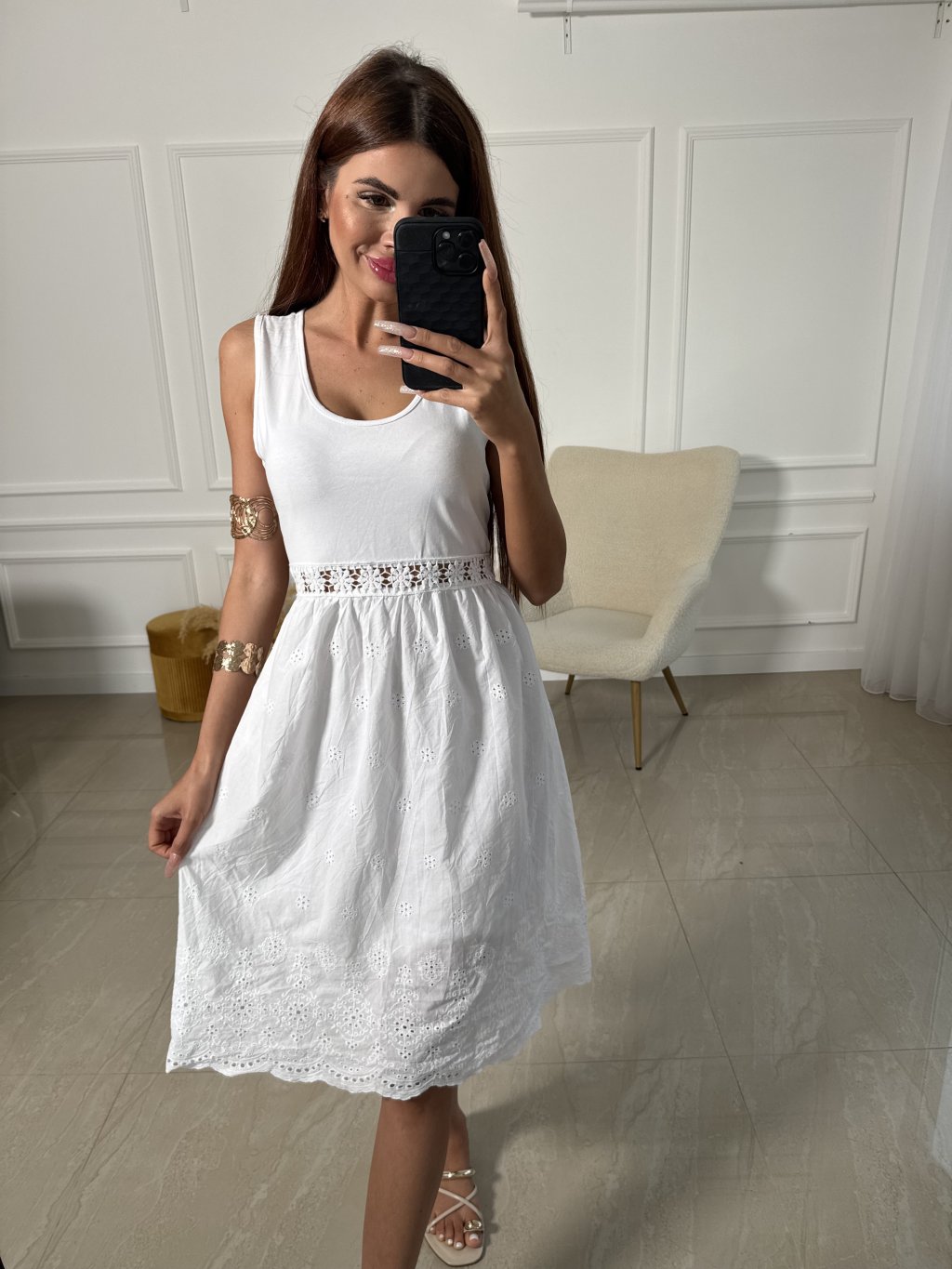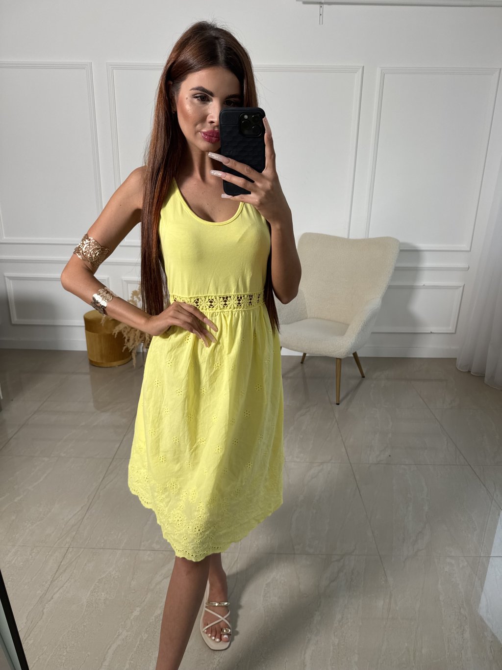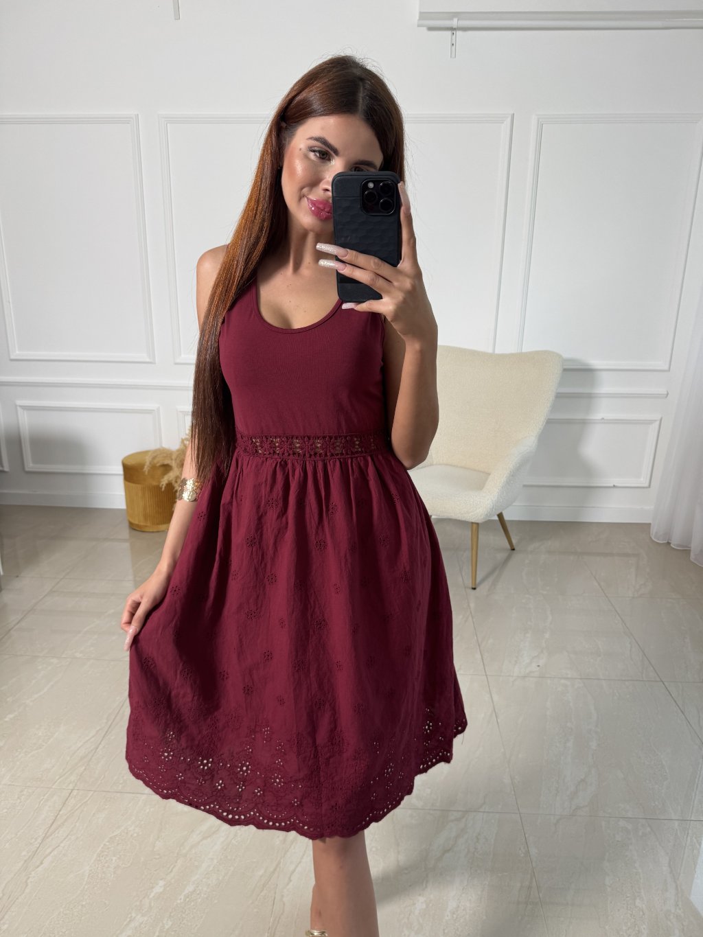 Šaty DENI s dvojdielnym efektom. Suknička má podšívku takže nepresvitá. Suknička je áčkového strihu a sú na nej detaily s kvietkami. Vrchná časť je na ramienka a pod prsiami majú šaty čipkovaný pás. Sú veľmi elastické a vzdušné. Dĺžka je nad kolená, takže sú vhodné na vyššie aj nižšie baby. Sadnú od XS po L.
