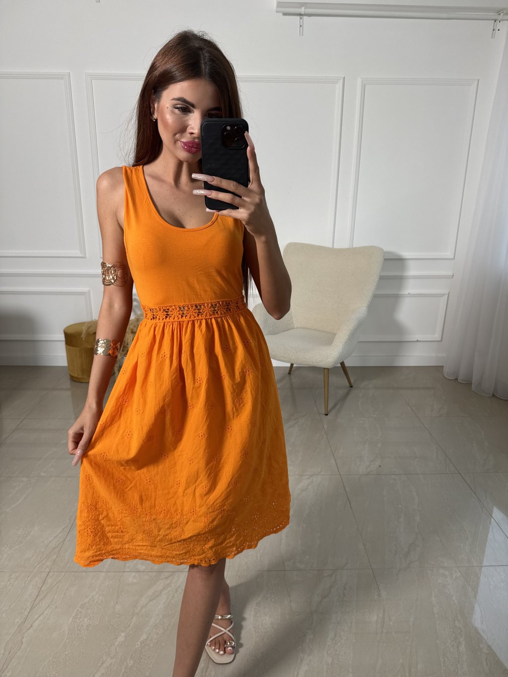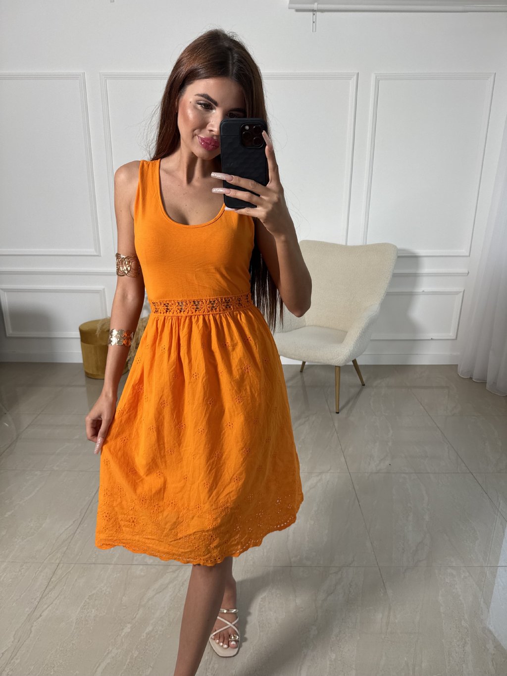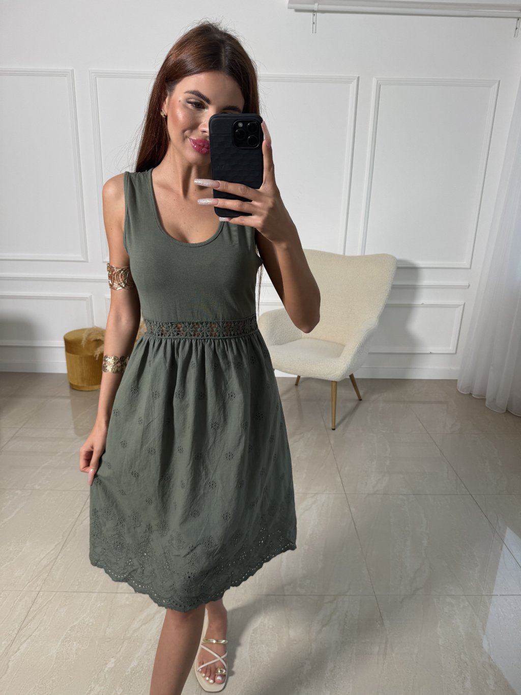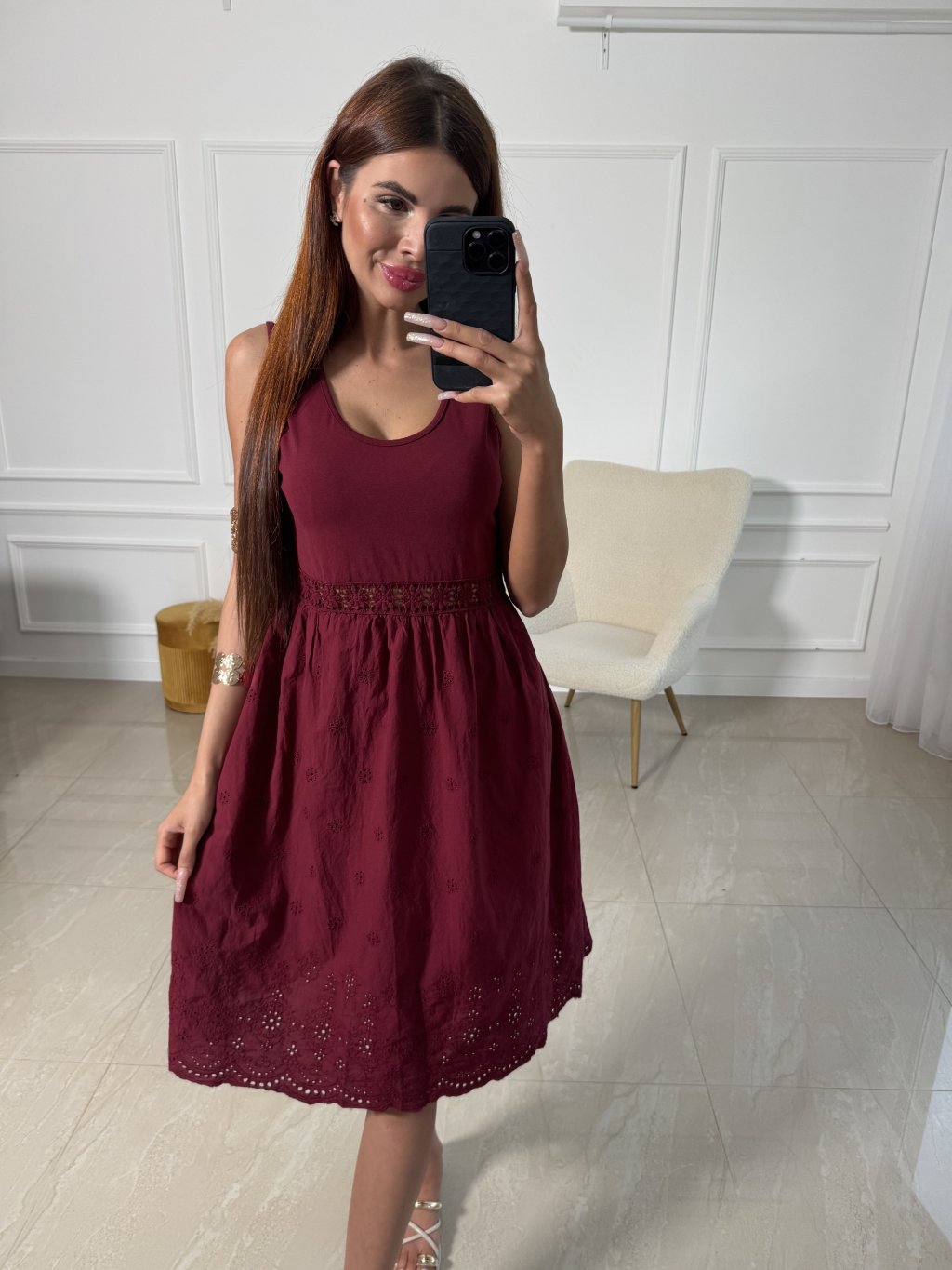 Šaty DENI s dvojdielnym efektom. Suknička má podšívku takže nepresvitá. Suknička je áčkového strihu a sú na nej detaily s kvietkami. Vrchná časť je na ramienka a pod prsiami majú šaty čipkovaný pás. Sú veľmi elastické a vzdušné. Dĺžka je nad kolená, takže sú vhodné na vyššie aj nižšie baby. Sadnú od XS po L.